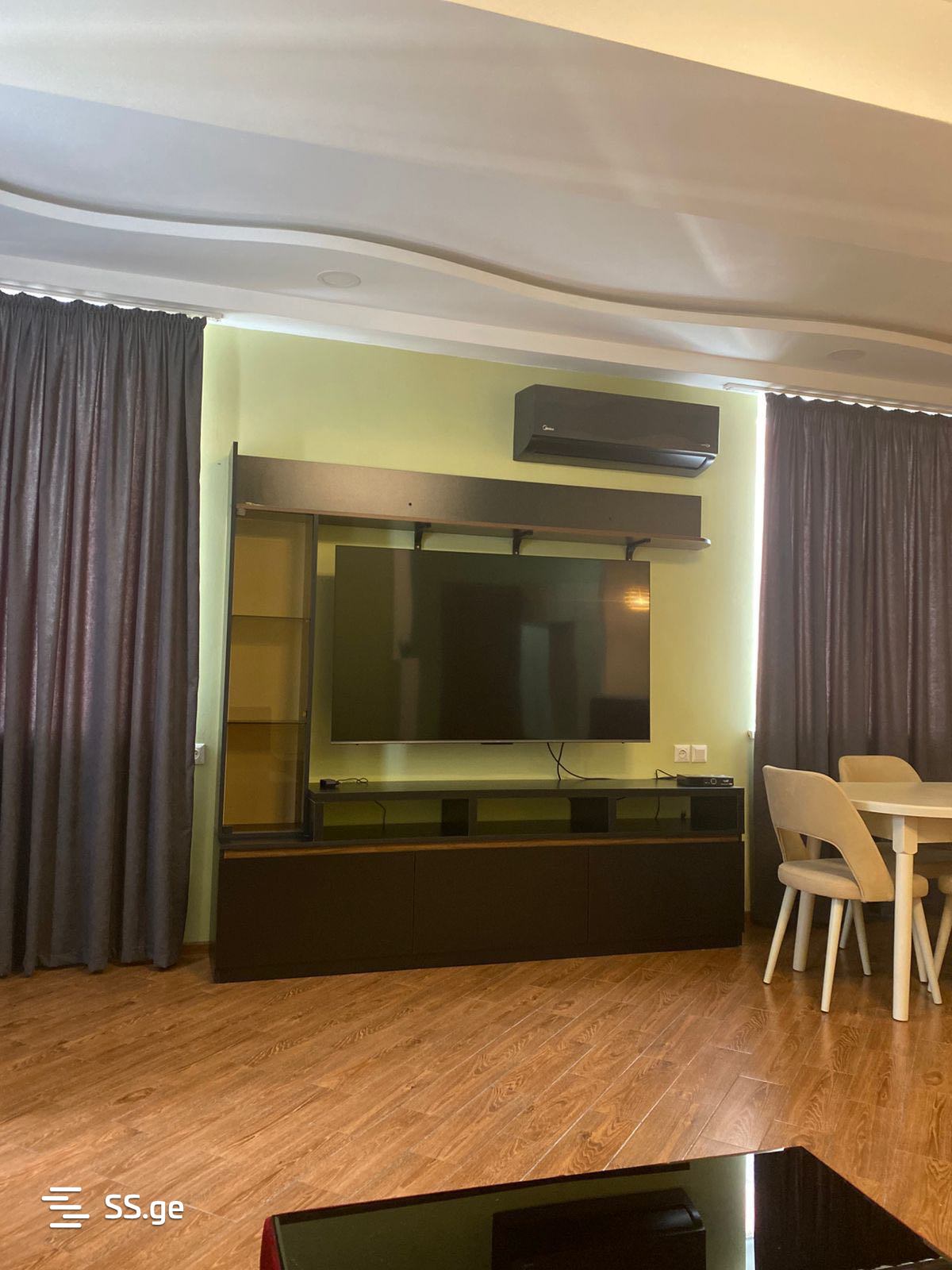 For rent in Bagebi on the Tsqneti highway, a renovated uninhabited two-room apartment of 80 sq.m. with furniture. Equipped with appliances. Central heating. Price 700 dollars.