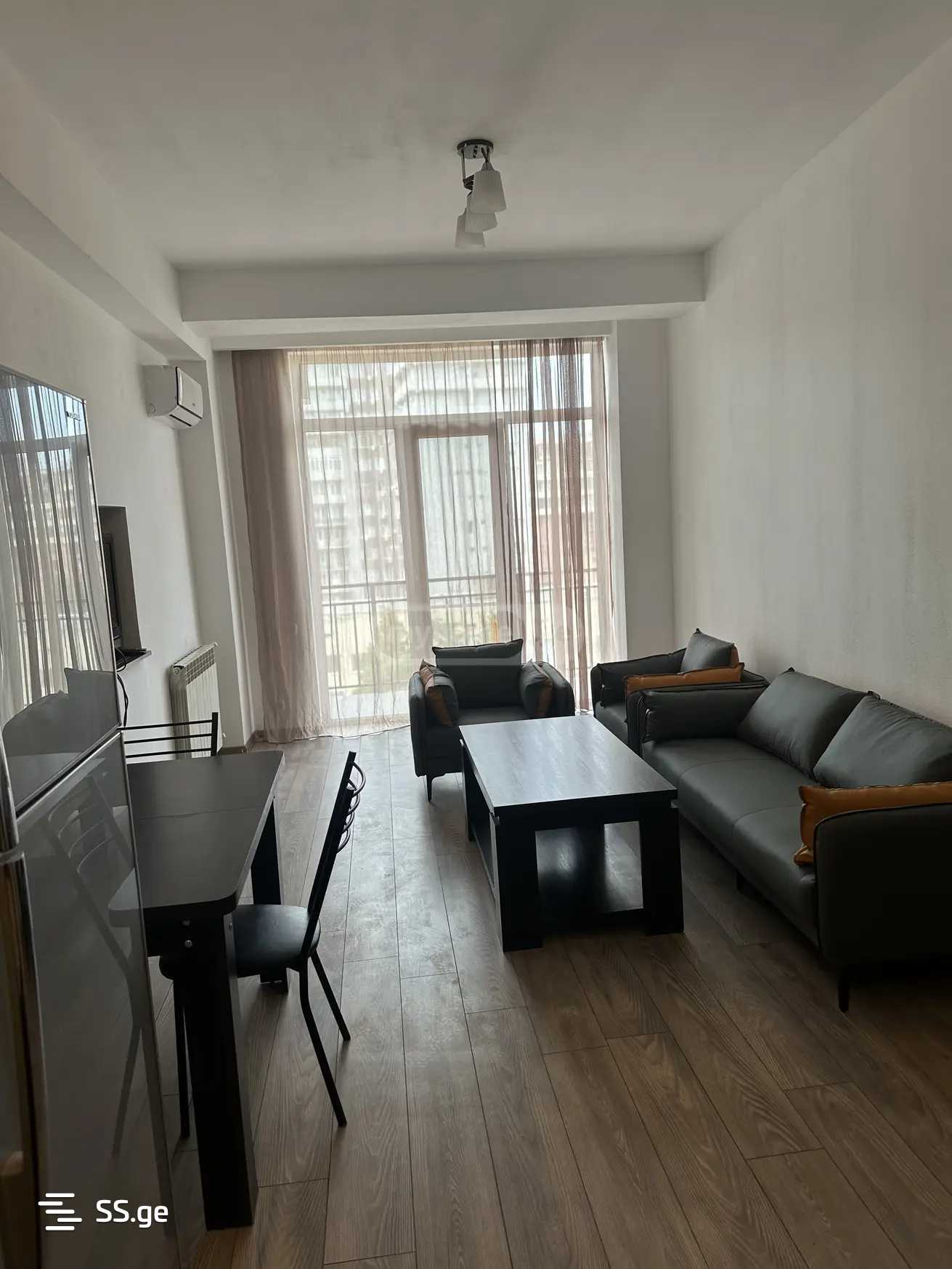 For rent in Saburtalo, on the parallel Tsaghareli Street of Mikheil Meskhi, a renovated 2-room apartment in a new building, furnished and equipped with appliances. Payment for two months in advance.