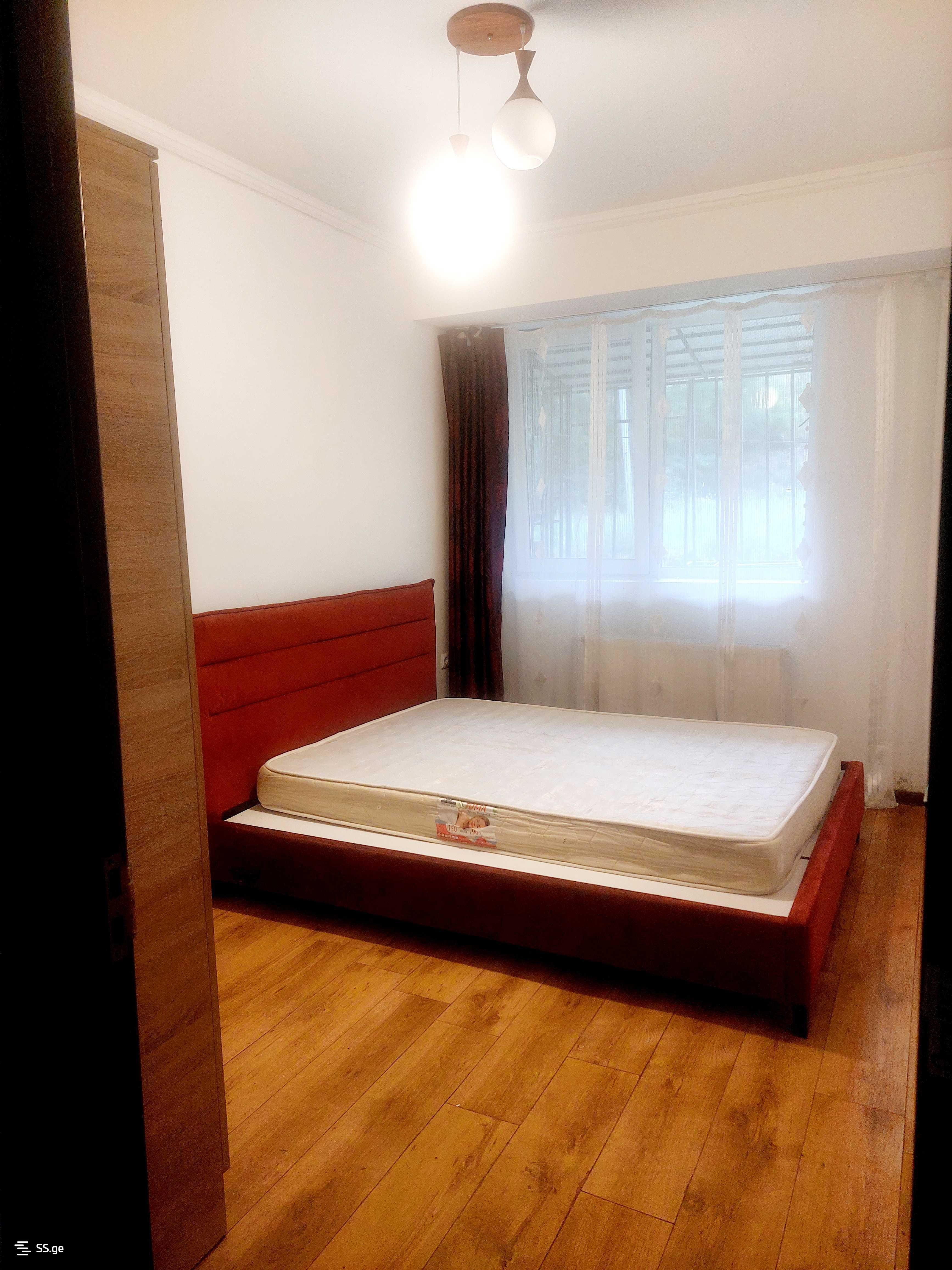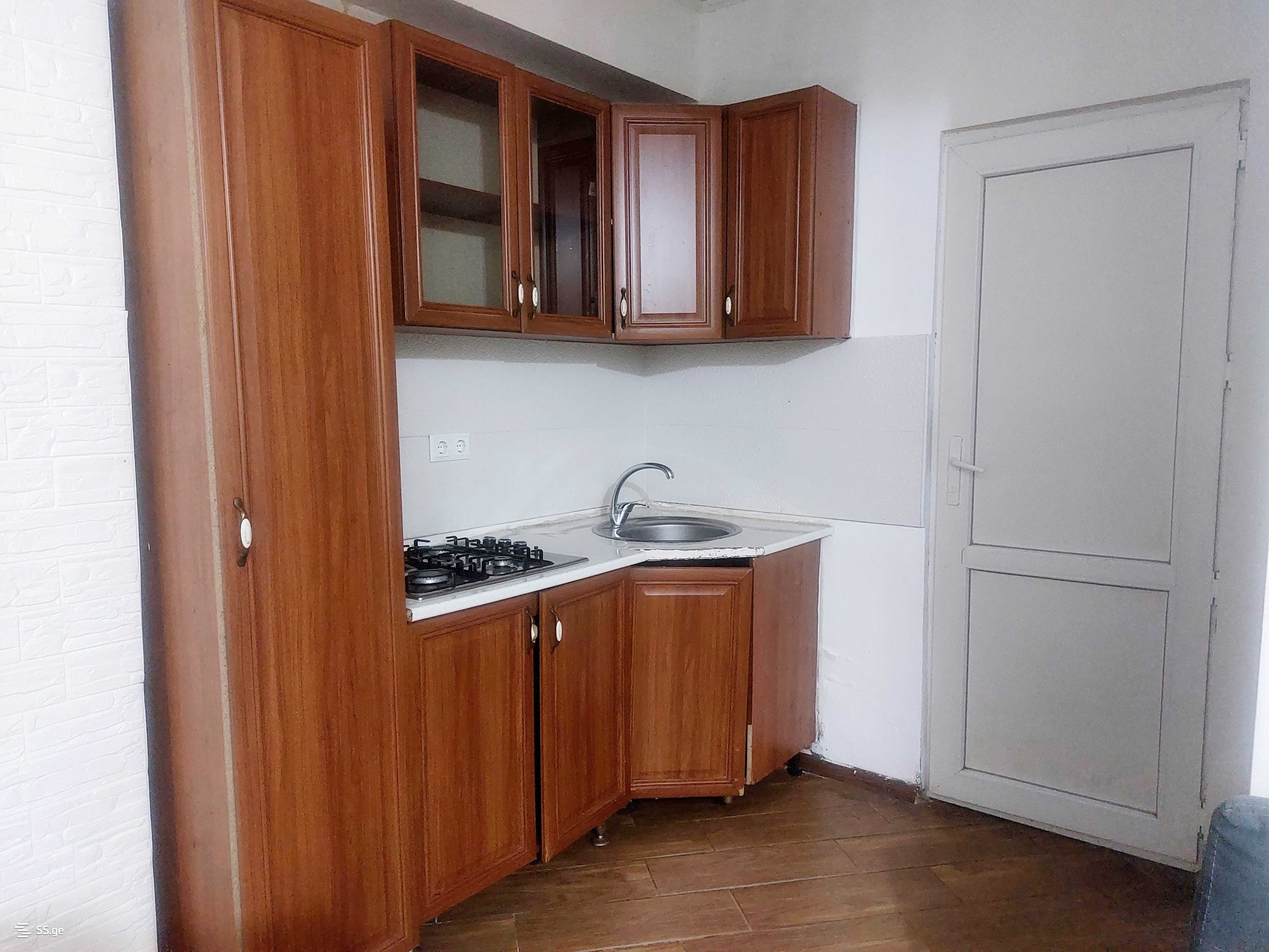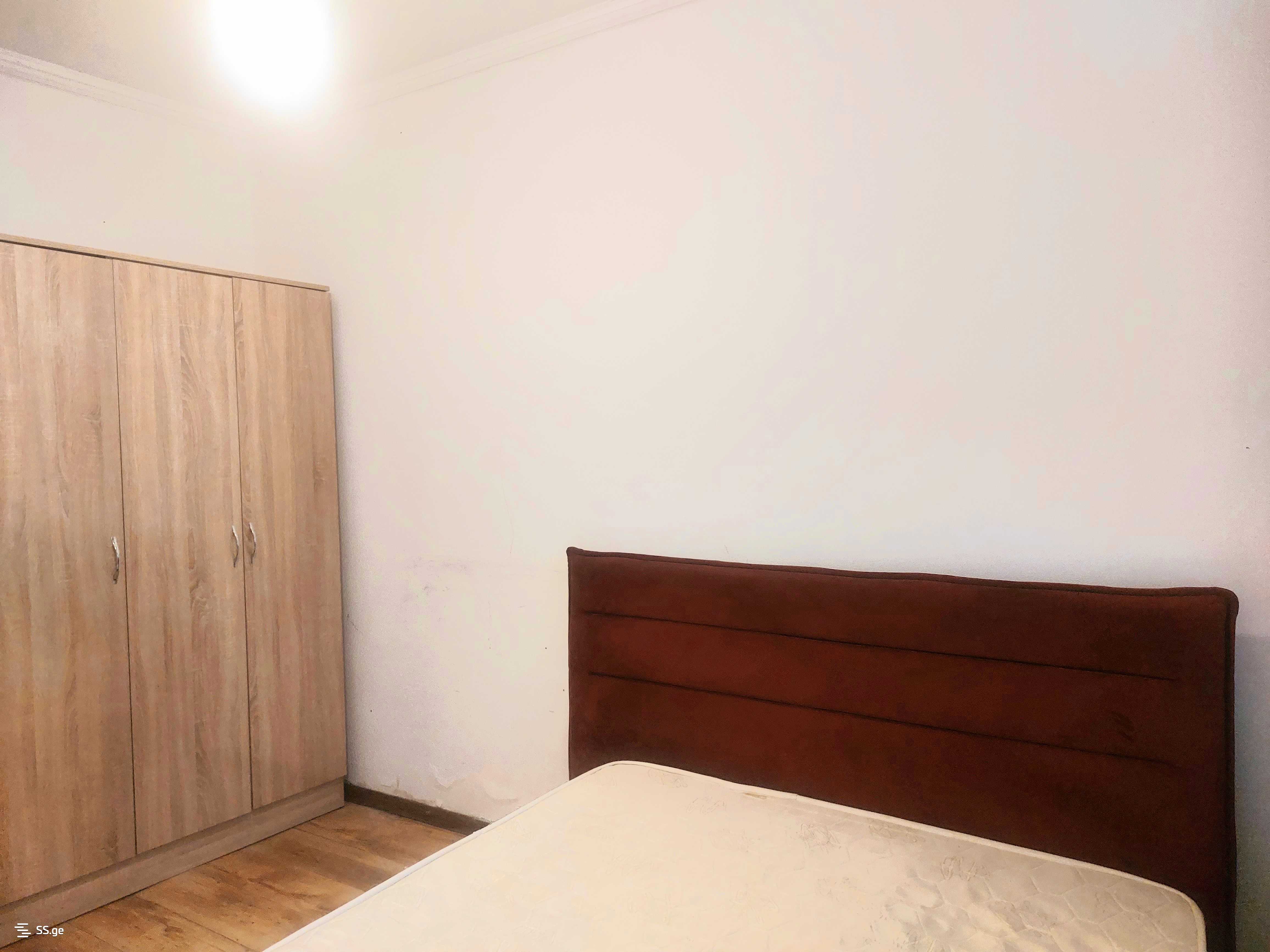 For rent: a 2-room apartment on the 1st floor of a newly built 5-story building. With central heating, necessary furniture, and appliances. It has a balcony with railings.