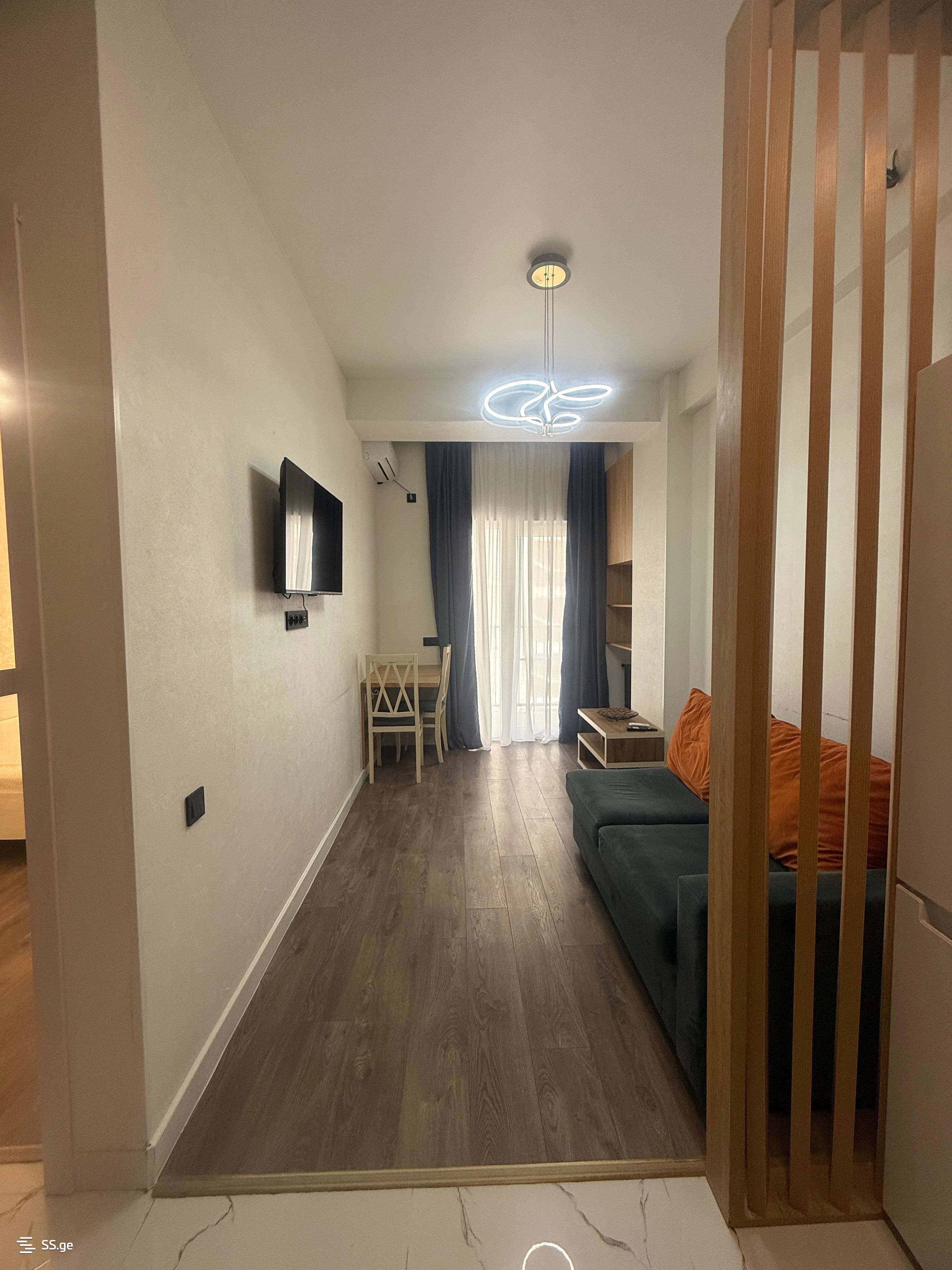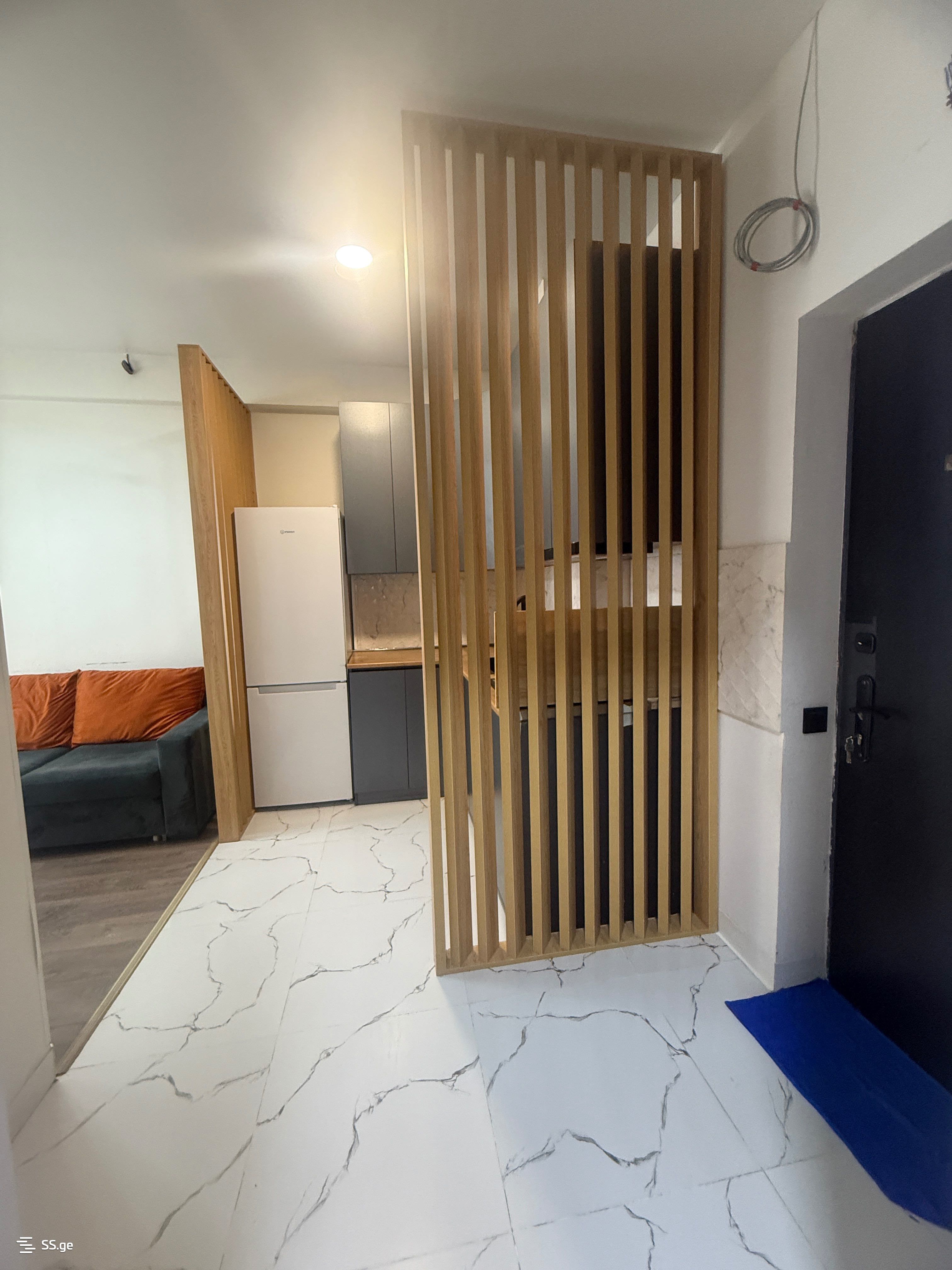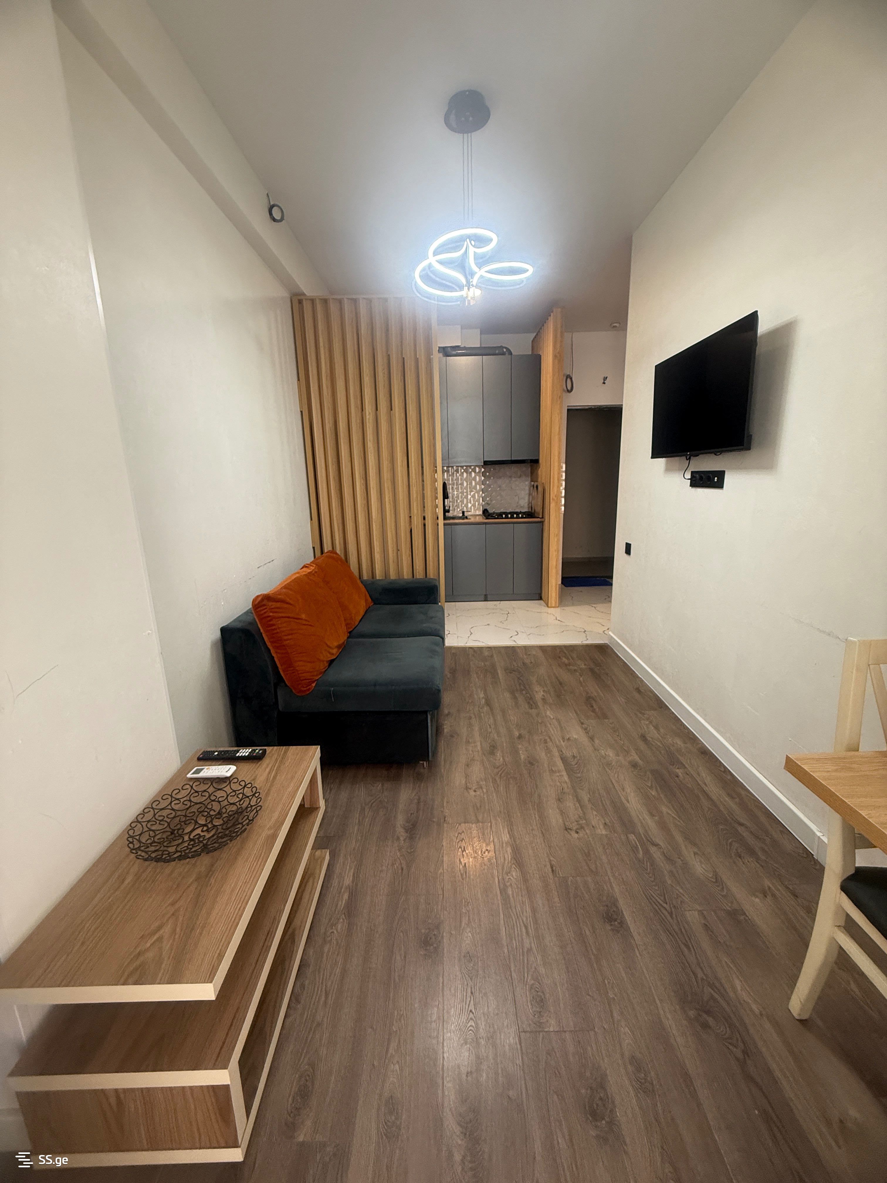 For rent: a 2-room apartment, renovated to European standards, with furniture and all kinds of appliances. There is a cozy atmosphere. The yard is equipped with outdoor parking and playgrounds. It is close to both the Metro station Nadzaladevi and the Metro station Gociridze.