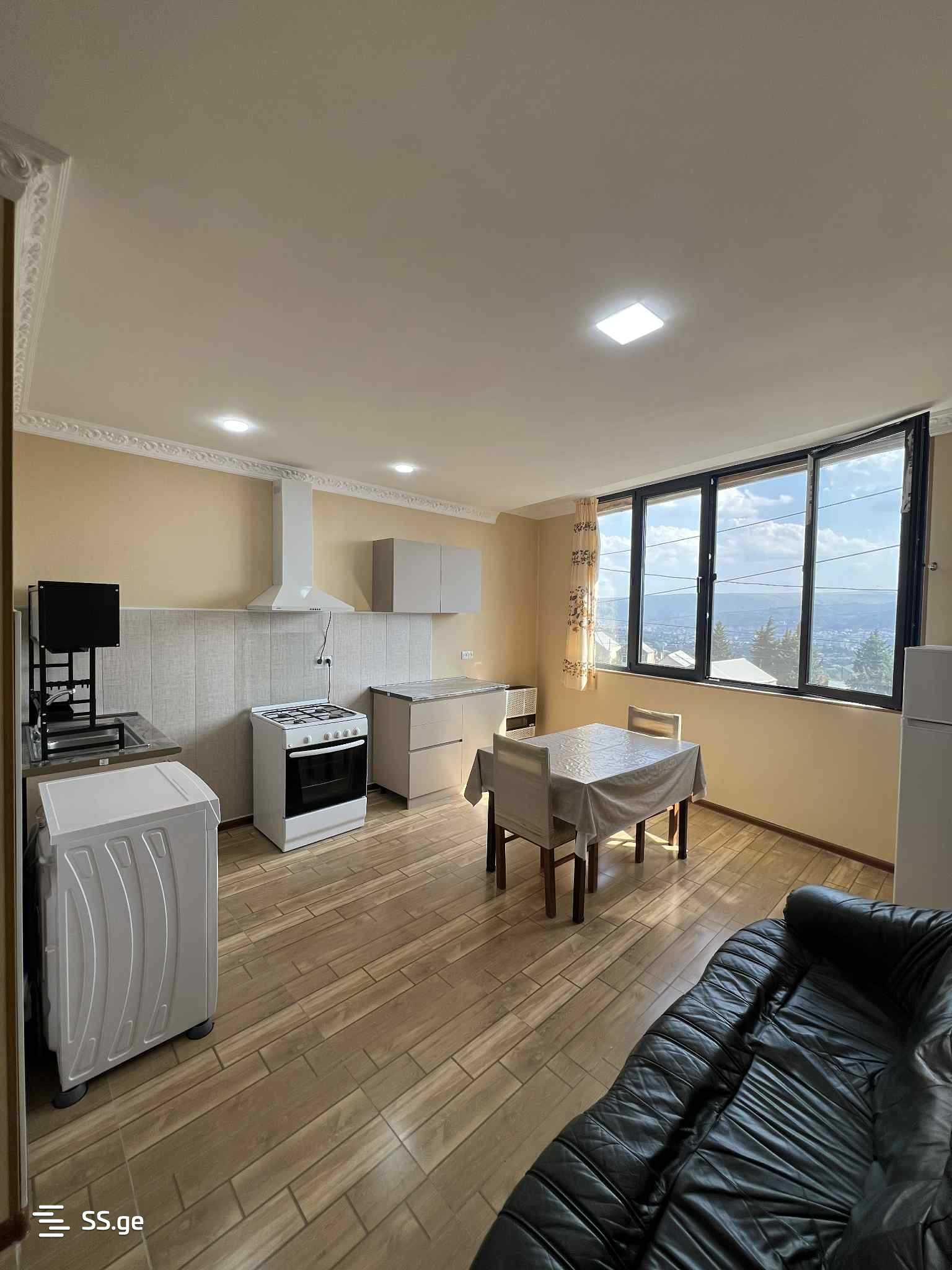 For rent: a newly built, freshly renovated, and never-before-lived-in private house-style apartment with a beautiful view, located in a quiet and cozy neighborhood. The apartment is equipped with all necessary furniture and appliances. It includes a storage room, bathroom, bedroom, a spacious living room, and a large kitchen.