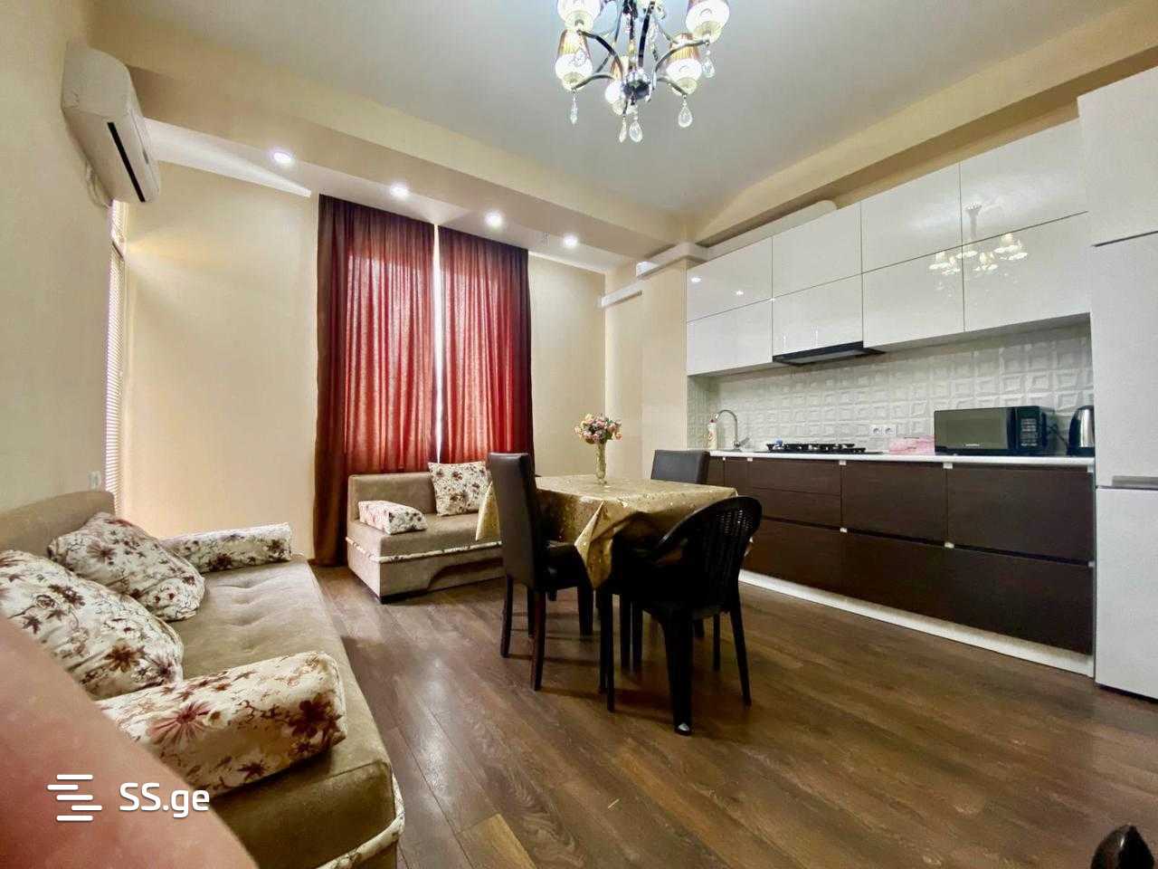 For rent: a 3-room apartment in Didgori, on Mirian Mepe Street, newly built, newly renovated, 60 sq.m, on the 6th (12th) floor, with 2 bedrooms, furnished and equipped with appliances, with air conditioning, with a balcony ID 102887.