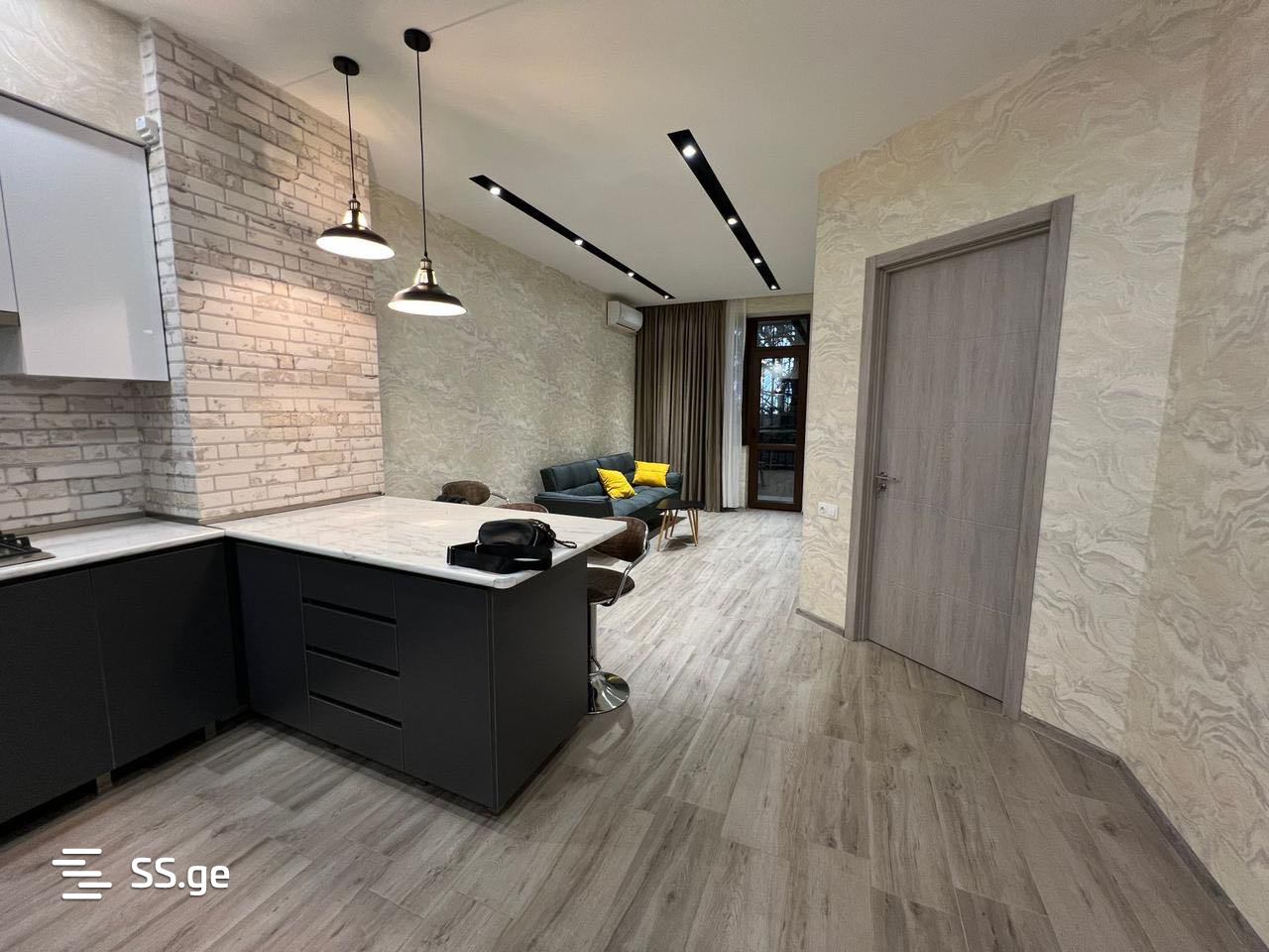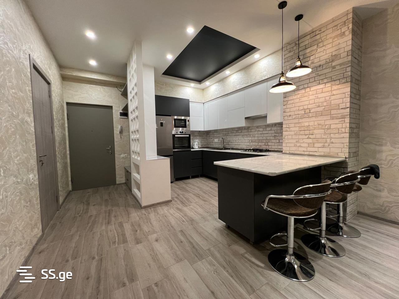 For rent in Saburtalo in a new building on Nutsubidze Street near the police, a renovated apartment with central heating and air conditioning. Price with appliances and furniture is $550.