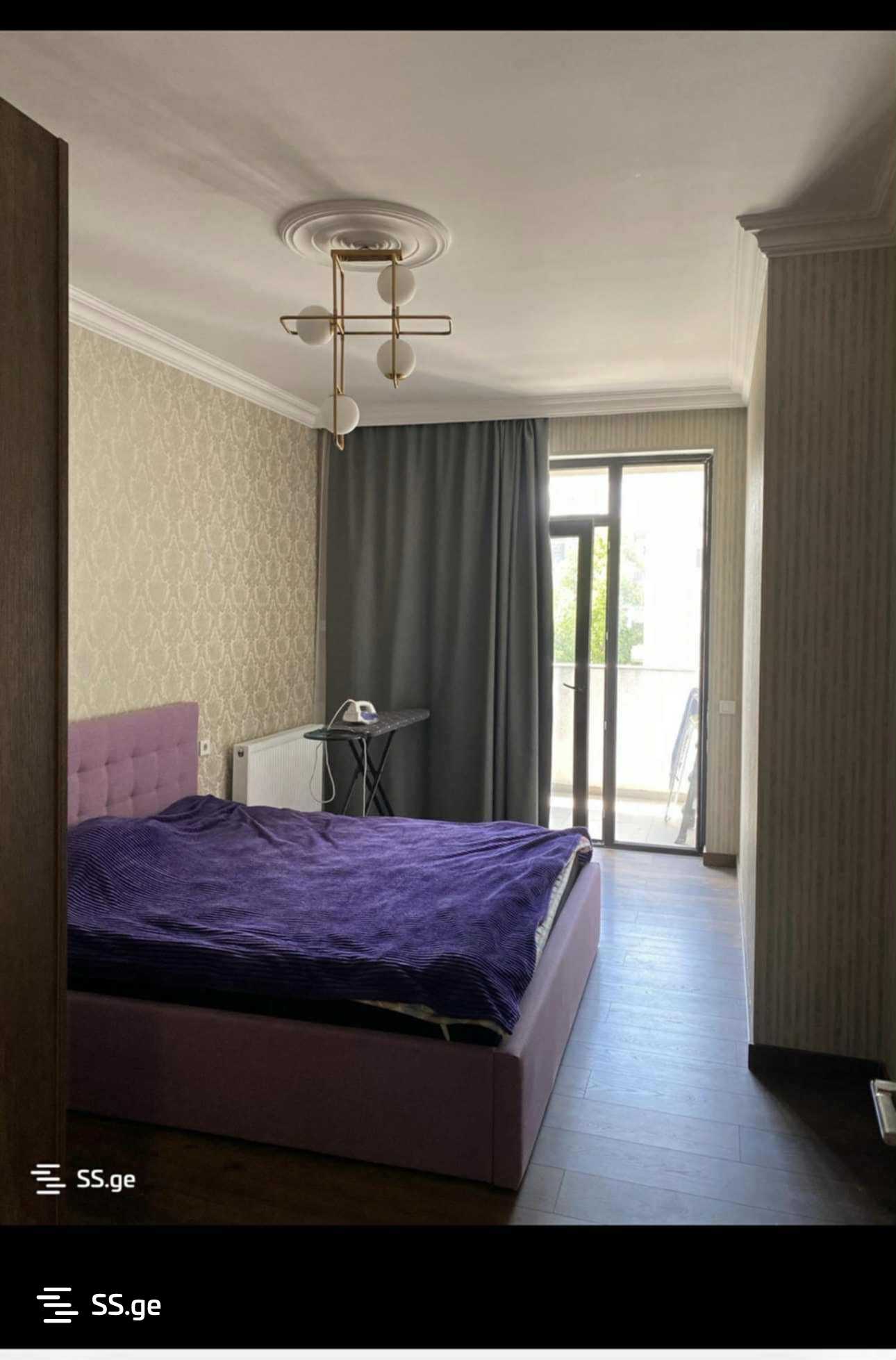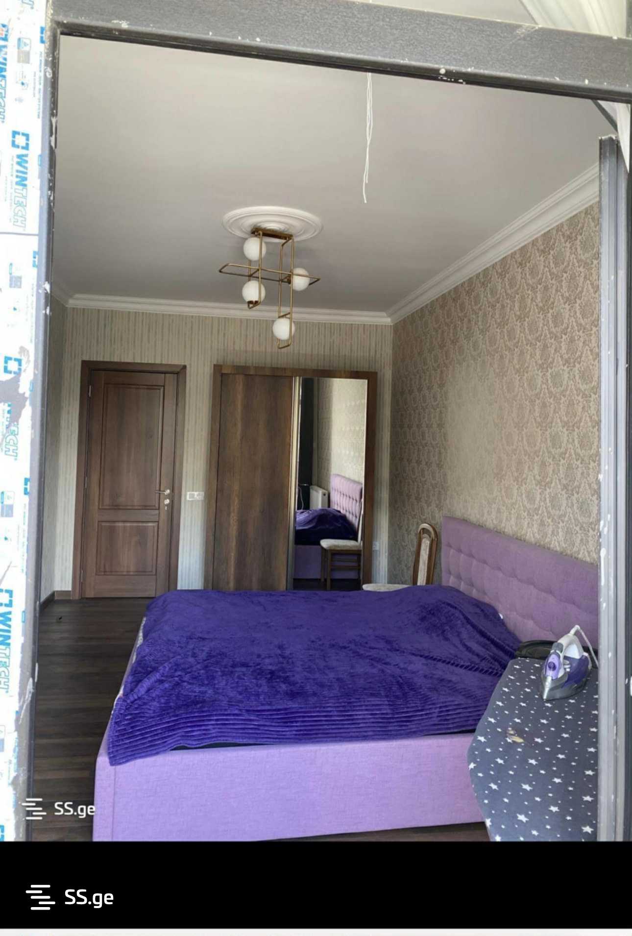 For rent- near Nadzaladevi metro station: a newly built three-room apartment with two bedrooms. The apartment is fully equipped with all appliances and furniture. It includes a parking space. $600.