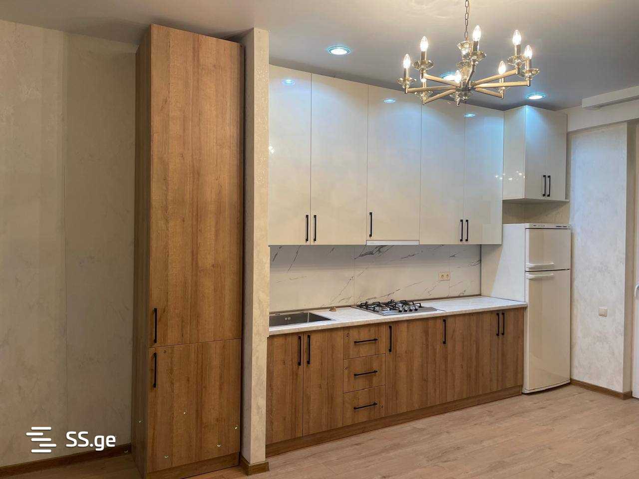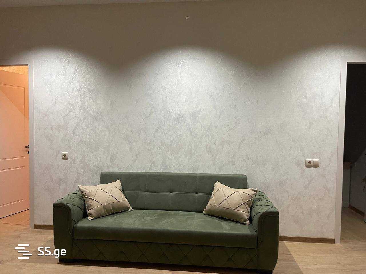 For rent, an apartment in a newly built building near Akhmeteli Metro in Gldani, newly renovated, with 2 bedrooms, fully furnished with household furniture and appliances.