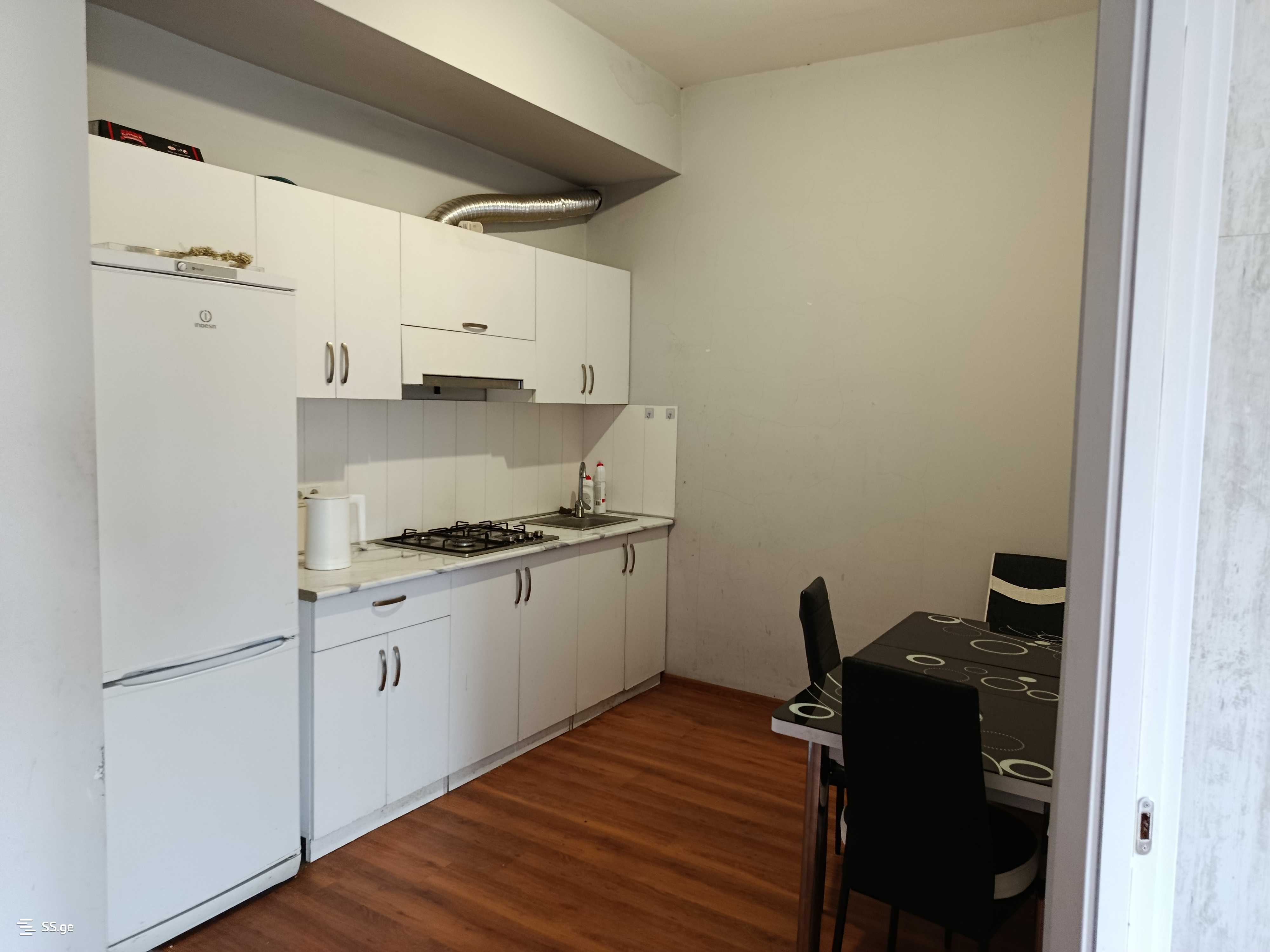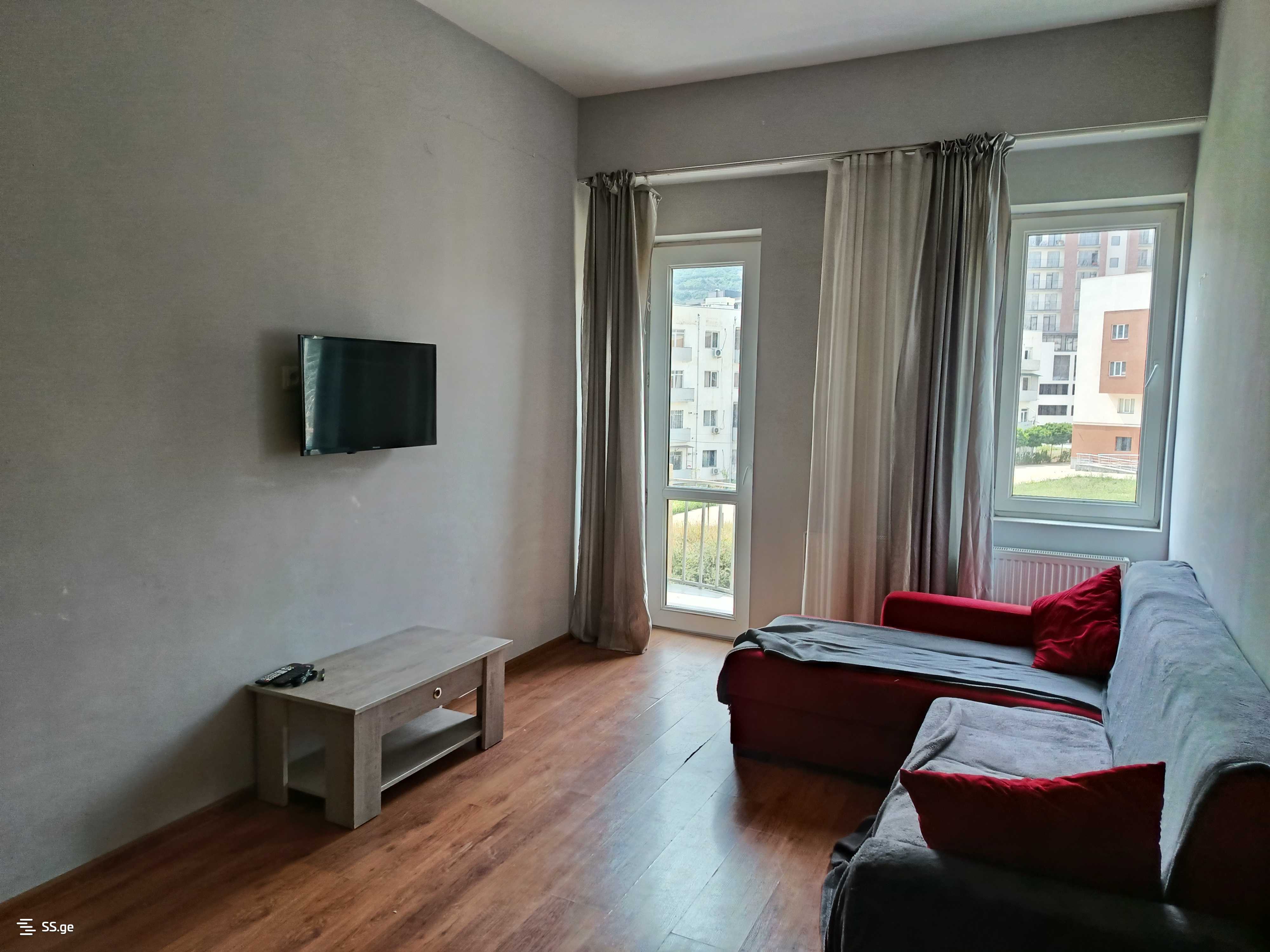 Fully furnished studio-type 2-room apartment on Jikia, near the Sukhumi university (in the Spar and Nikora building), surrounded by all markets, a park, and a bus stop in front.