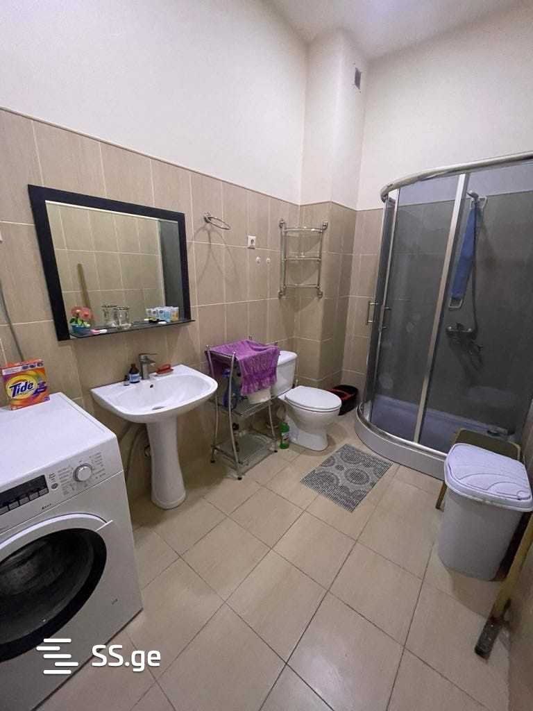 I am renting a very nice apartment at 5 Politkovskaya Street, on the second floor of a three-story building. The building and the entrance are very nice. It is located exactly next to laundries on Politkovskaya, with all shops and necessary facilities around.