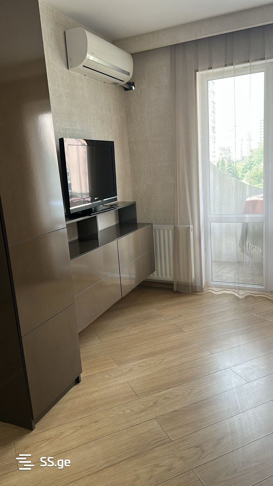 For rent: a two-room furnished apartment near Nutsubidze Street. Floor 10. The apartment has a balcony, central heating, and air conditioning.