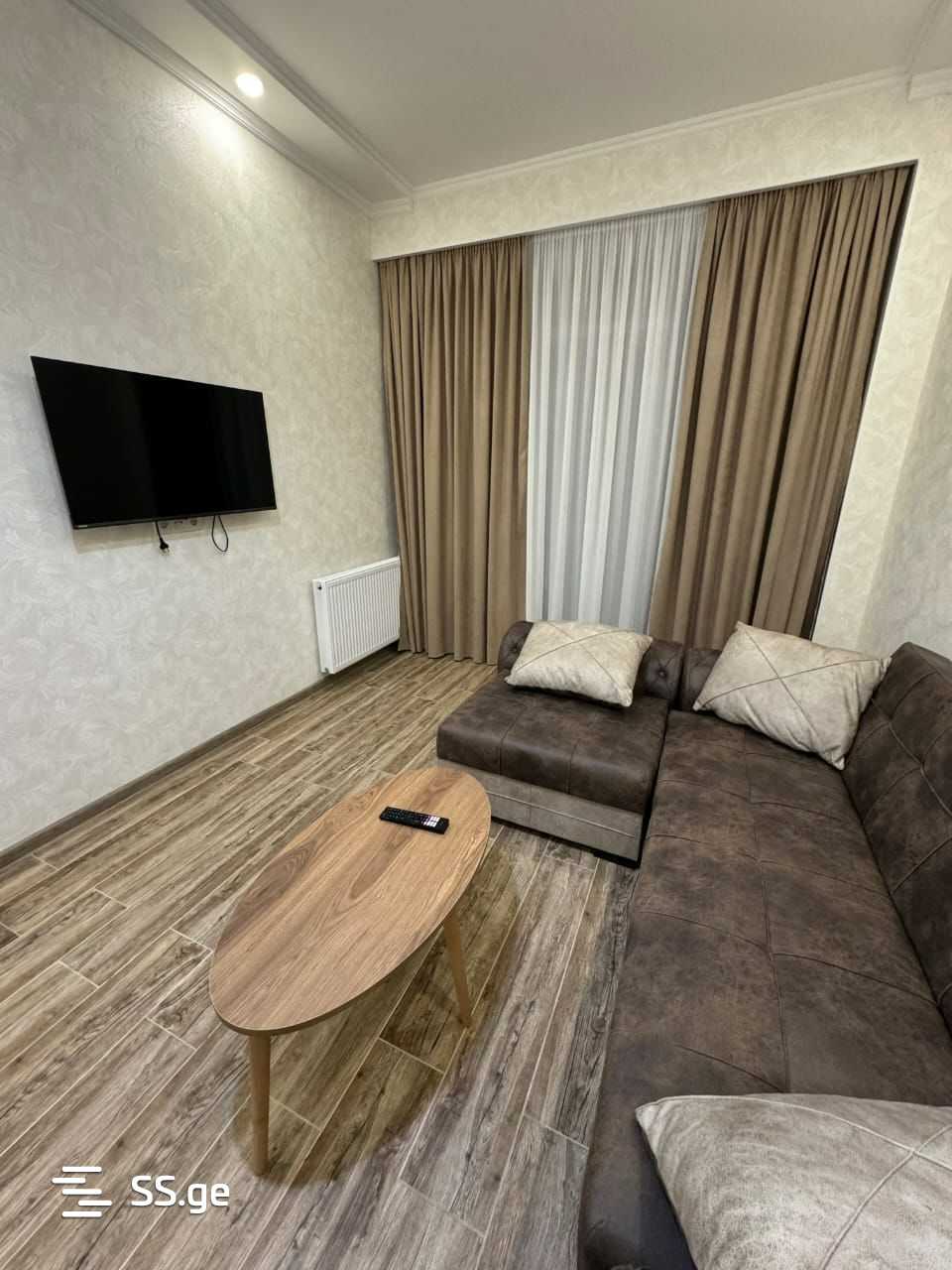 For rent: a 2-room newly renovated furnished apartment in Mukhaiani, on A. Gobronidze Street 7, in the Balavar building, close to Akhmeteli Metro. The apartment is equipped with all necessary furniture and appliances: air conditioner, washing machine, TV, internet, central heating, etc. The apartment is completely ready for comfortable living.