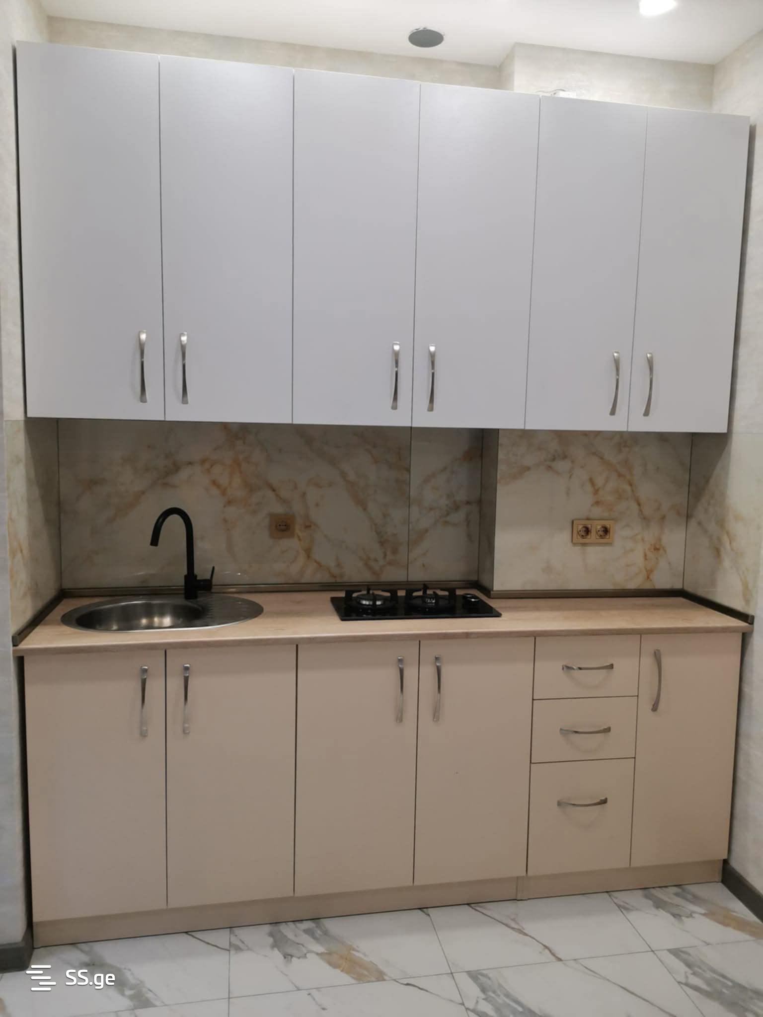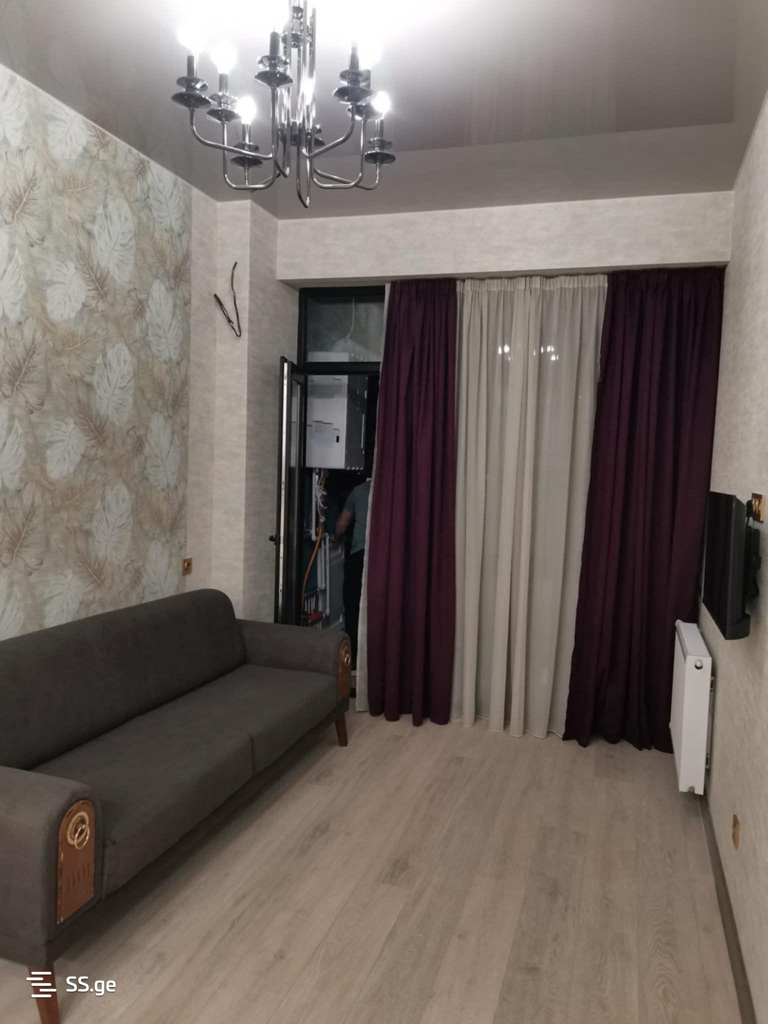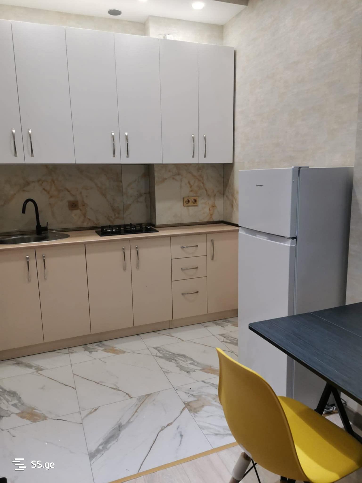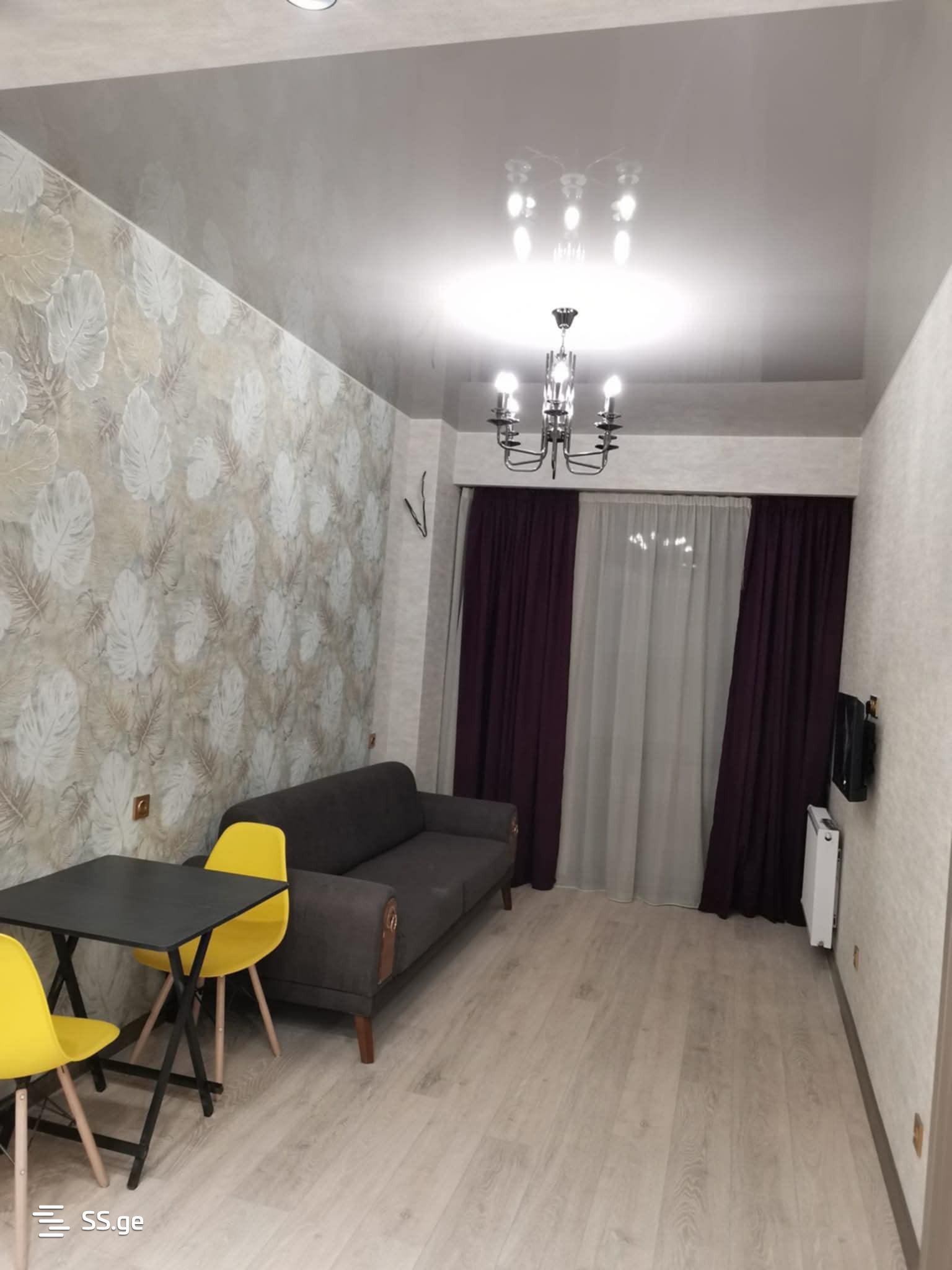 Two-room apartment for rent in a newly built building, central heating with furniture and appliances. It is a super location right by the stop, with all necessary facilities around. The apartment will be available from August 10. I am the owner. 1100 Lari for agencies.