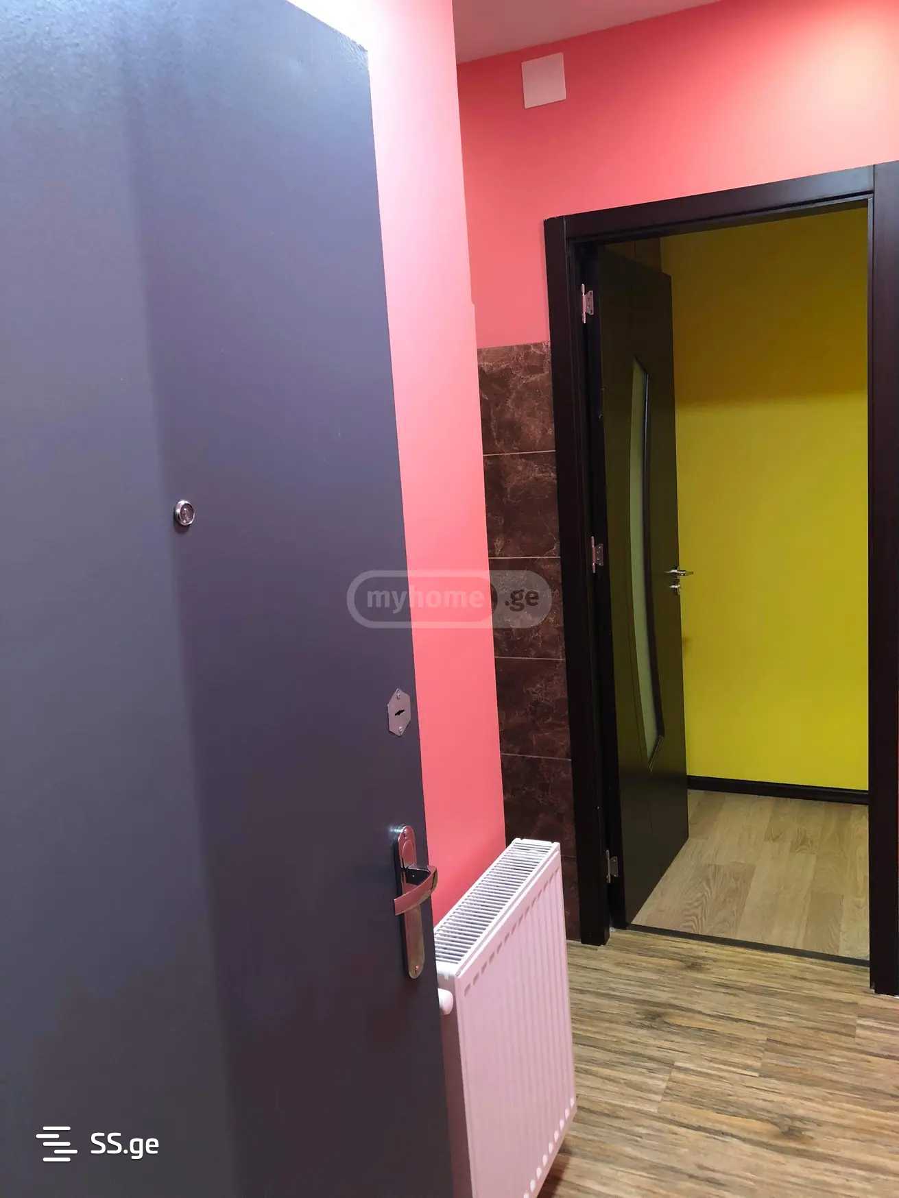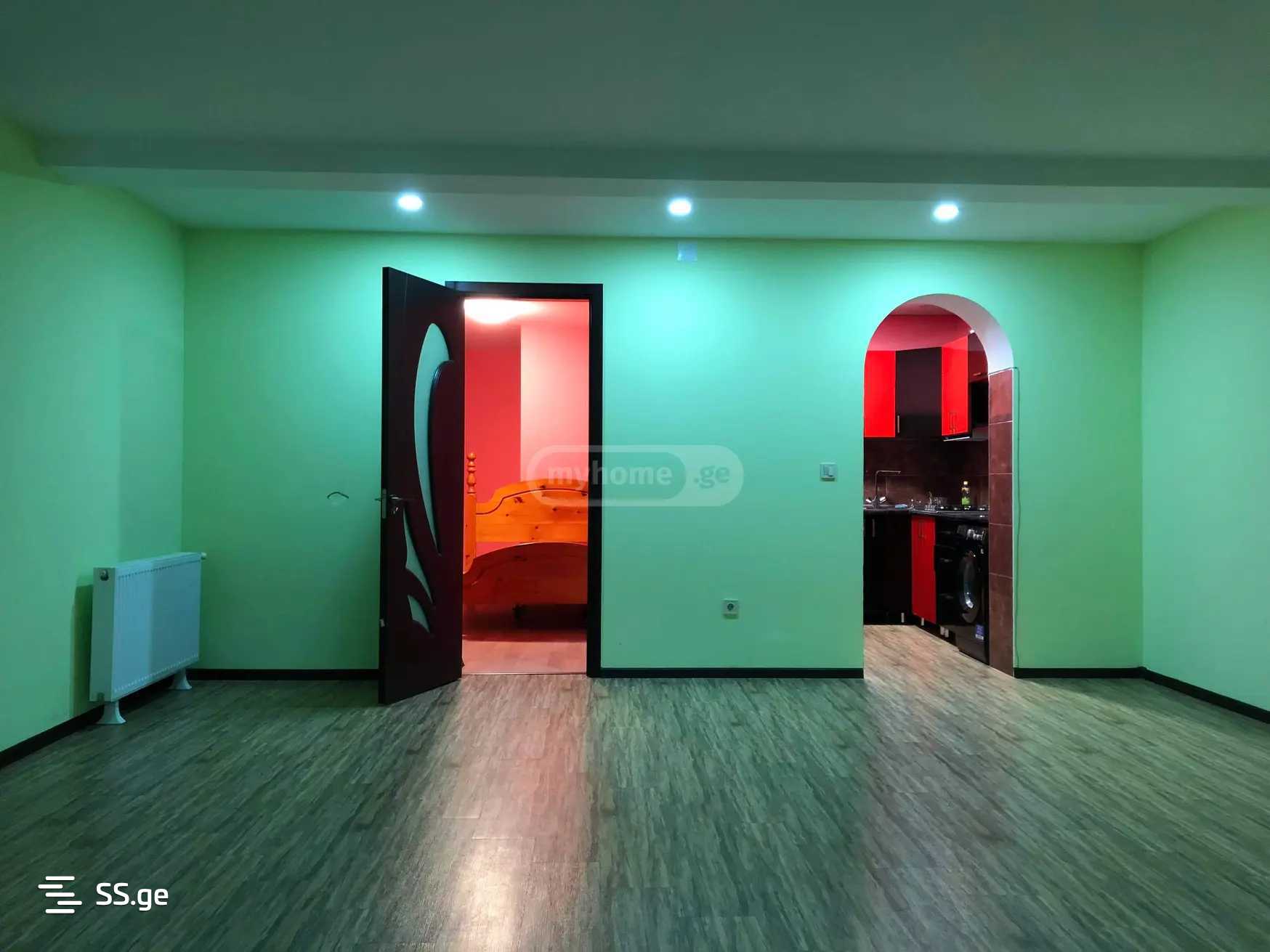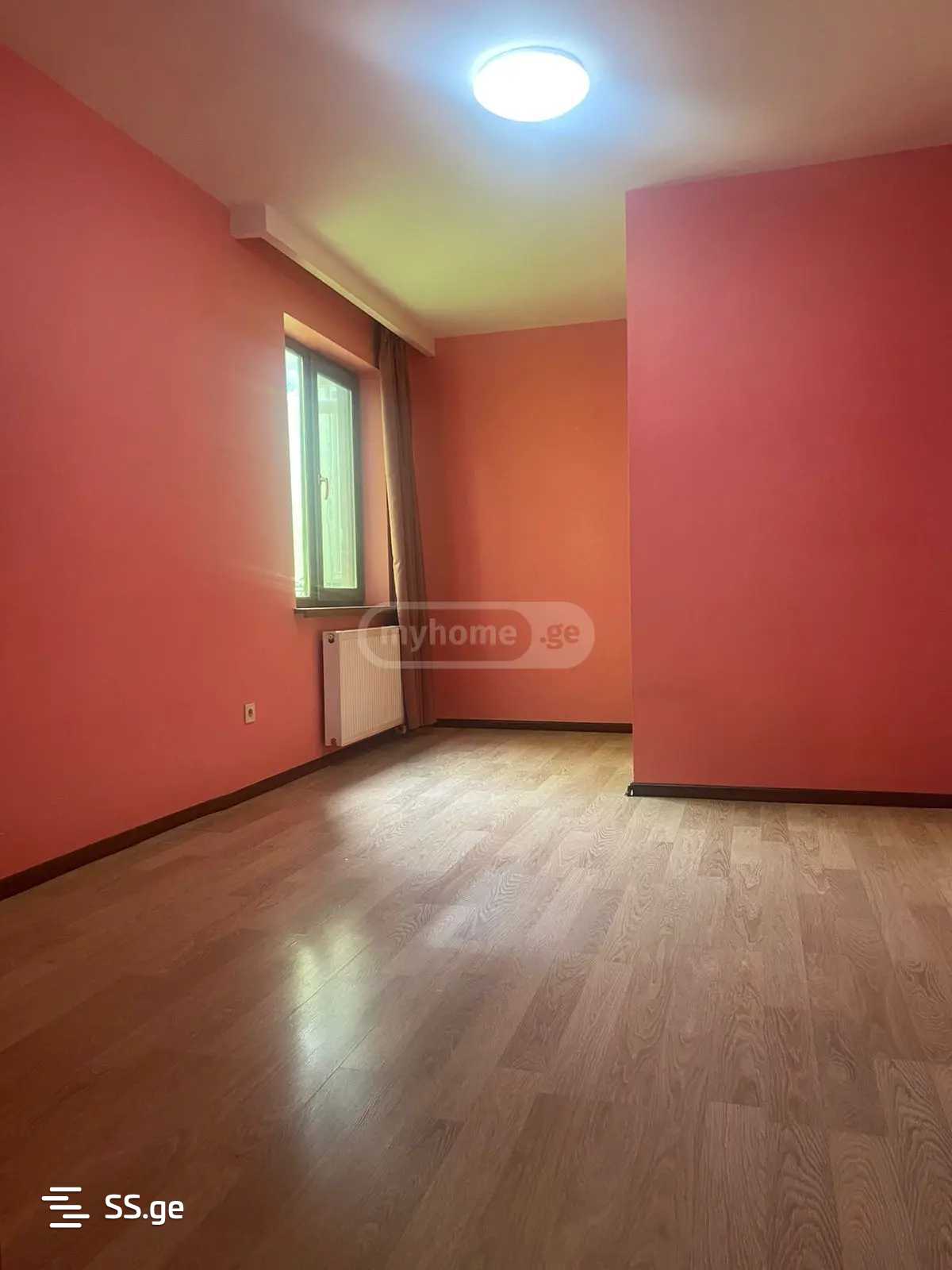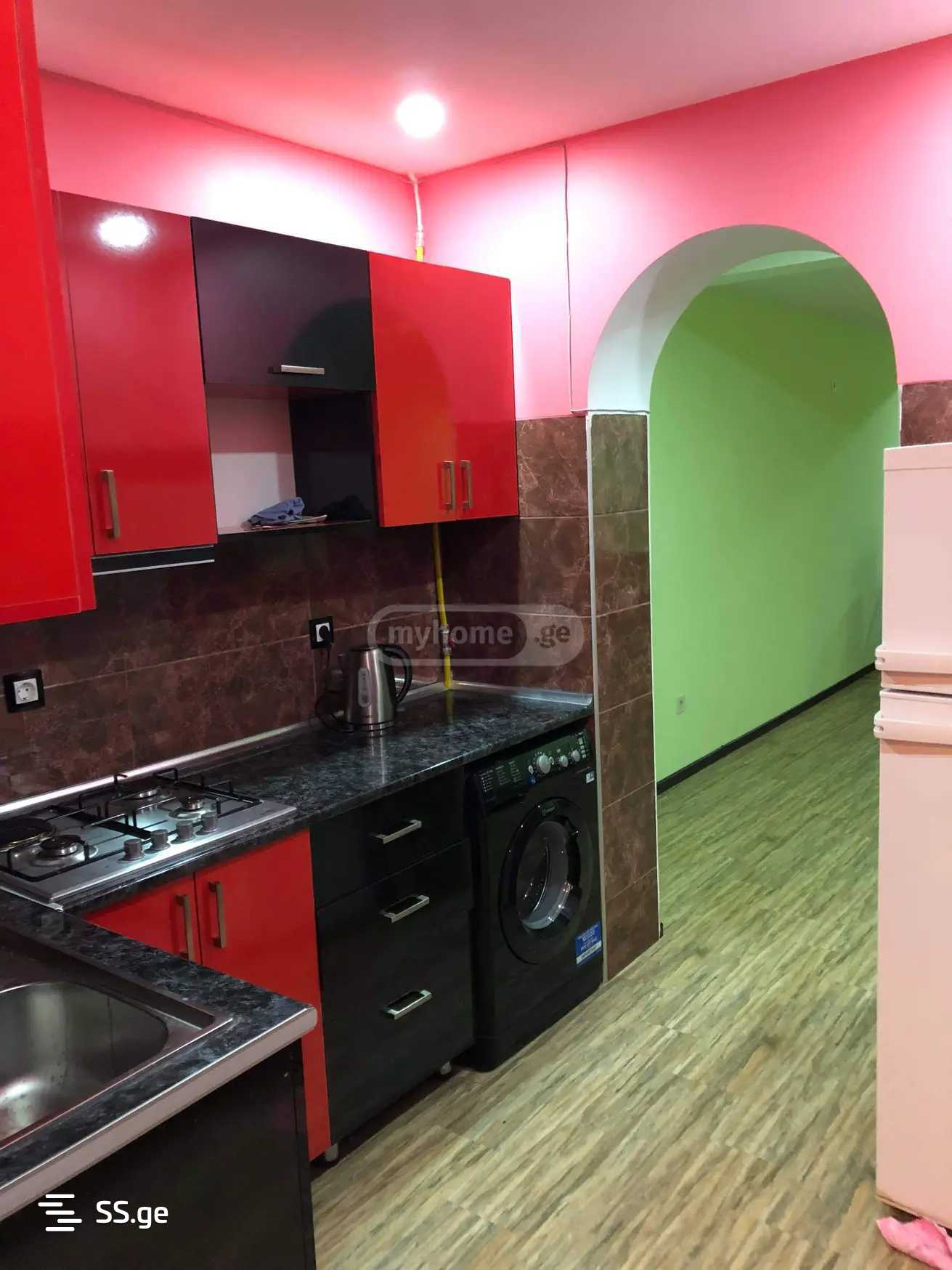 For rent: a 3-room apartment in Temka, 88 sq/m. It has 2 bedrooms and a large living room. The apartment has central heating and hot water; there is a 24 BTU air conditioner in the living room. The kitchen is built-in, and there is some small equipment in the apartment. The price is 1000 Lari.