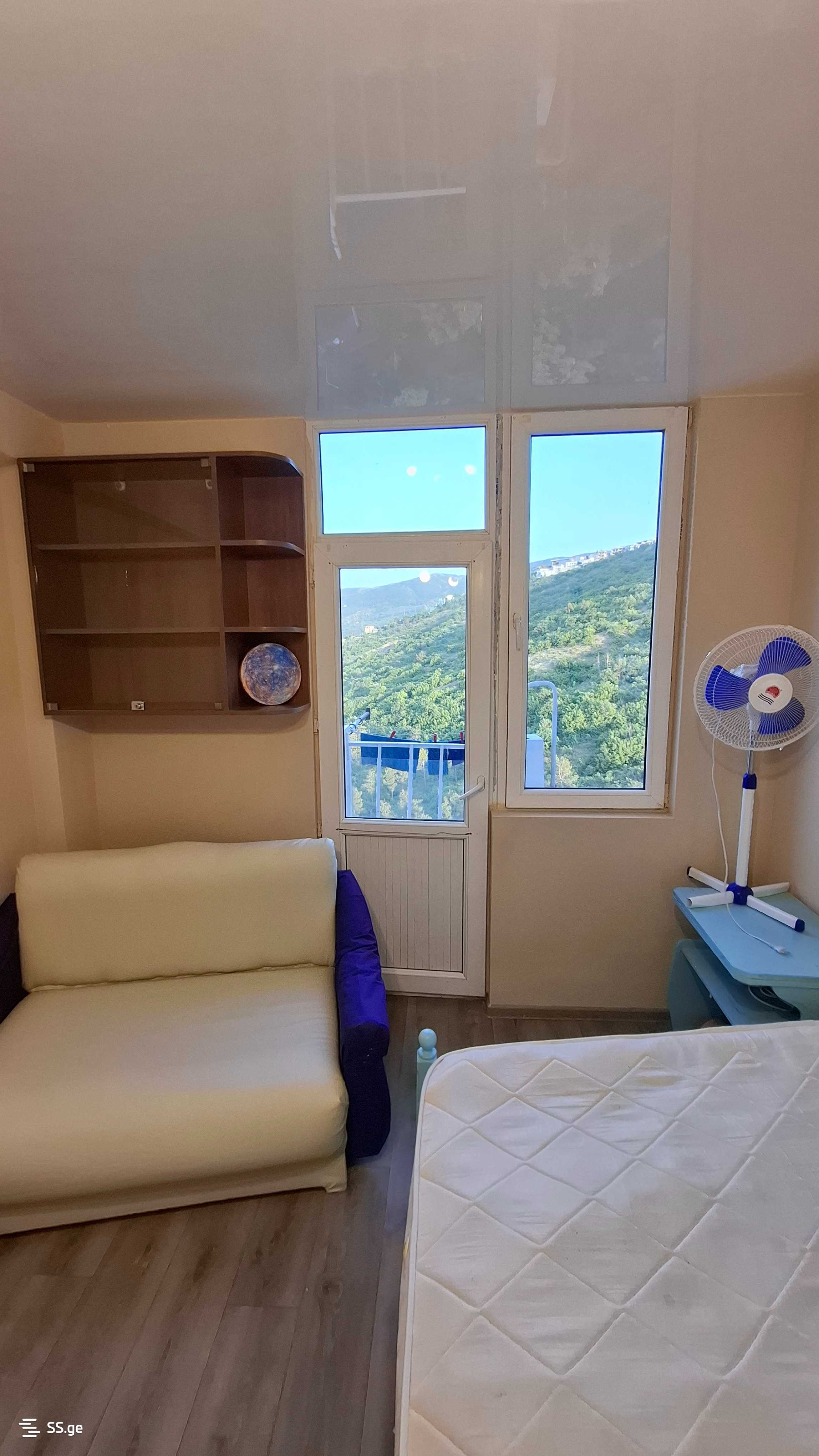 1-room apartment for rent in Bagebi. Near the bridge, next to the university high-rise building. Ideal for 1-2 students. With panoramic views. Price: 1000 GEL. (The apartment is uninhabited, the renovation has just been completed. With new appliances) There is a bus stop, a cable car, and a German school nearby.