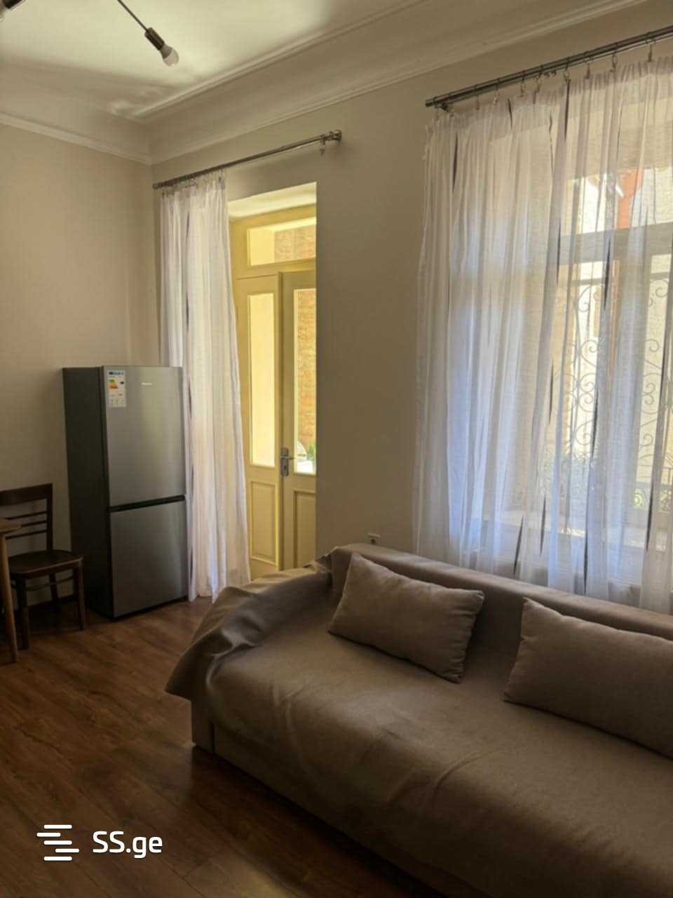 For rent on Freedom Square, near Gudiashvili Park, an uninhabited 2-room apartment, 1200 GEL. It has a beautiful and cozy yard.