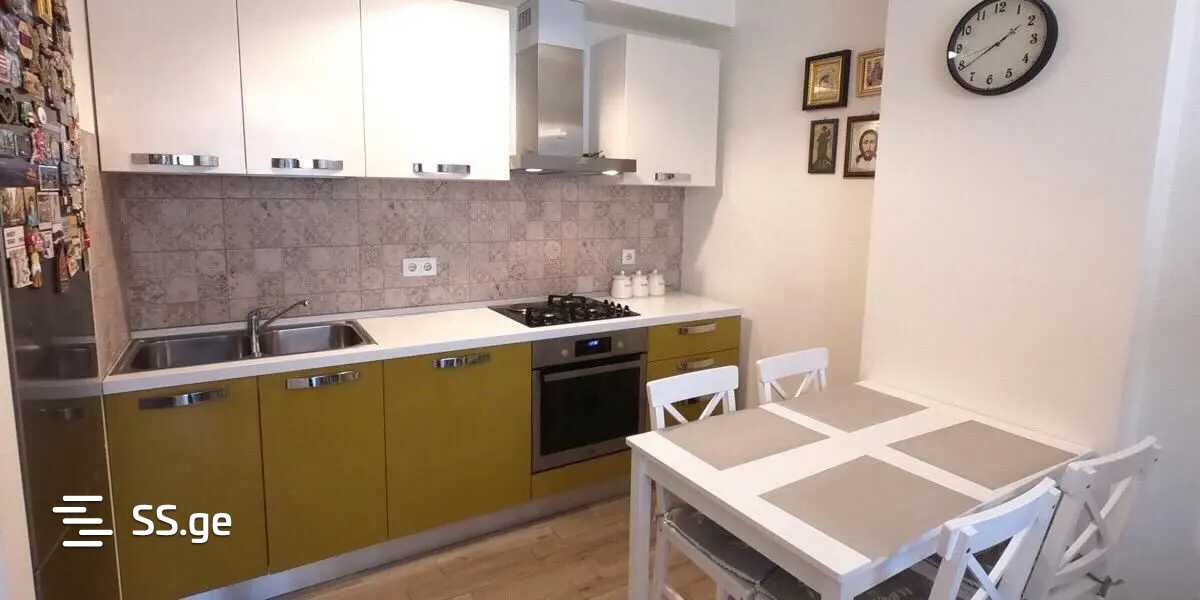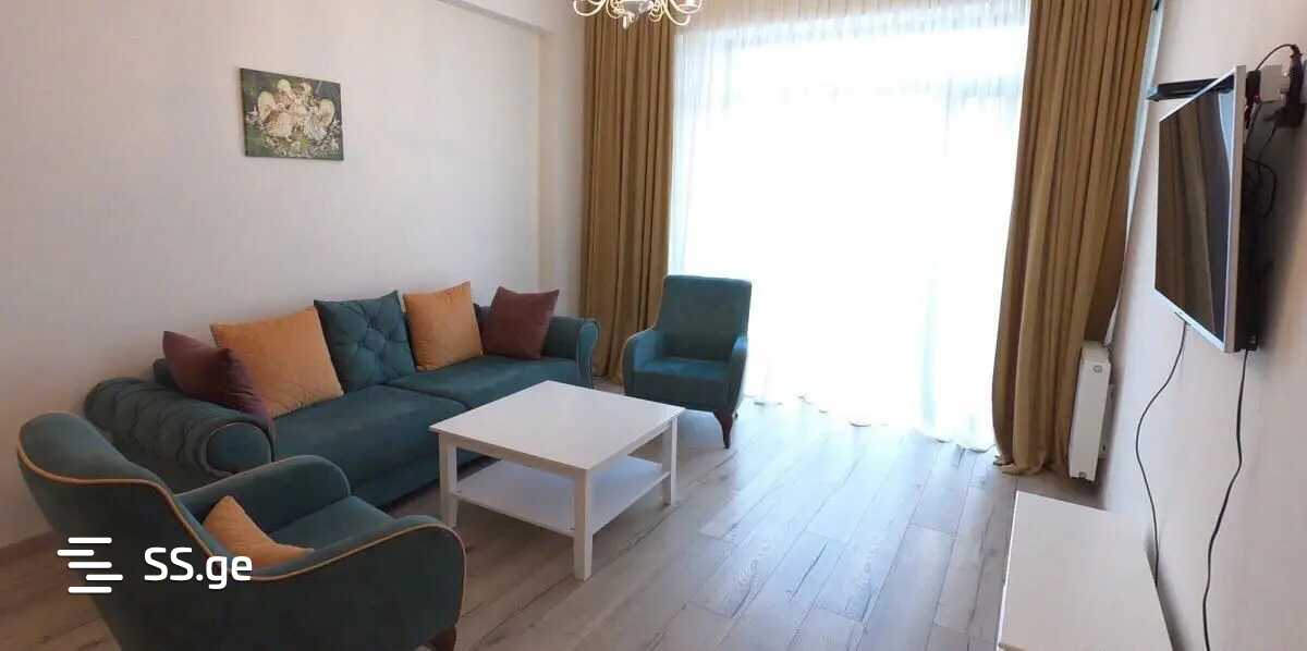 Modern and fully furnished 2-room apartment for rent in the prestigious M2 Kartozia complex, located in Saburtalo.Situated on the 15th floor, the flat offers great views and plenty of natural light.Includes a comfortable foldable sofa, ideal for guests or extra sleeping space.The building features high-quality construction, secure entrance, and a peaceful neighborhood close to shops, public transport, and all essential services