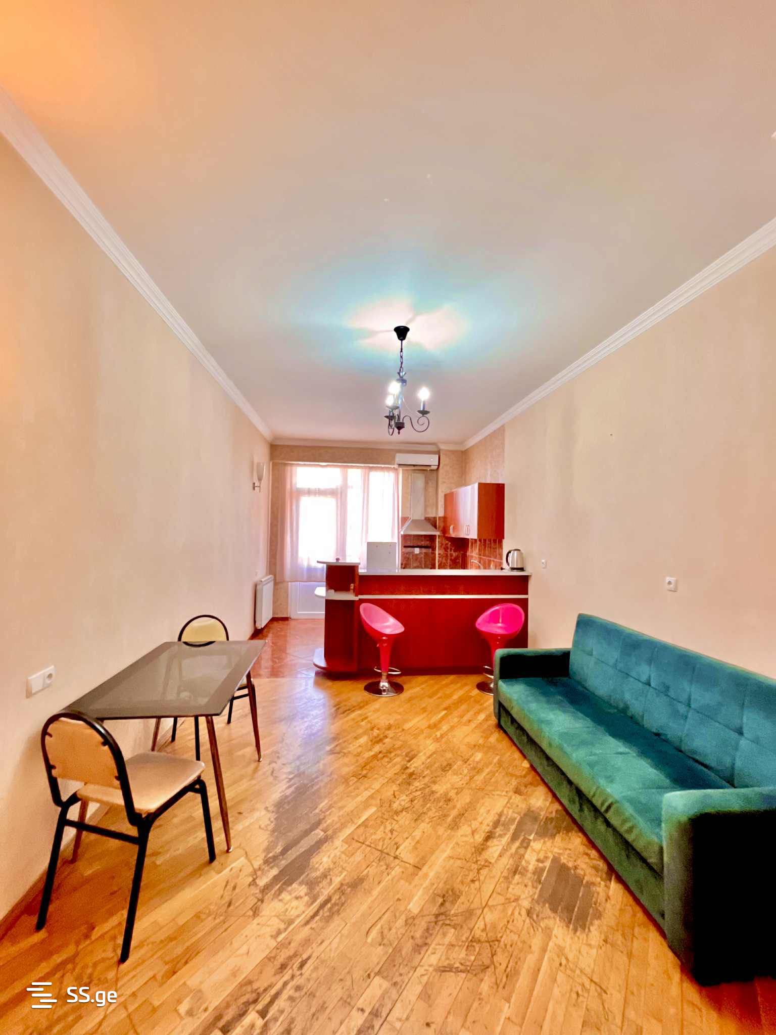 On the 4th floor, with a balcony, central heating, air conditioning, the apartment has all kinds of furniture and appliances.
