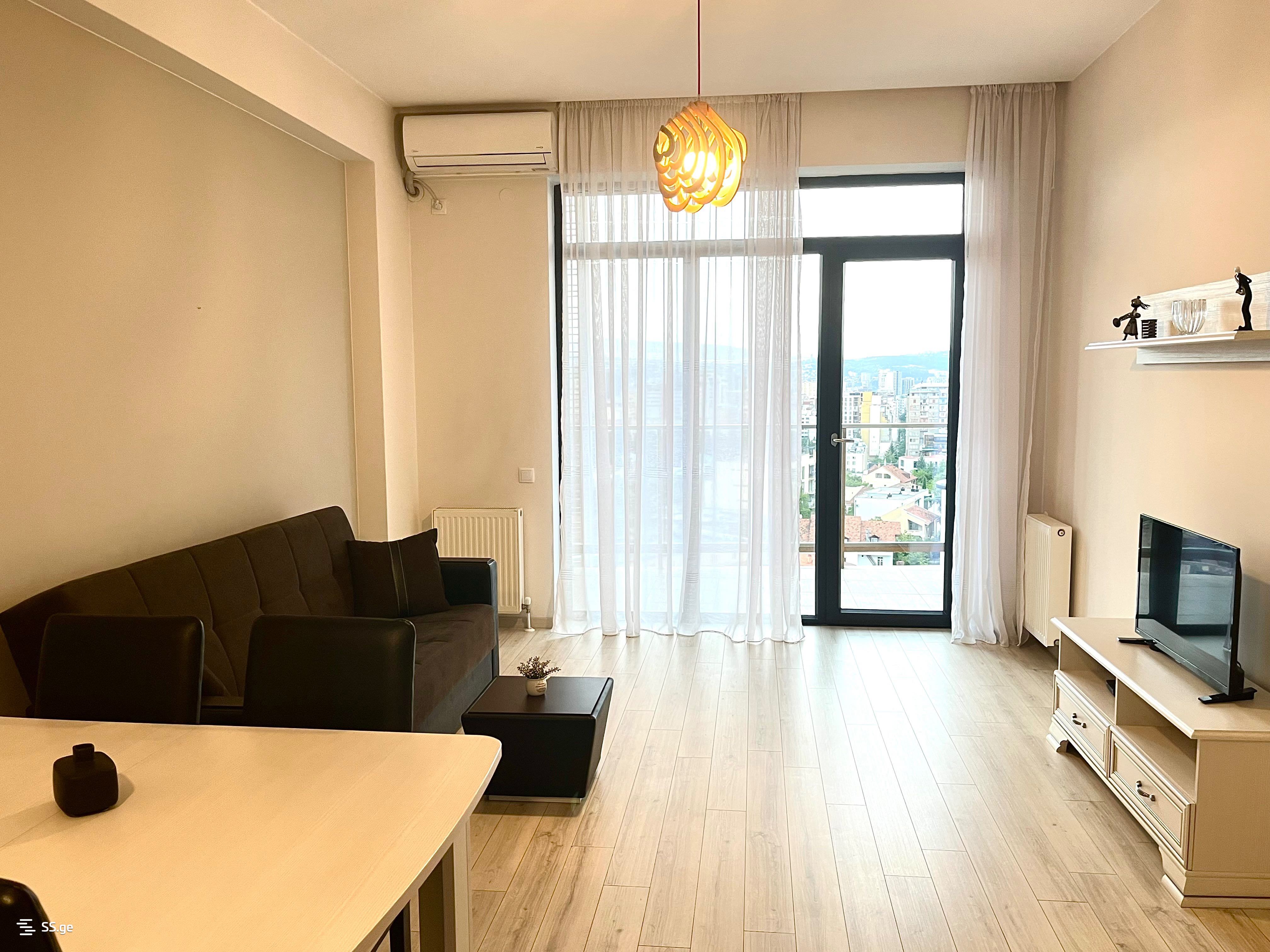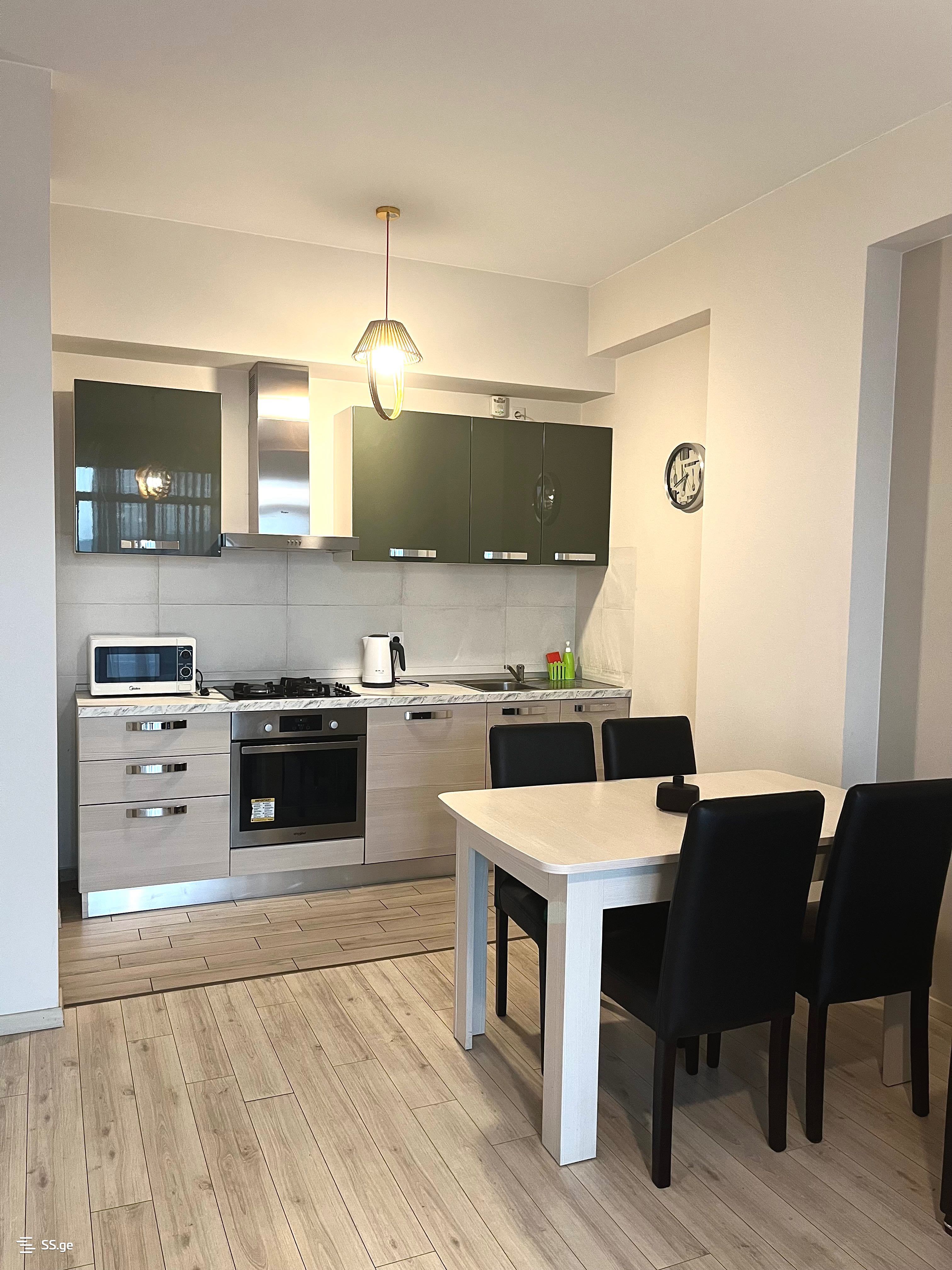 For rent 2-room apartment in a newly built building with m2. Bright, cozy. The apartment is equipped with all kinds of furniture and appliances, central heating, dishwasher. With beautiful views. The building is insulated. Located in the center. There is a market, cafe, pharmacy, park around. Close to all kinds of transportation. Price 650$.