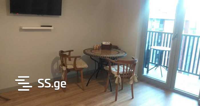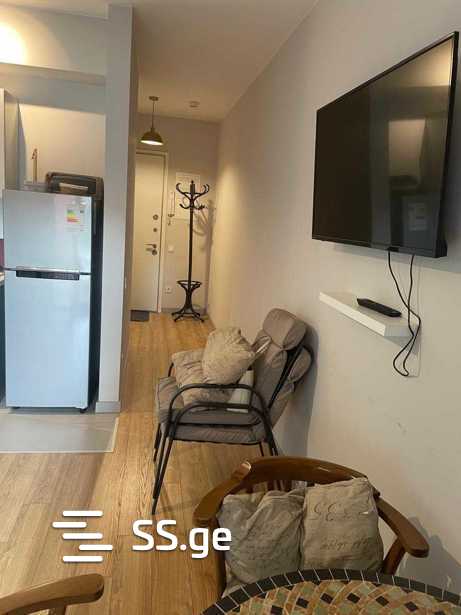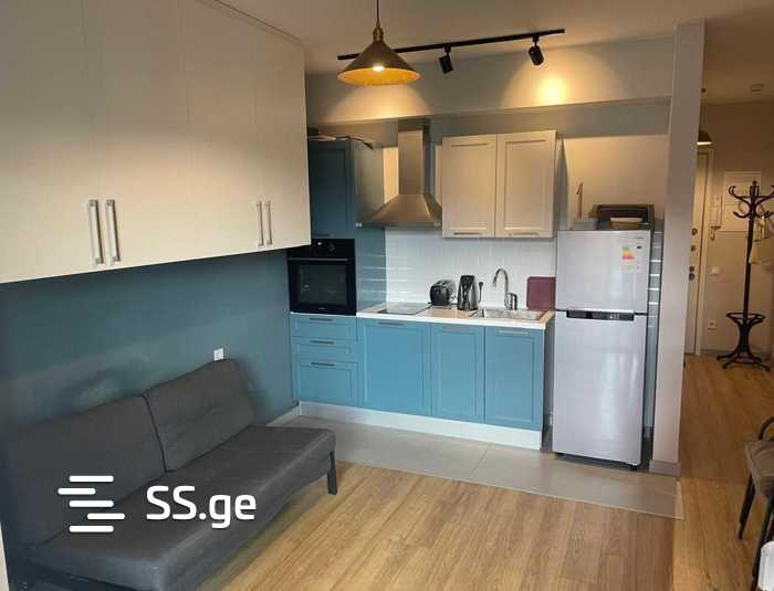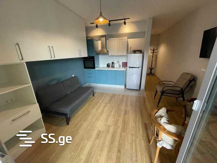 A one-bedroom, newly renovated studio-type apartment is for rent on Marshal Gelovani Street in a residential complex of 2. The apartment is fully equipped (furniture, appliances, dishes) and also has a comfortable balcony with a good view. There are restrictions only on pets.
