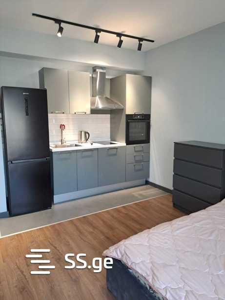 A studio-type apartment is for rent, m² in the complex in Saburtalo, Marshal Gelovani Avenue, opposite Agrohub. A newly built, newly renovated 35 sq.m. 1-room apartment with furniture and all kinds of appliances (refrigerator, washing machine, air conditioner, dishwasher). Price is 420 dollars.