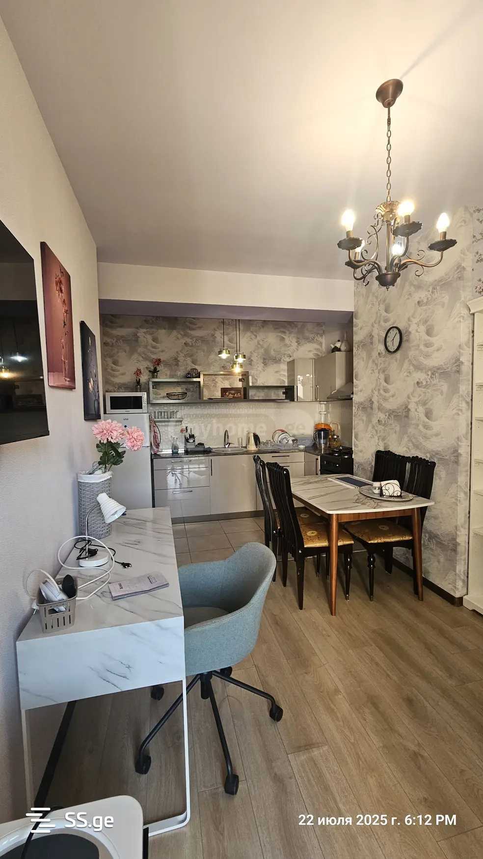 An equipped apartment is for rent, with a new renovation, necessary appliances, and furniture. Conditional on a two-month advance payment.