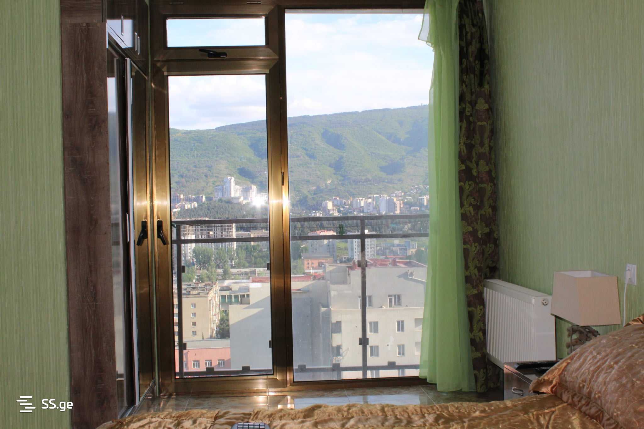 A studio-type apartment (with a separate bedroom) is for rent on the 11th floor of a newly built 13-story building at 125 Nutsubidze, equipped with all necessary inventory.