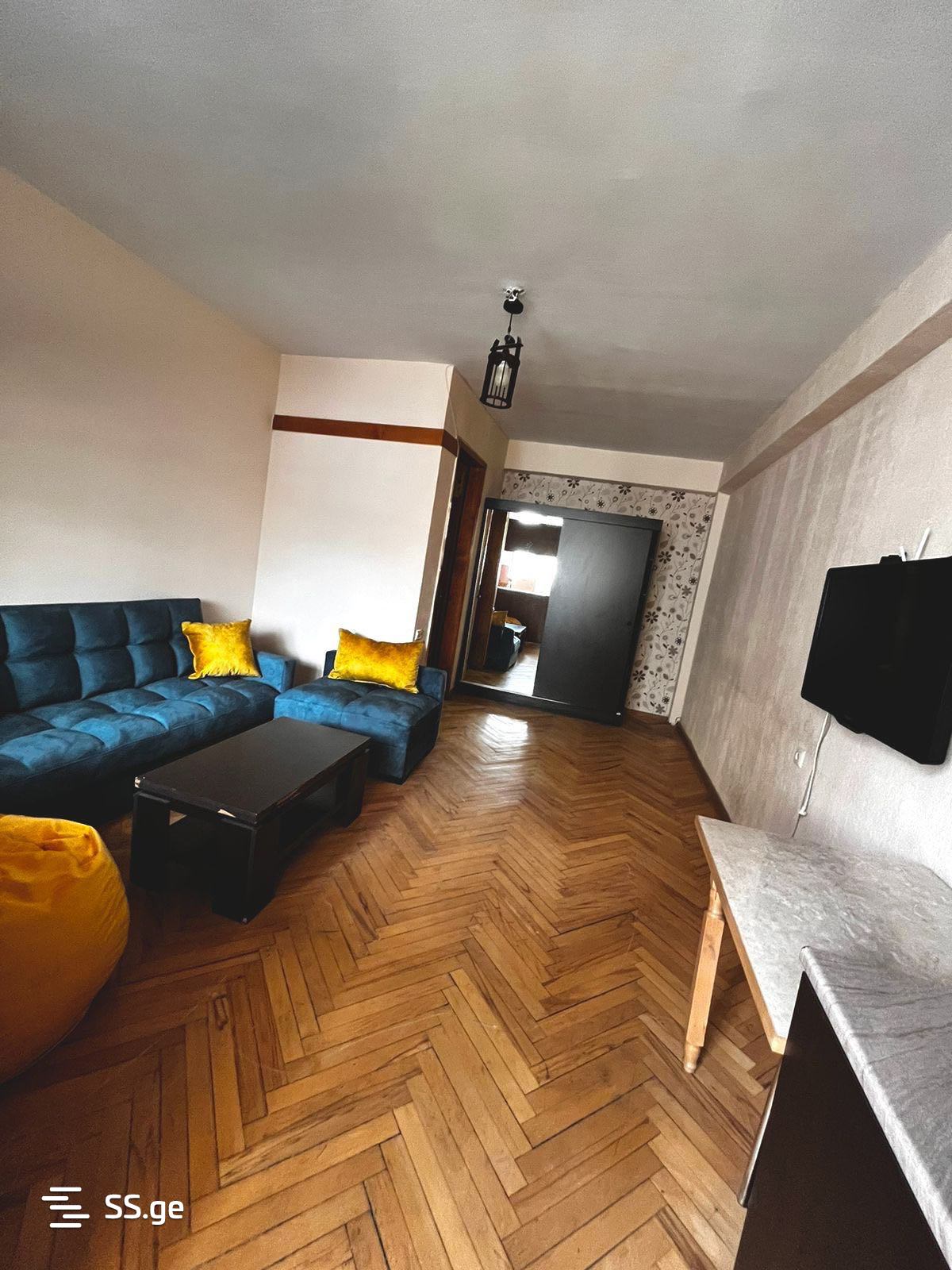 For rent, a two-room apartment on Balanchivadze Street in Saburtalo with a separate bedroom. Kitchen and living room. Two elevators. Heating included. Price 1000 lari t591996191
