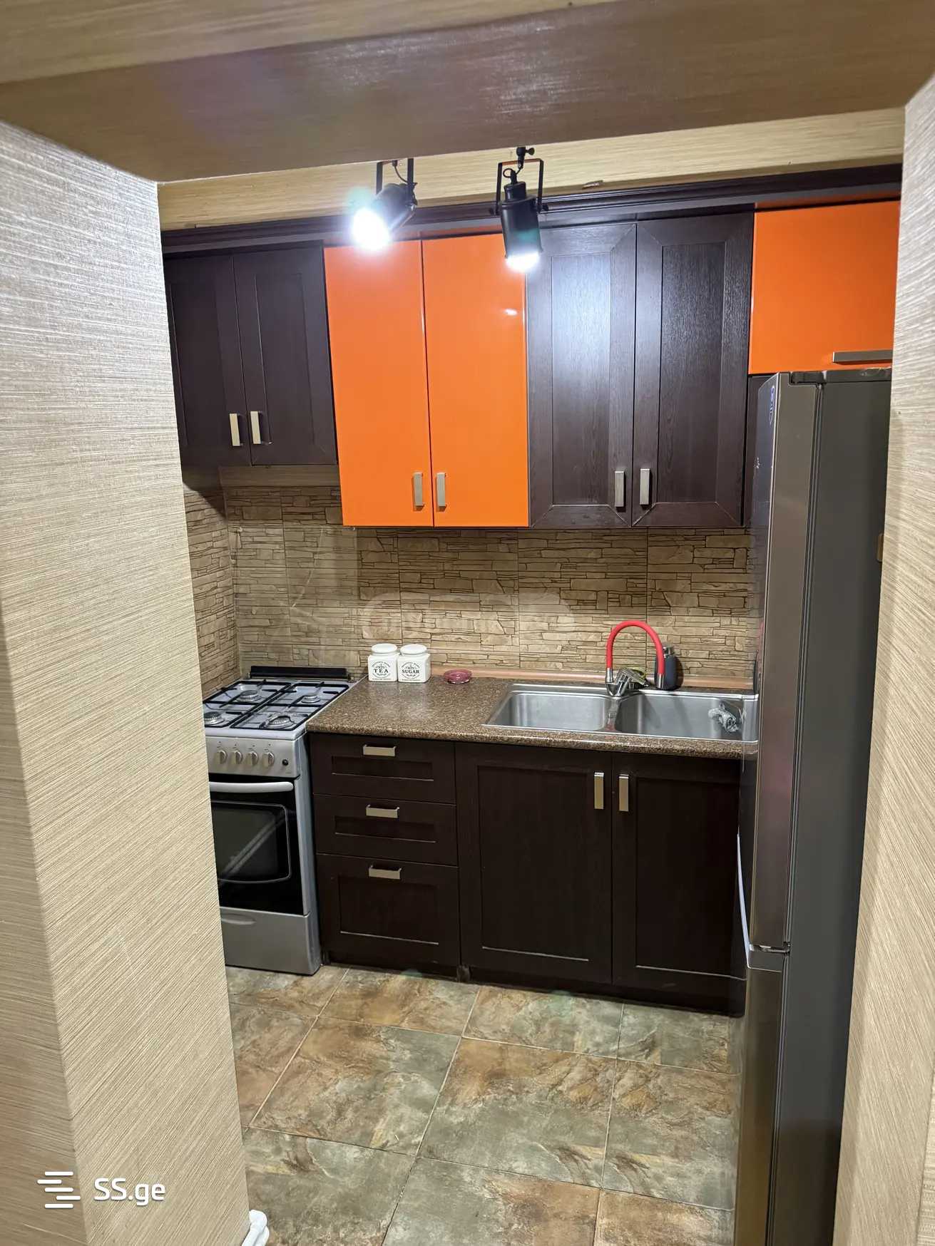 An apartment is for rent with full furniture, located 2-3 minutes away from the metro station (Madarit) in a good location. Price 800$