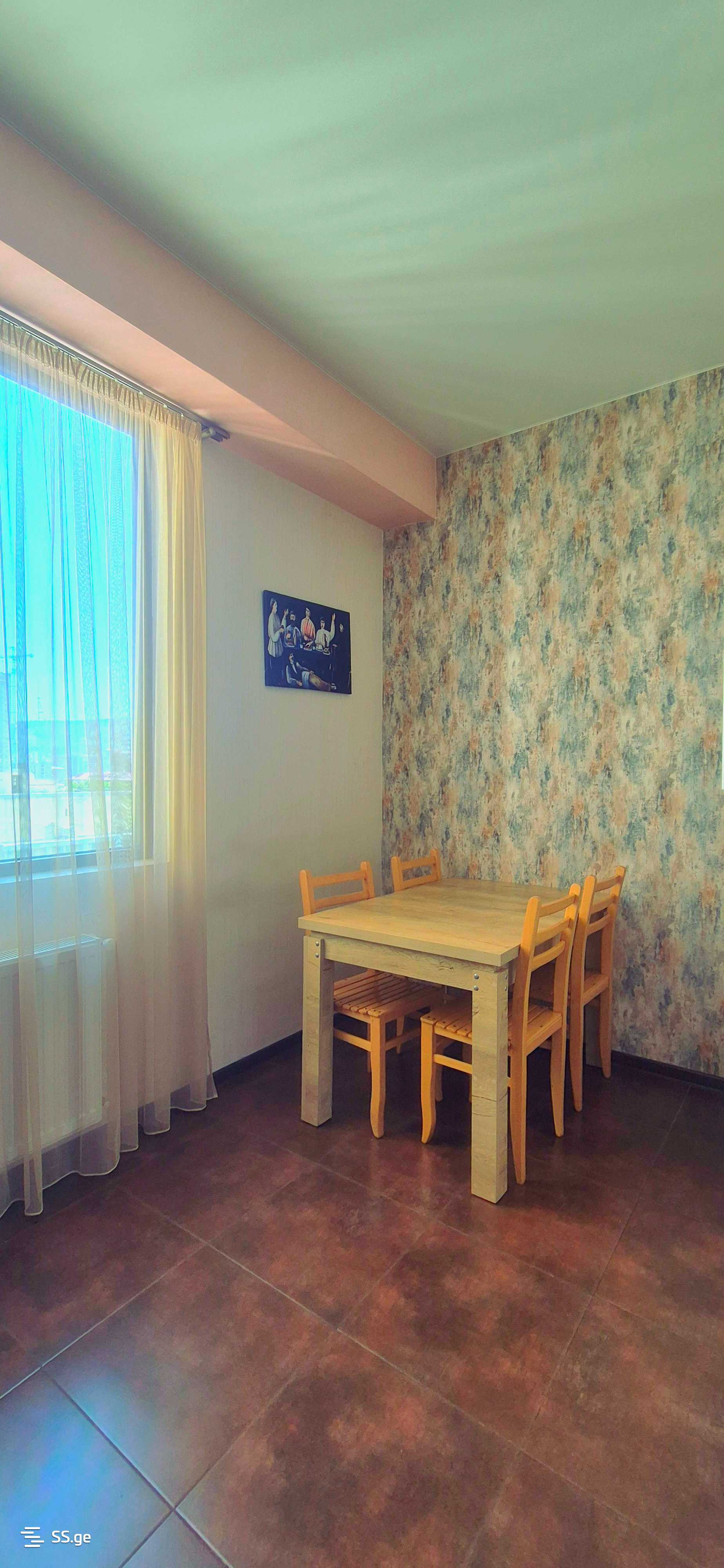 A well-furnished 2-bedroom apartment is for rent on Vanis Street, a 1-minute walk from Tsereteli Avenue, with views of Mtatsminda. The minimum rental period is 1 year, the price is 1500 GEL (with the first and last month's payment combined).