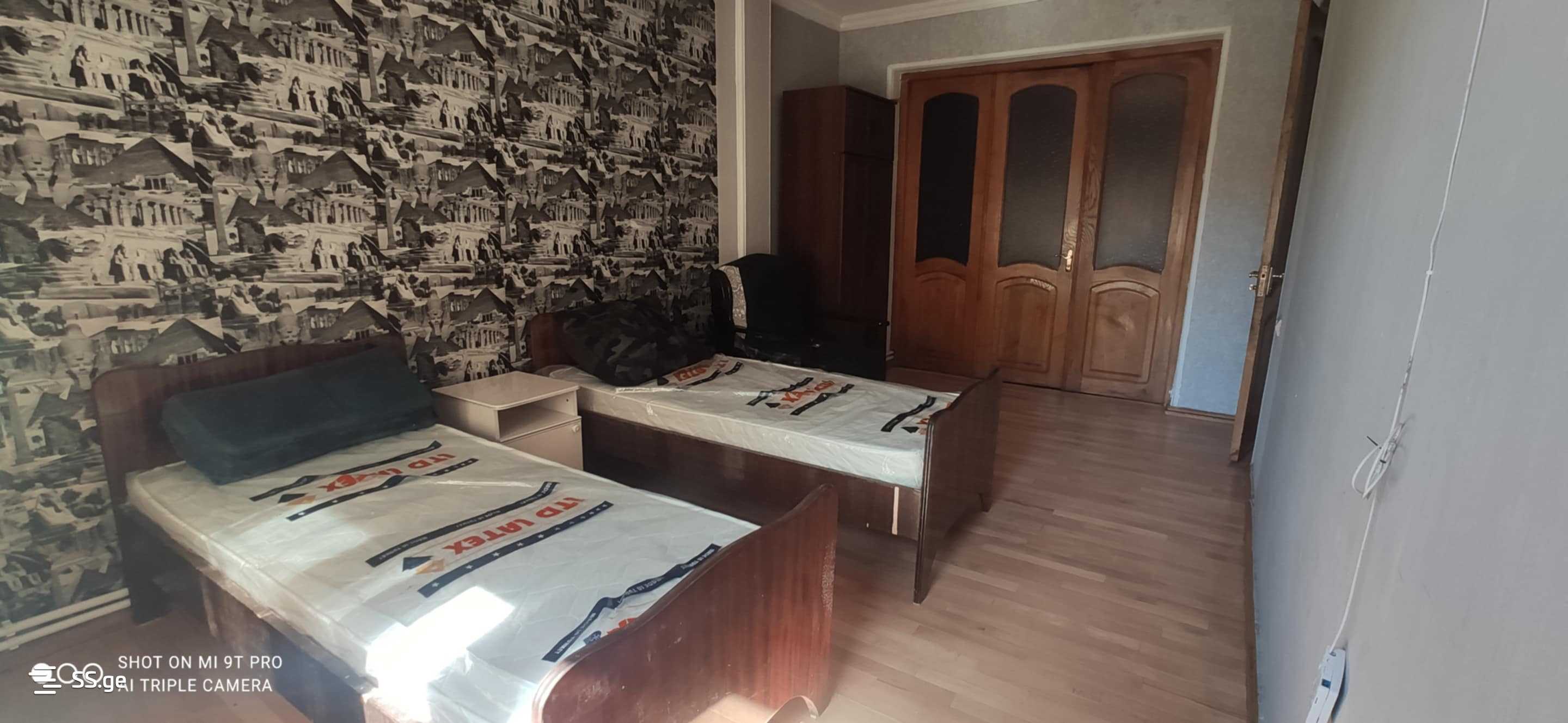 A three-room apartment is available for rent on Tsereteli Avenue, near the exhibition center. Price is 600 dollars.