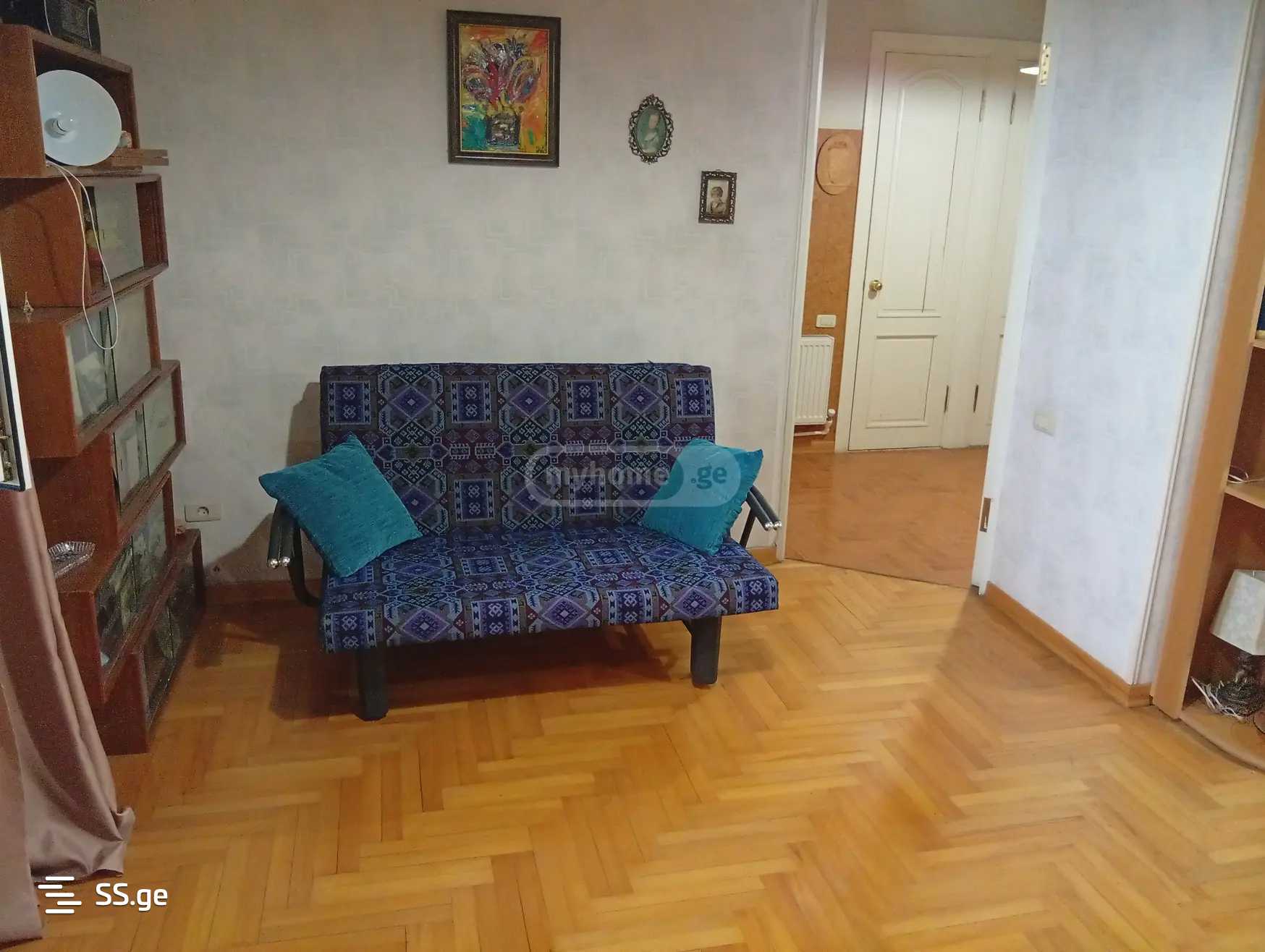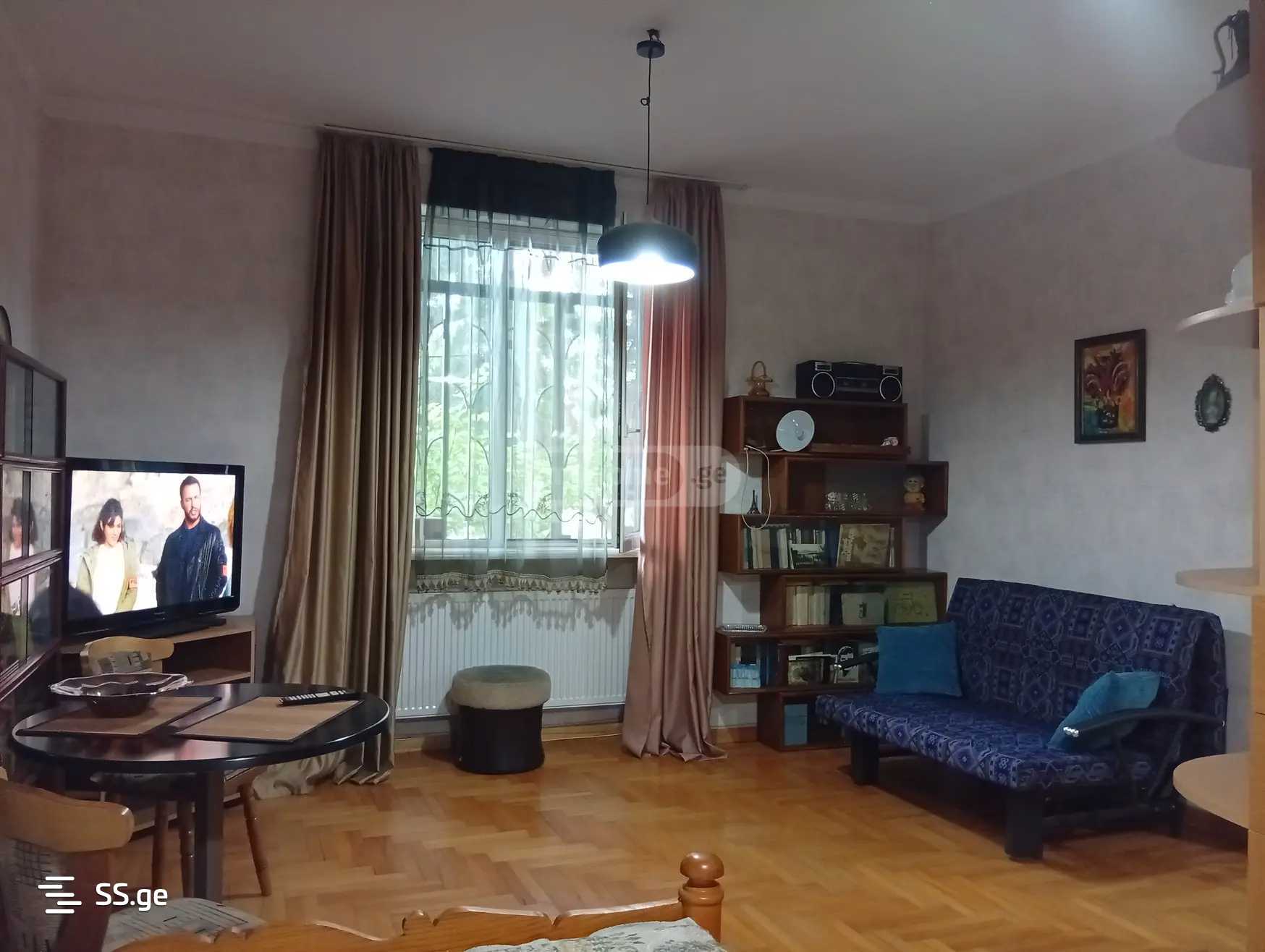 An apartment is for rent on the high first floor in Vake. Parking space in the yard, with a barrier code. The apartment is fully furnished and equipped for comfortable living. Central heating, the house is warm. Payment for the first and last month.