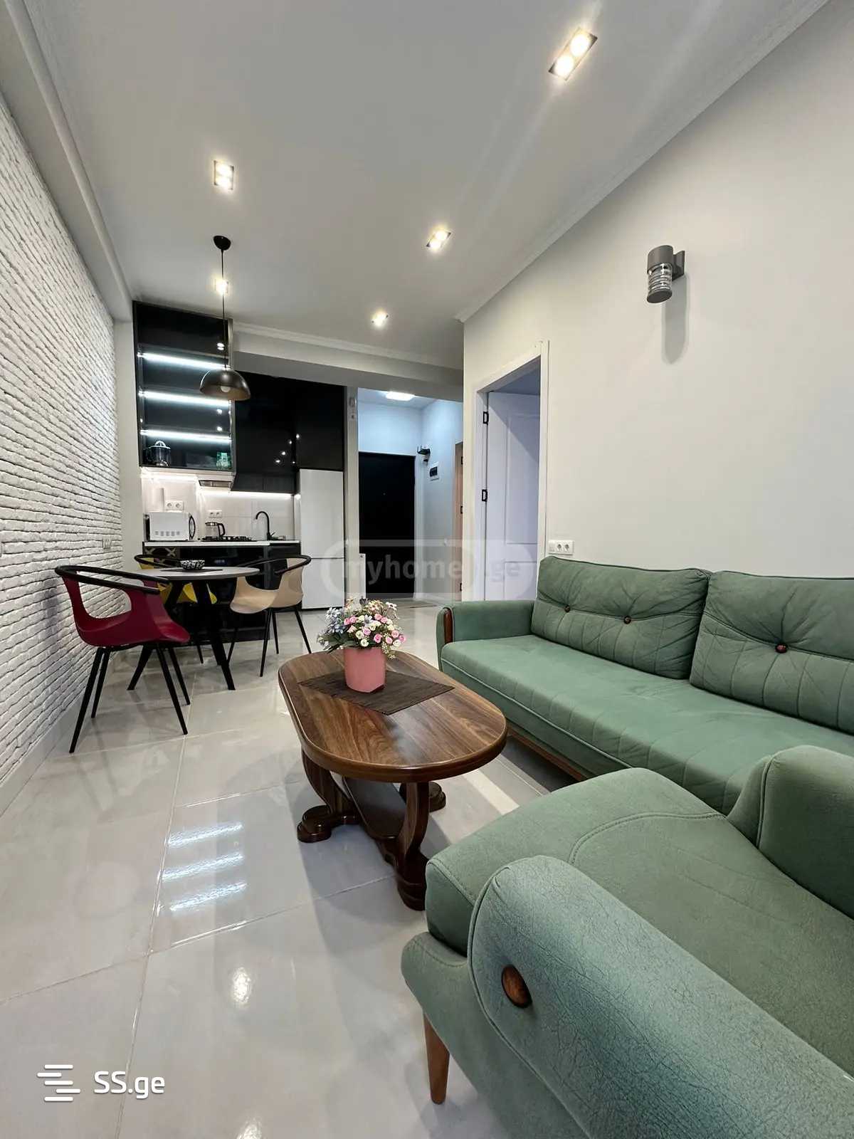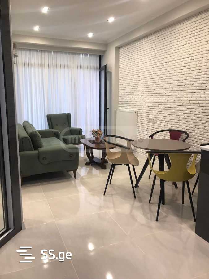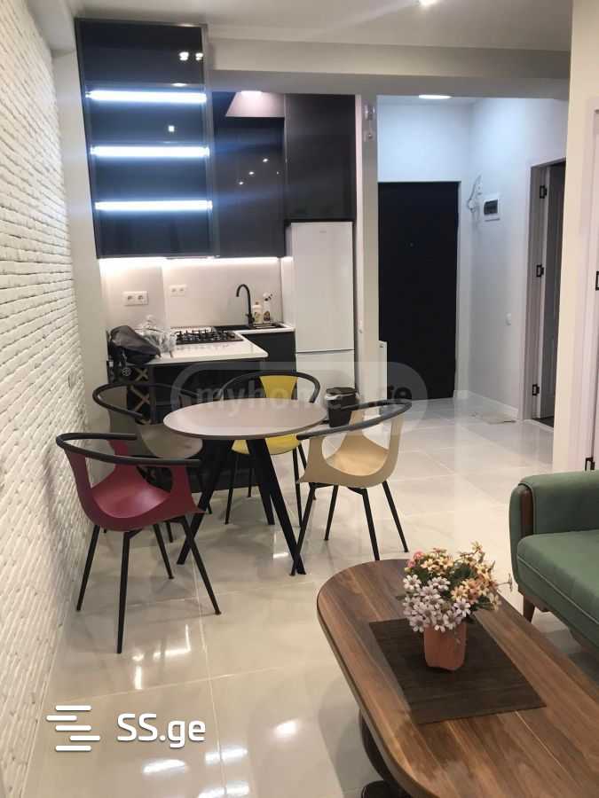 A newly renovated 50 sq/m apartment is for rent in Saburtalo, at Mindeli St. 7b in the prestigious Diamond Project building. It is a 5-minute walk from the 'University' metro station. The building has three elevators, and the apartment is fully equipped with new furniture and appliances.