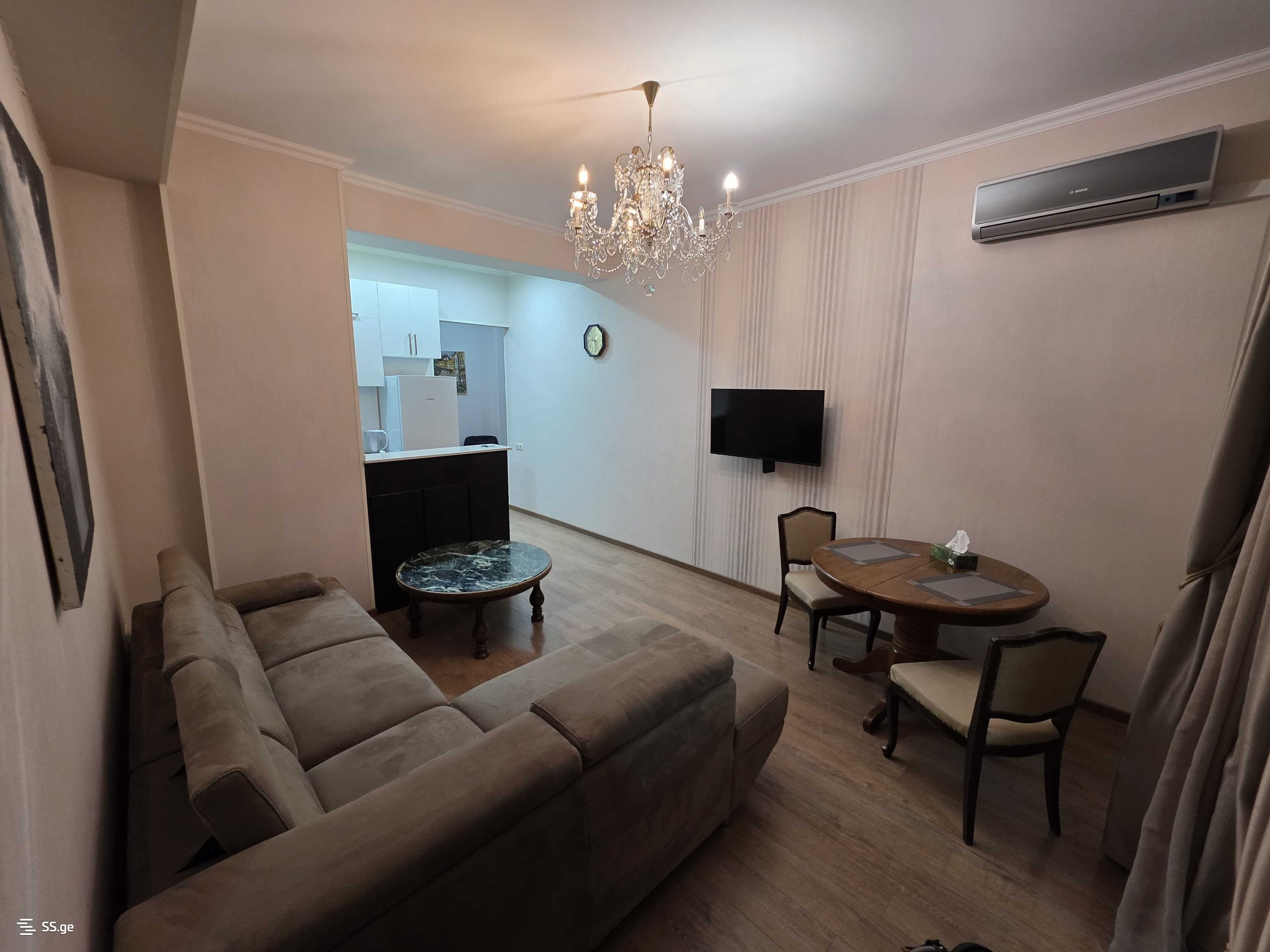For rent in Saburtalo, on Tsagareli Street, in a newly built building, a 3-room apartment with 2 bedrooms. With a balcony and views. The apartment has all necessary furniture and appliances. One bedroom has secondary lighting, the bedrooms connect with each other. Price: $600 (with prepayment for the first and last month).