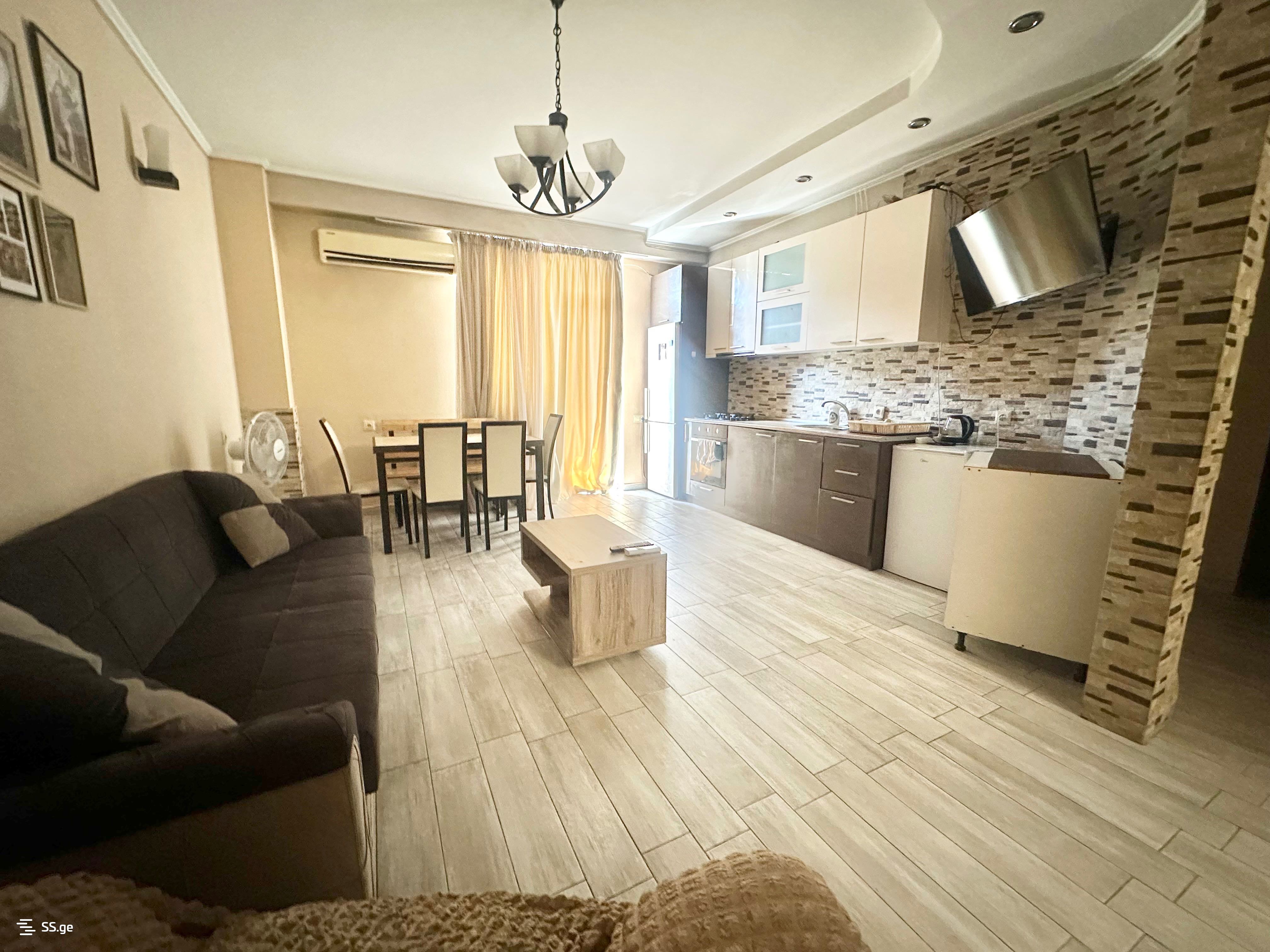 For rent: a 3-room apartment in Saburtalo, on Tsintsadze Street No. 58. The apartment is newly renovated, with an area of 70 sq.m. It is furnished and equipped with appliances. Central heating, parking in the yard, and a secure entrance door.