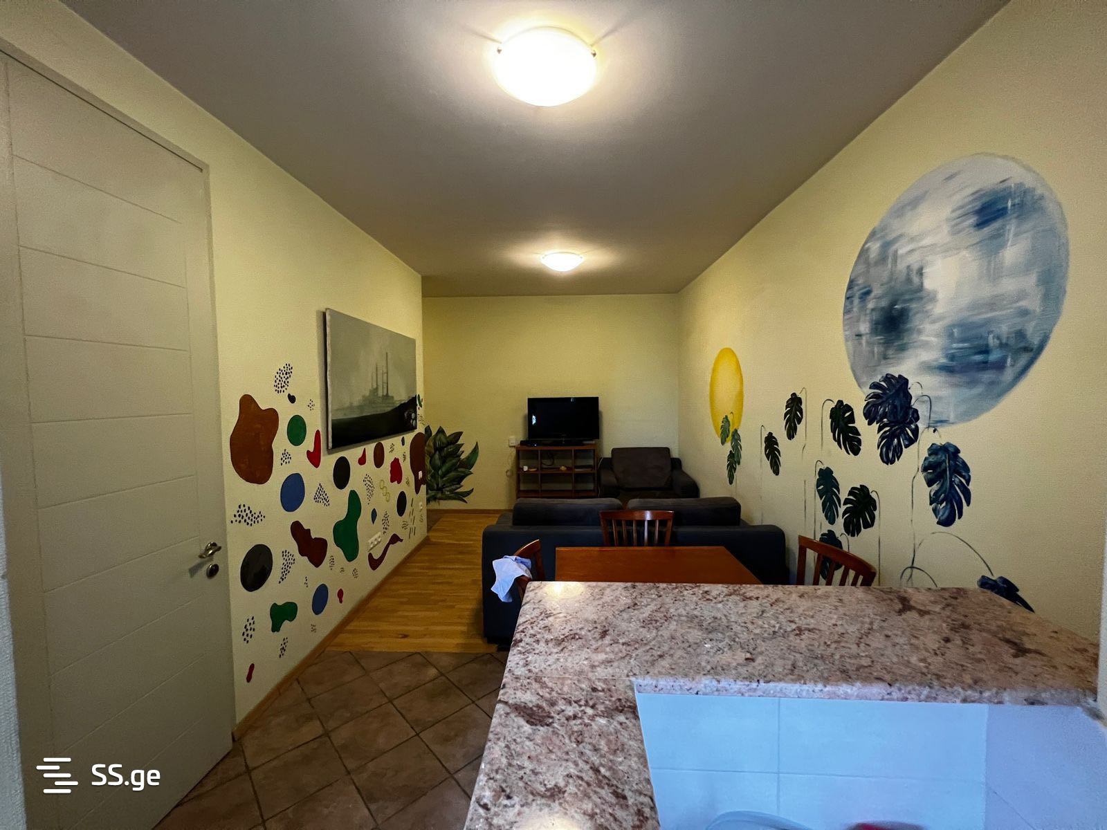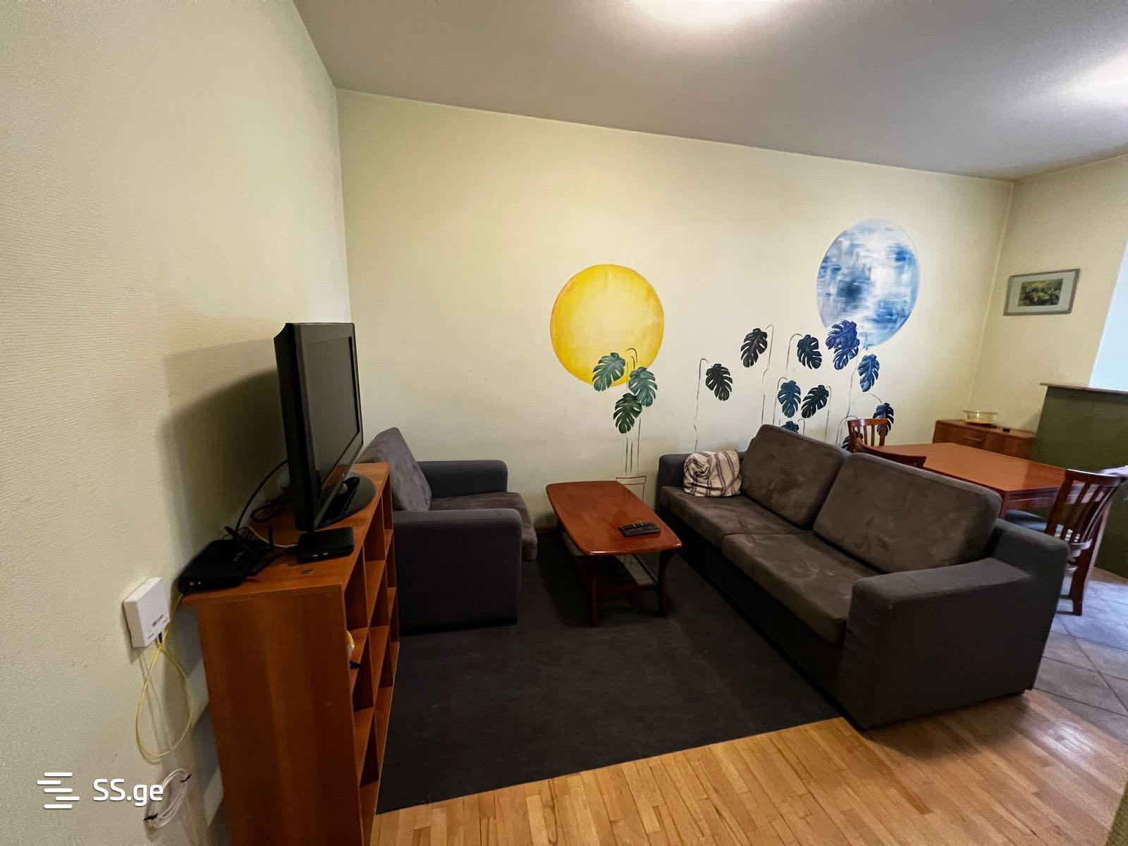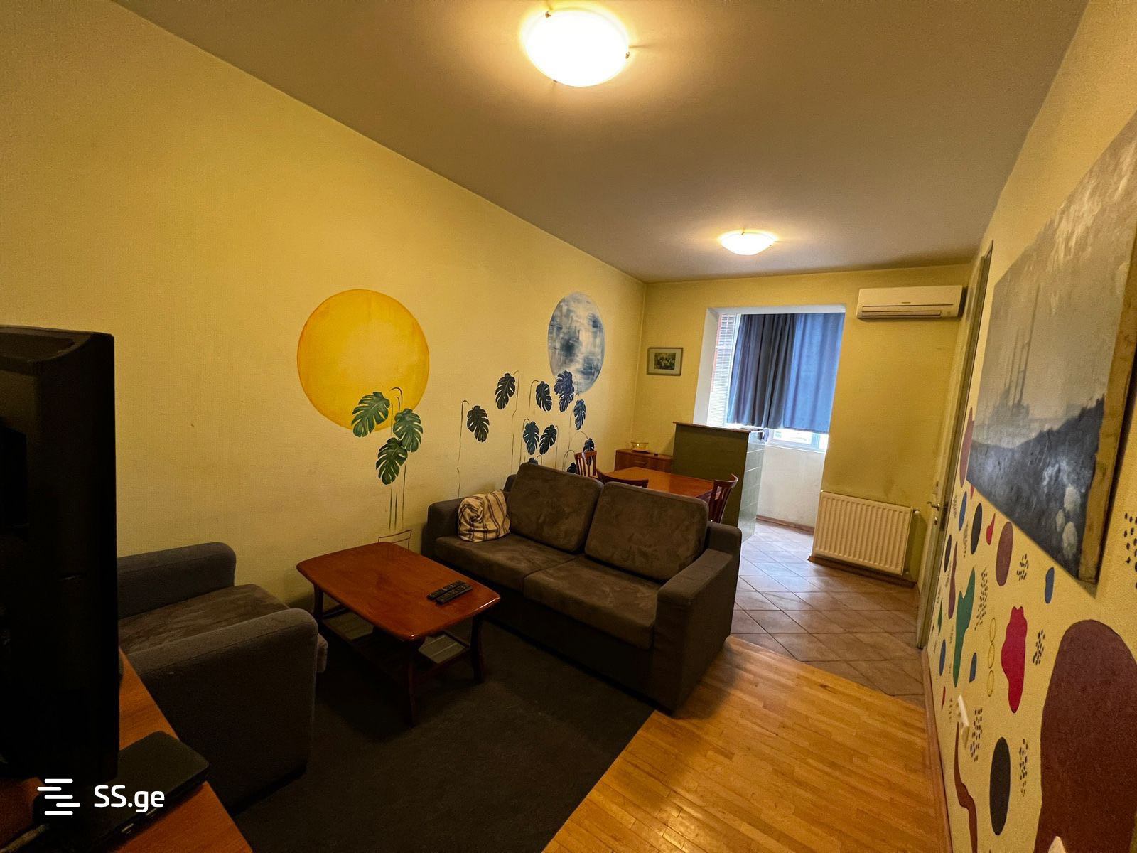 For rent, a 2-room apartment on Abashidze Street in Vake, with 1 bedroom and a studio type living room, fully equipped with all necessary furniture and appliances.