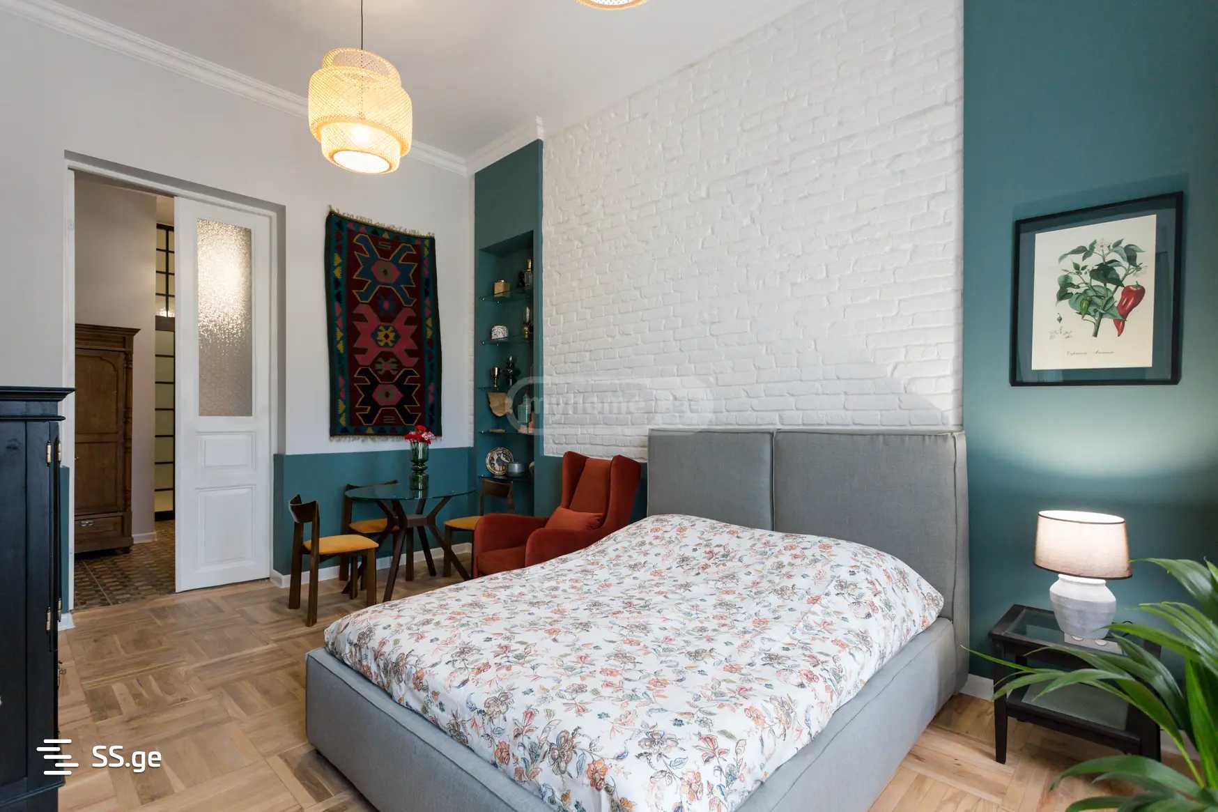 The apartment is located in the center of Tbilisi, behind the Opera building. It is equipped with furniture and appliances. The entrance is tidy and clean. It becomes available from October 1. Payment is required in advance for the first and last month.