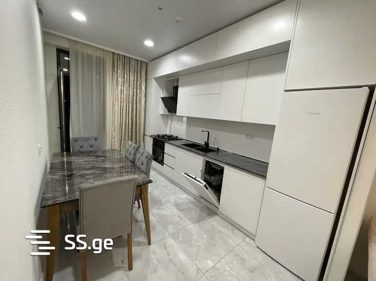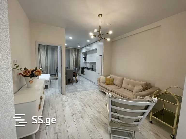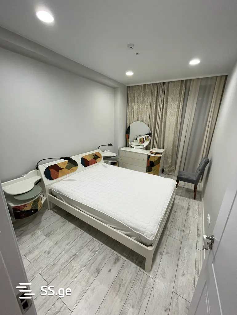 In a newly built building, a 2-room apartment is for rent, with a veranda. Bright, cozy, furnished, and equipped with all necessary appliances. Also with a dishwasher, a television, and an air conditioner. 5-7 minutes from Akhmeteli metro station. Prepayment for the first and last month. For rent for a minimum period of 6 months!