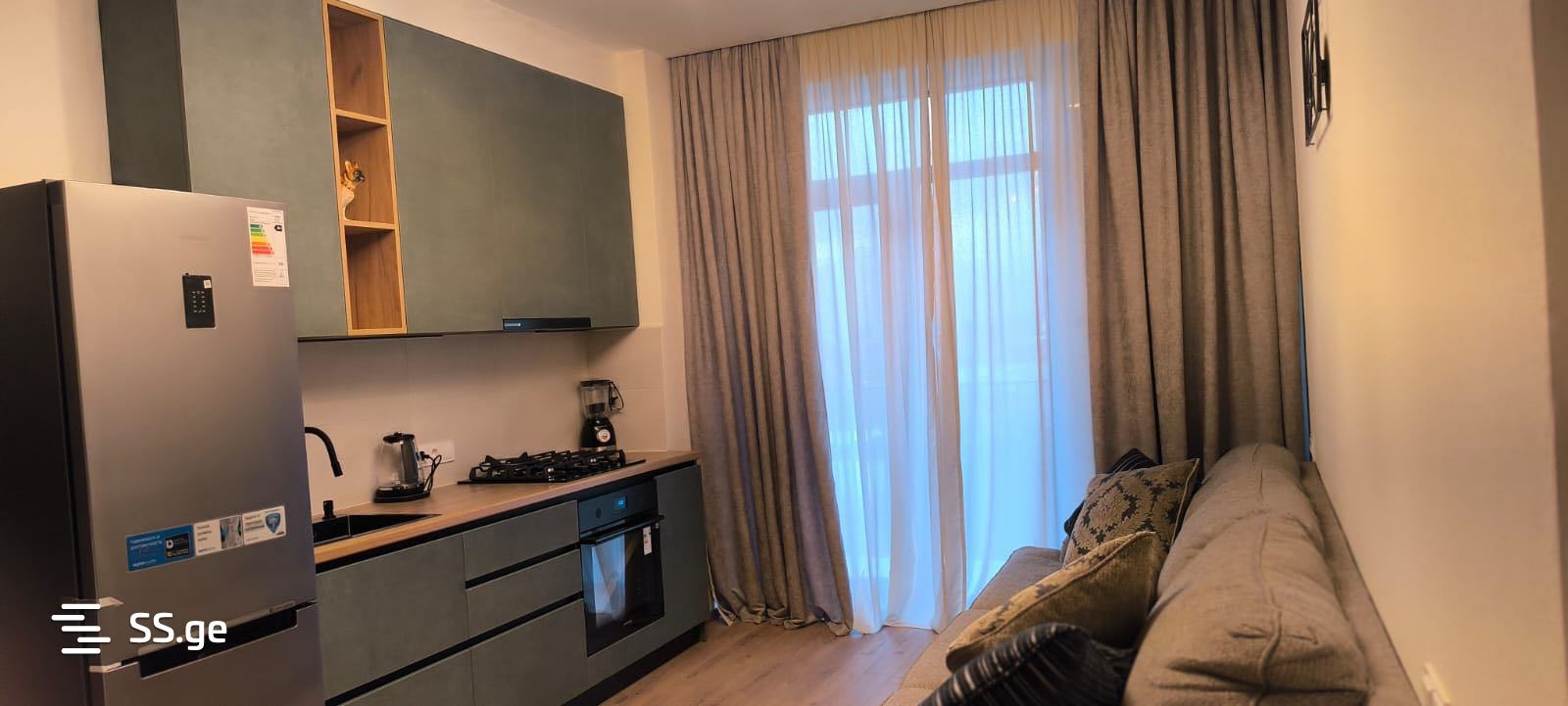 For rent in Gldani, on Kerchi street, a newly built 2-room perfectly arranged apartment with 1 bedroom, new furniture and appliances.