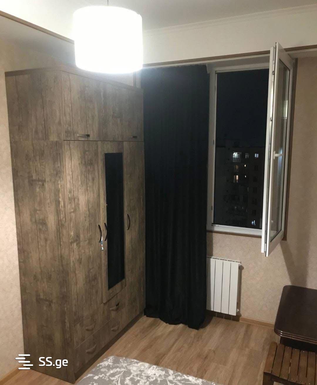 For rent on Takaishvili Street in Varketili. A newly built 45 sq. m. two-room apartment. It has 1 bedroom. Balcony. Central heating. Furnished and equipped with appliances. Floor: 14/14 Price: 1200 GEL (payment for two months)
