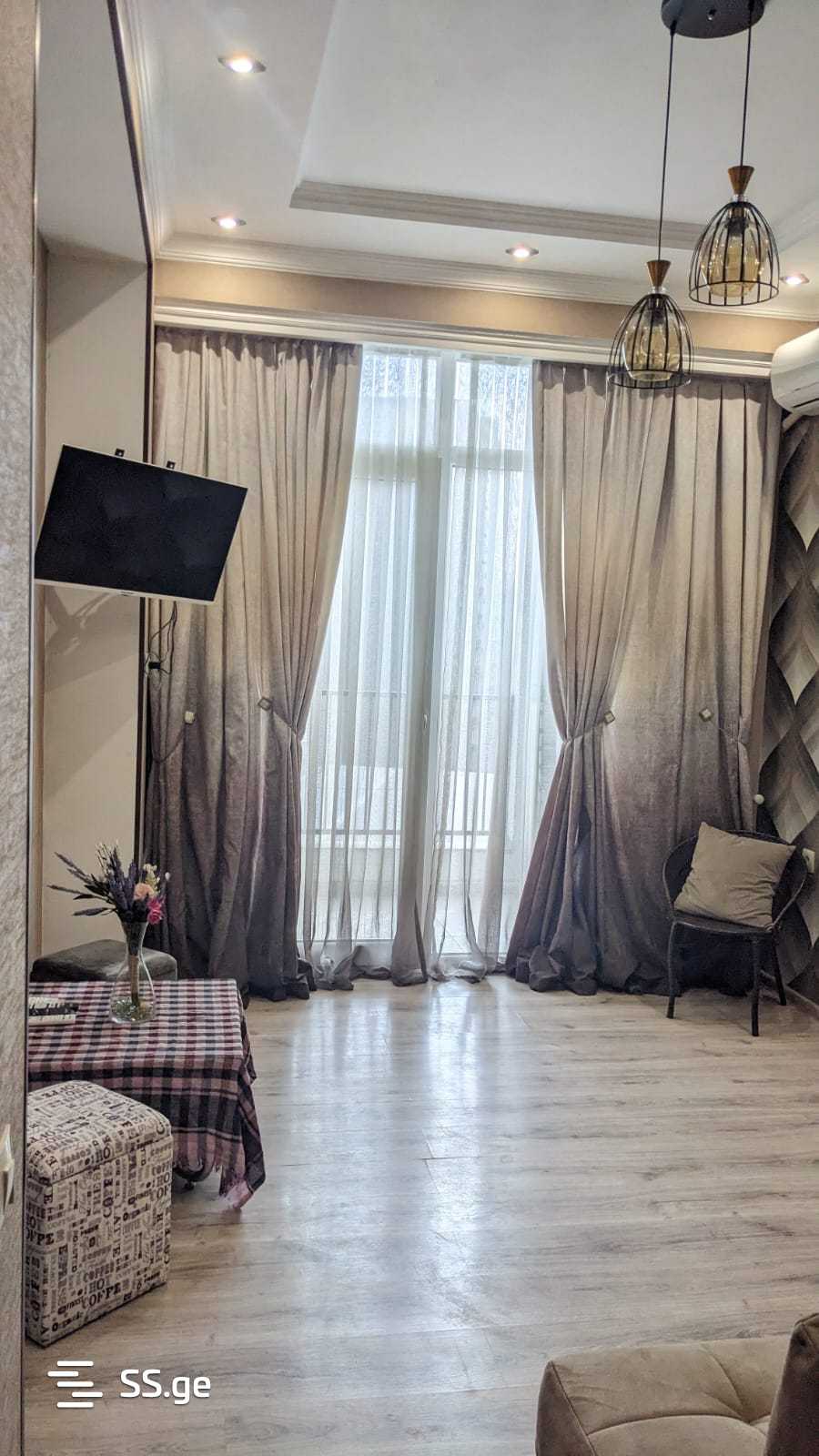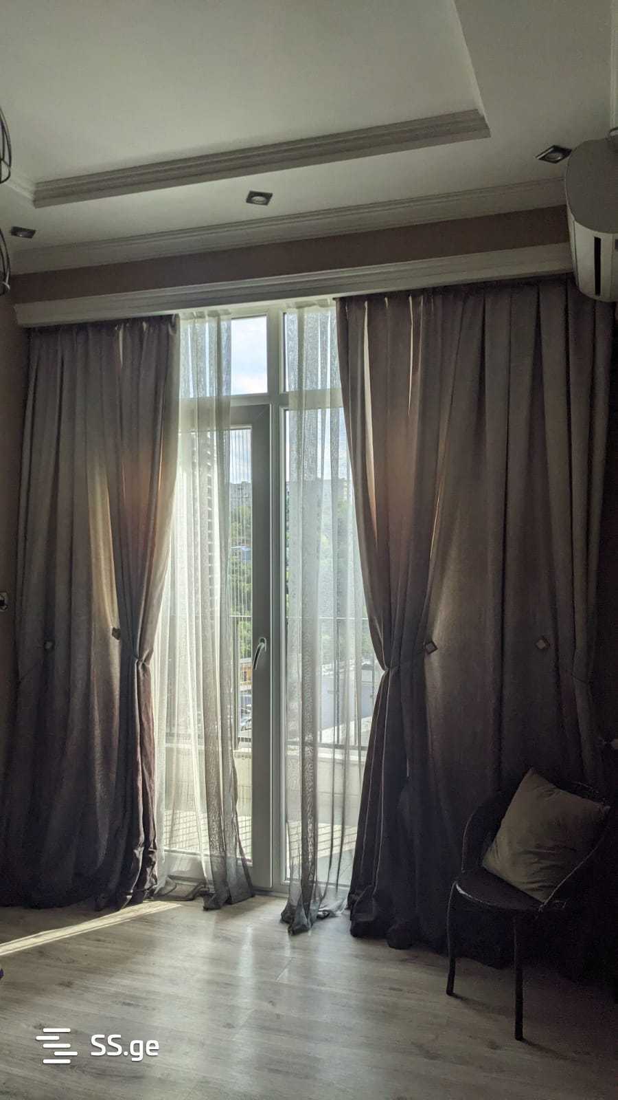 For rent: a 1-room apartment in a newly built building, with new renovation, the latest furniture and appliances. Separate kitchen, balcony, near Akhmeteli metro, across from Carrefour.