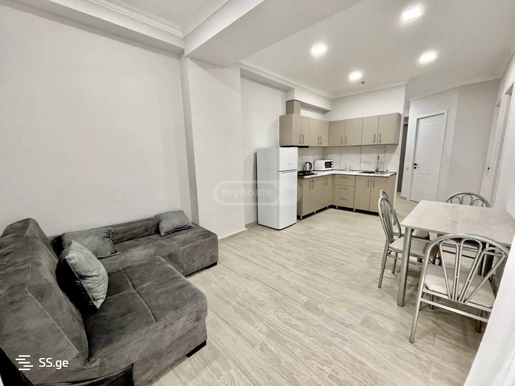 For rent: a newly renovated apartment in a newly built building on Aghmashenebeli Alley, in front of the Tbilisi City Court, near New Vision University. On the first floor of the building, there is Carrefour, Nikora XL, and a bus stop 40 meters away. The apartment has: an air conditioner, a TV, 2 bedrooms, 1 bathroom, 1 kitchen, 2 balconies, 1 living room, 4 floors, 65 square meters.