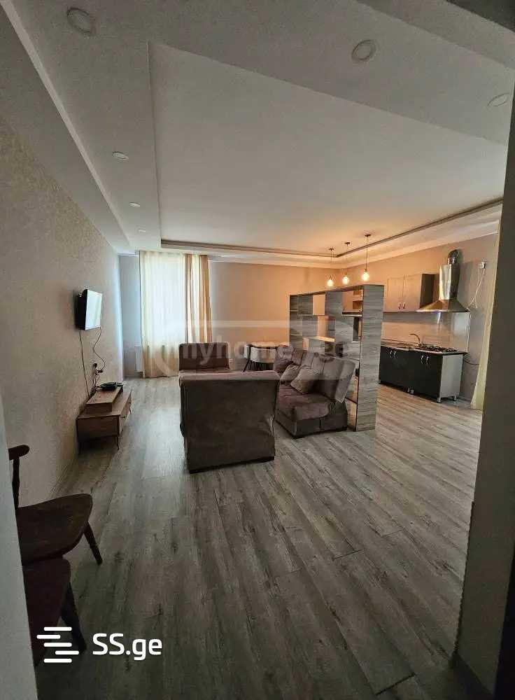 The apartment is 75 square meters, with a large living room and one bedroom. Equipped with all necessary appliances, including a dishwasher, two months in advance.