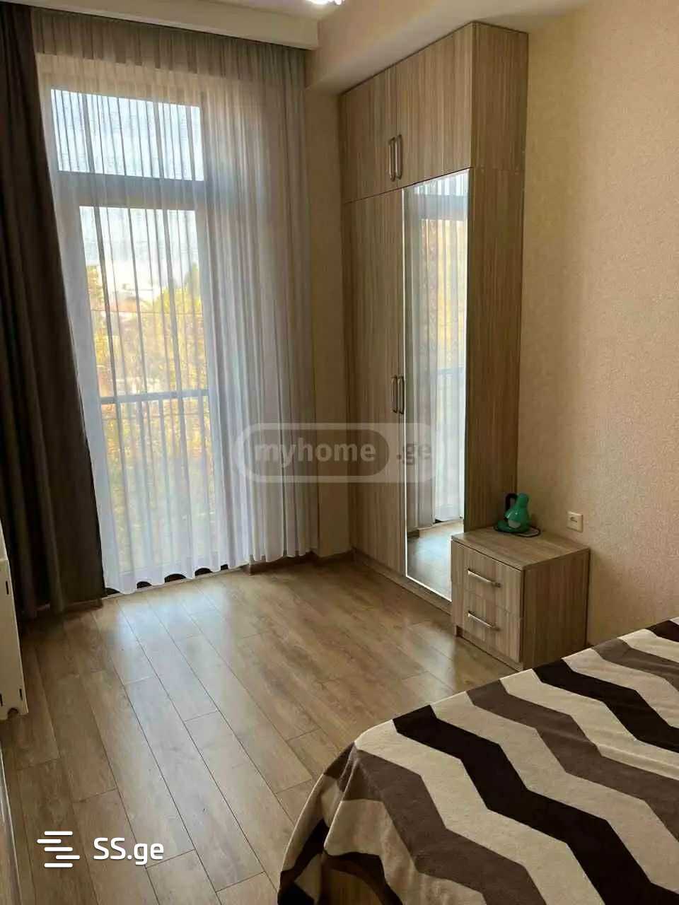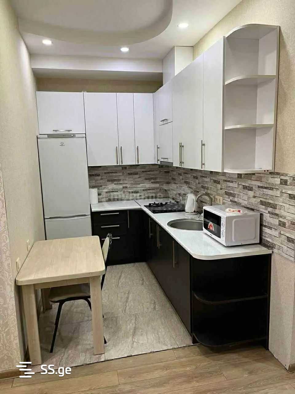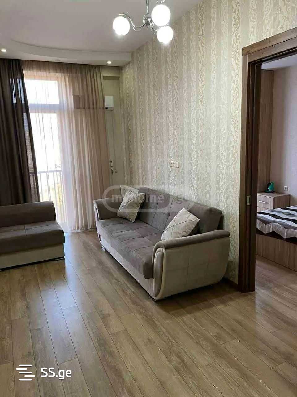 An apartment is for rent in a newly built premium class building with complete furniture and appliances. The apartment has a living room, bedroom, and a separate kitchen.