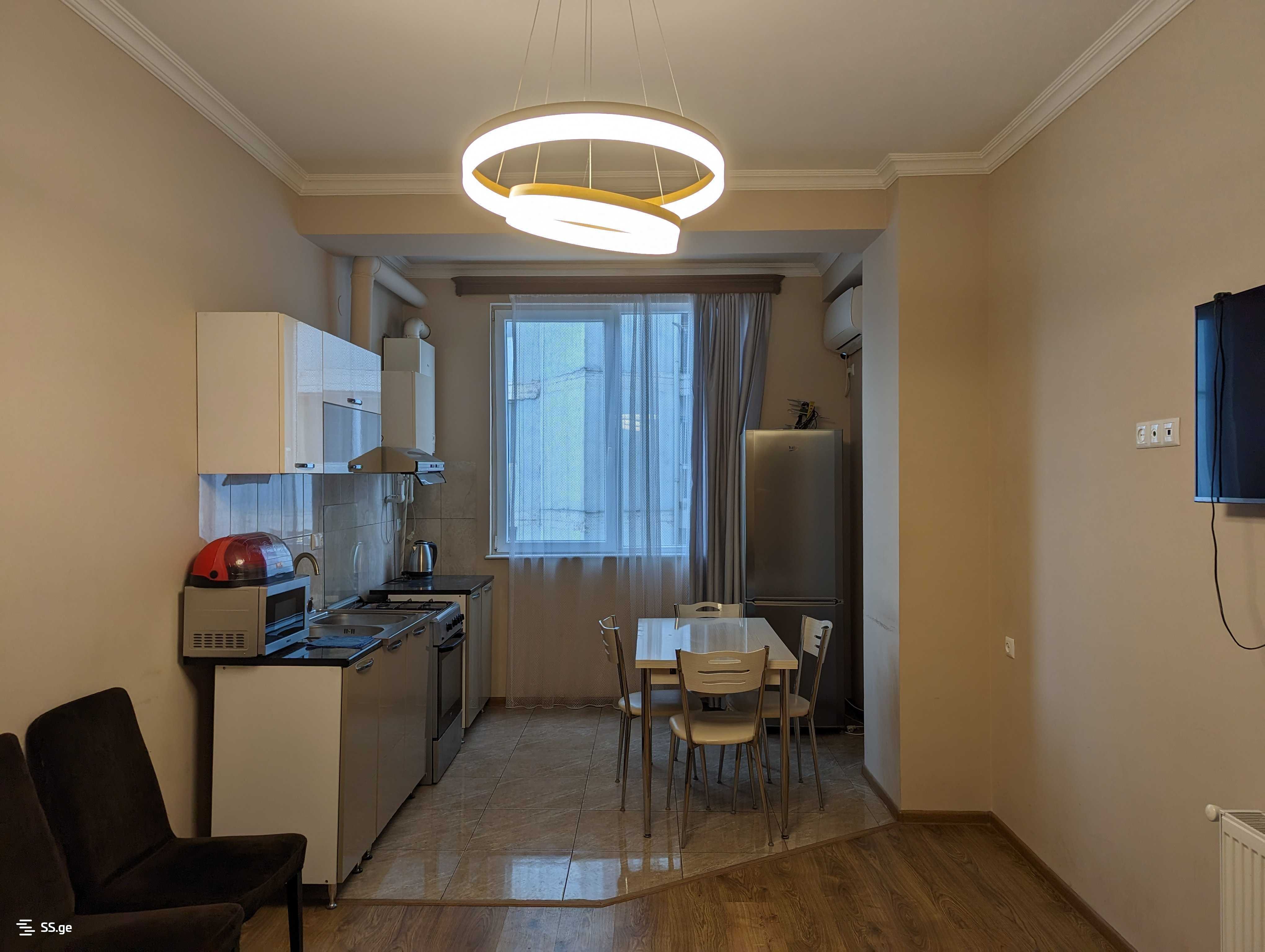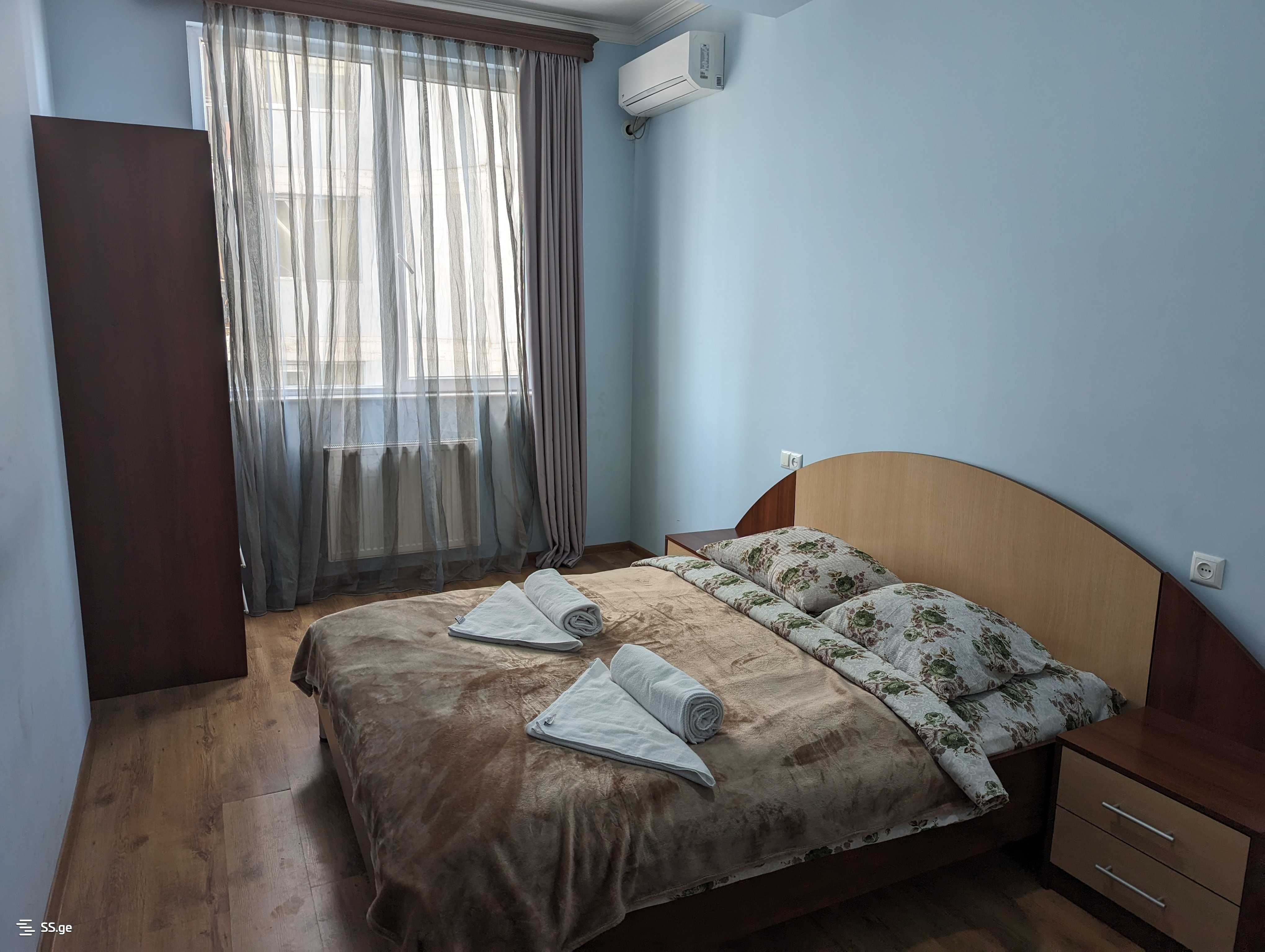 For rent in Saburtalo near the Technical University, a 3-room apartment with furniture and appliances. Two bright large bedrooms, a large bathroom-toilet. Two air conditioners. Rent payment in advance for two months.