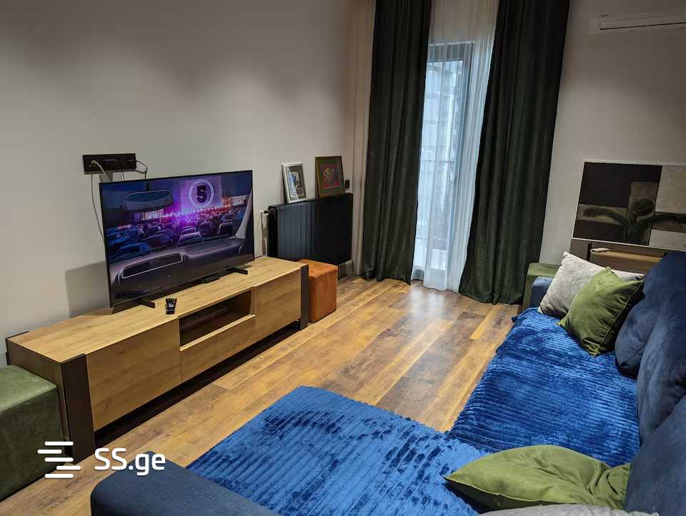For rent, a 2-room furnished apartment (60m2) in the 'm2 complex' on Mirtskhulava Street, equipped with all necessary items and inventory.