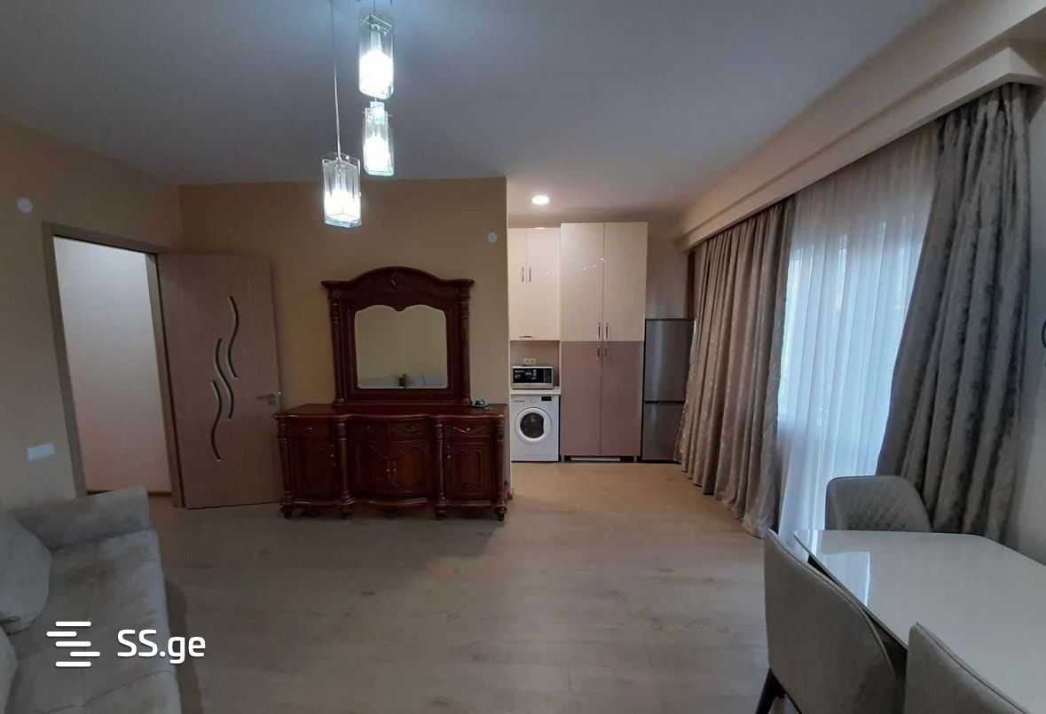 For rent in Saburtalo, behind the Palace of Sports, a 3-room apartment of 73 square meters, with 2 bedrooms, the apartment is equipped with all kinds of appliances, central heating.