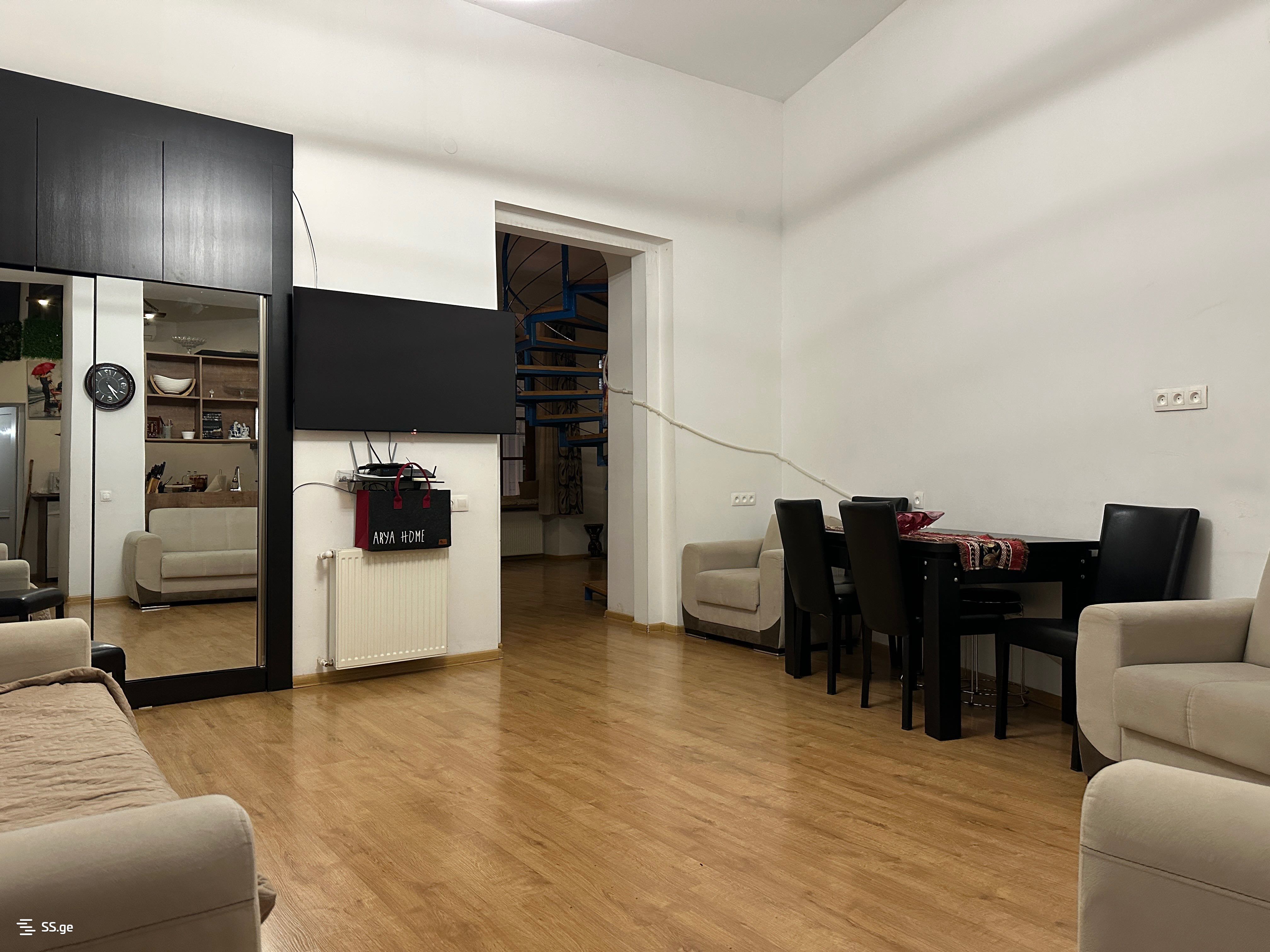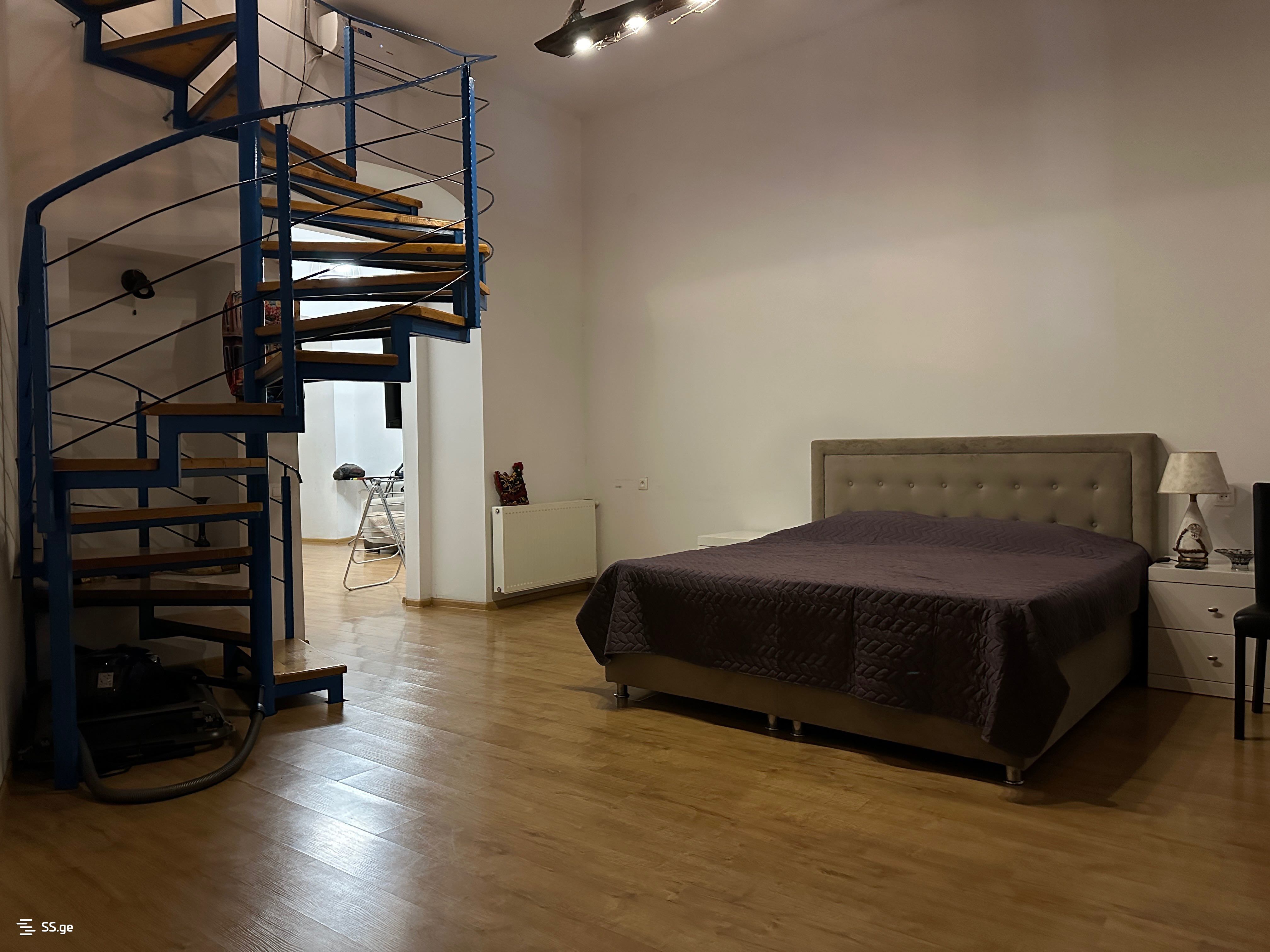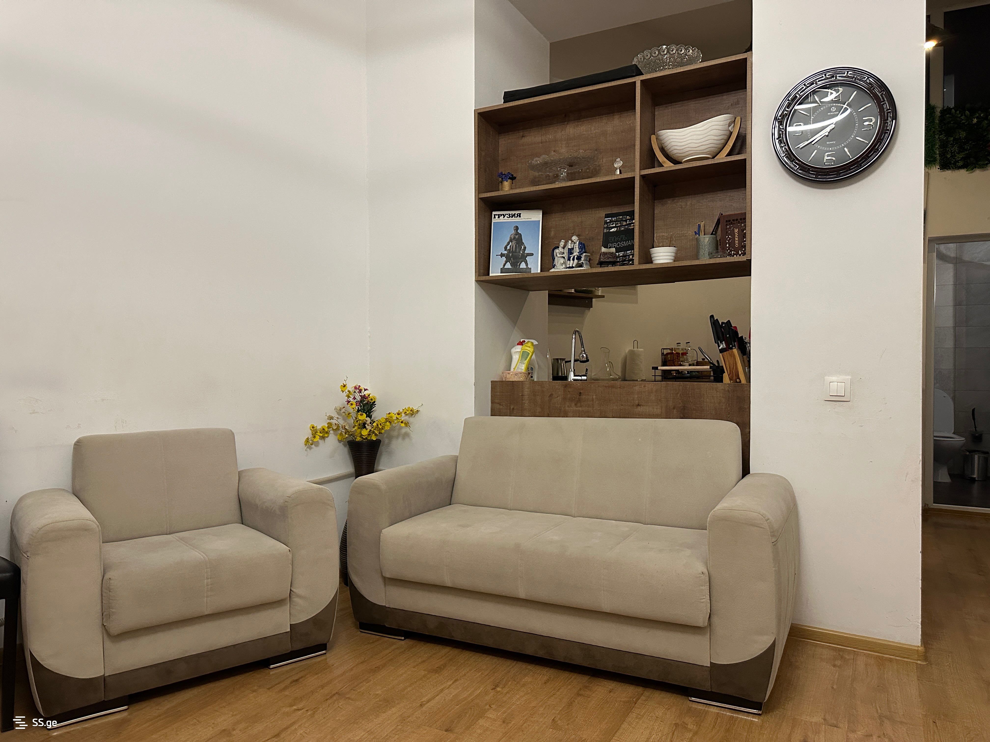 On Vorontsov Square, on the second floor of the mafia barbershop, with a view of the pedestrian Agmashenebeli Avenue, 2 minutes to the bus stop, 7 to the metro.