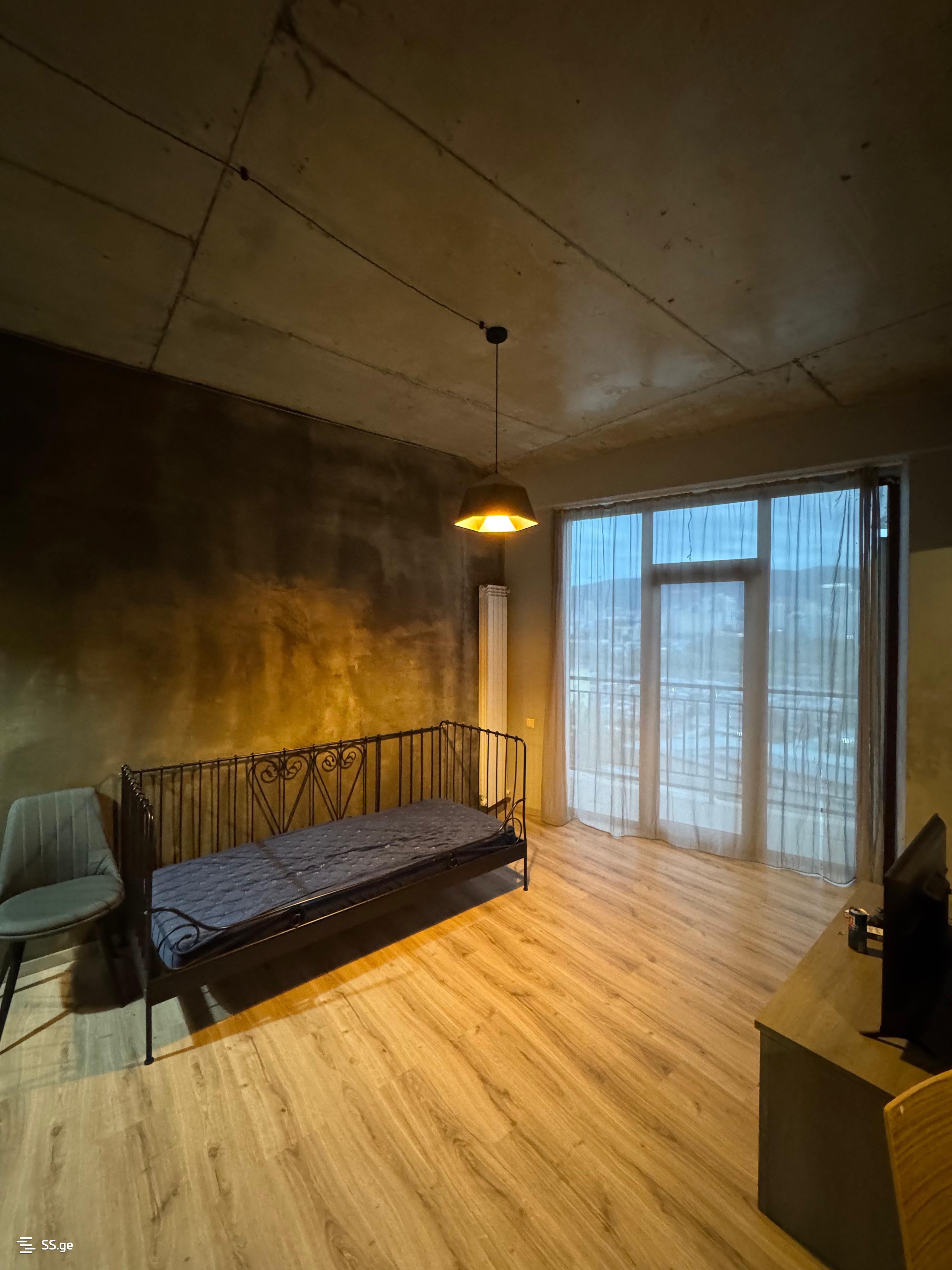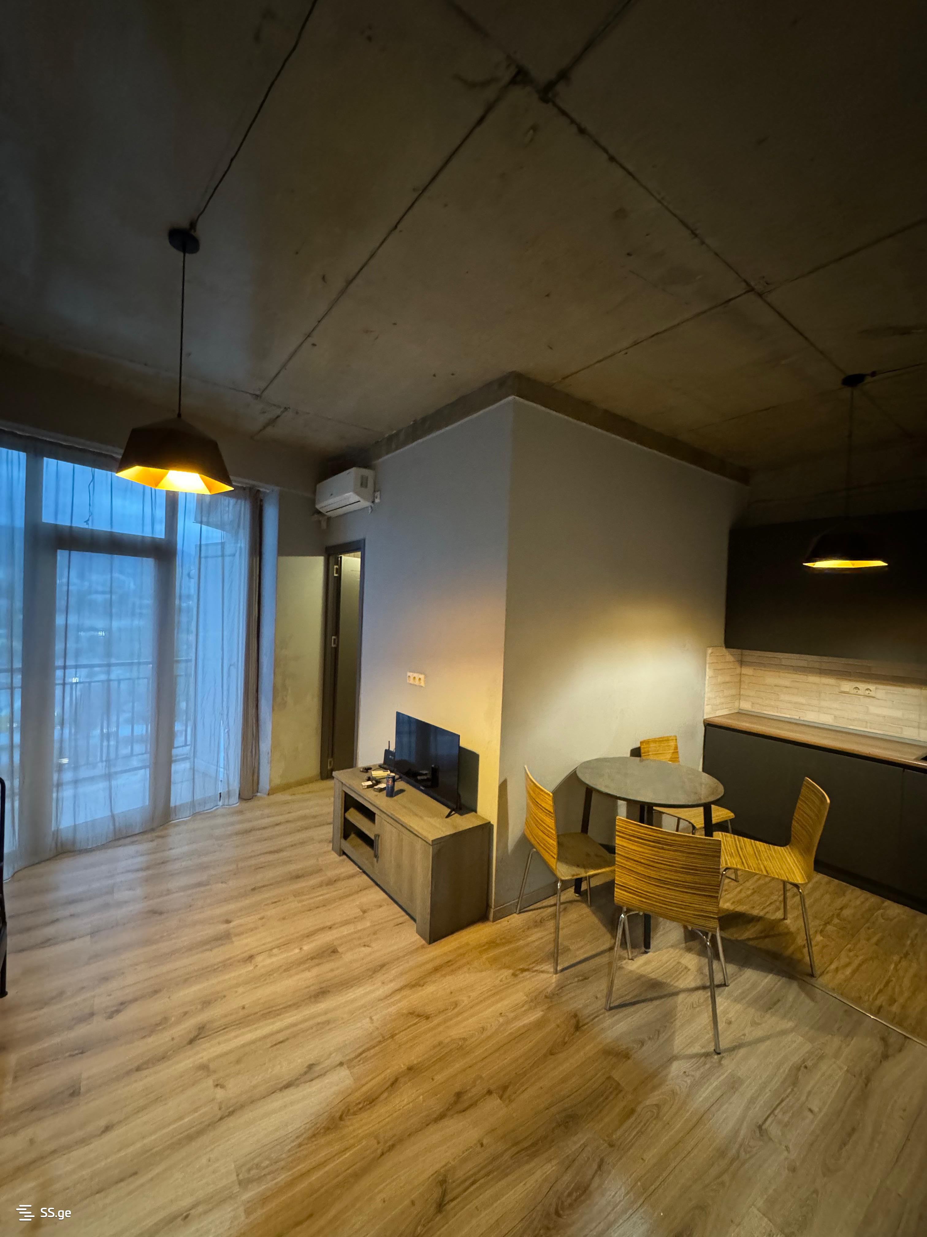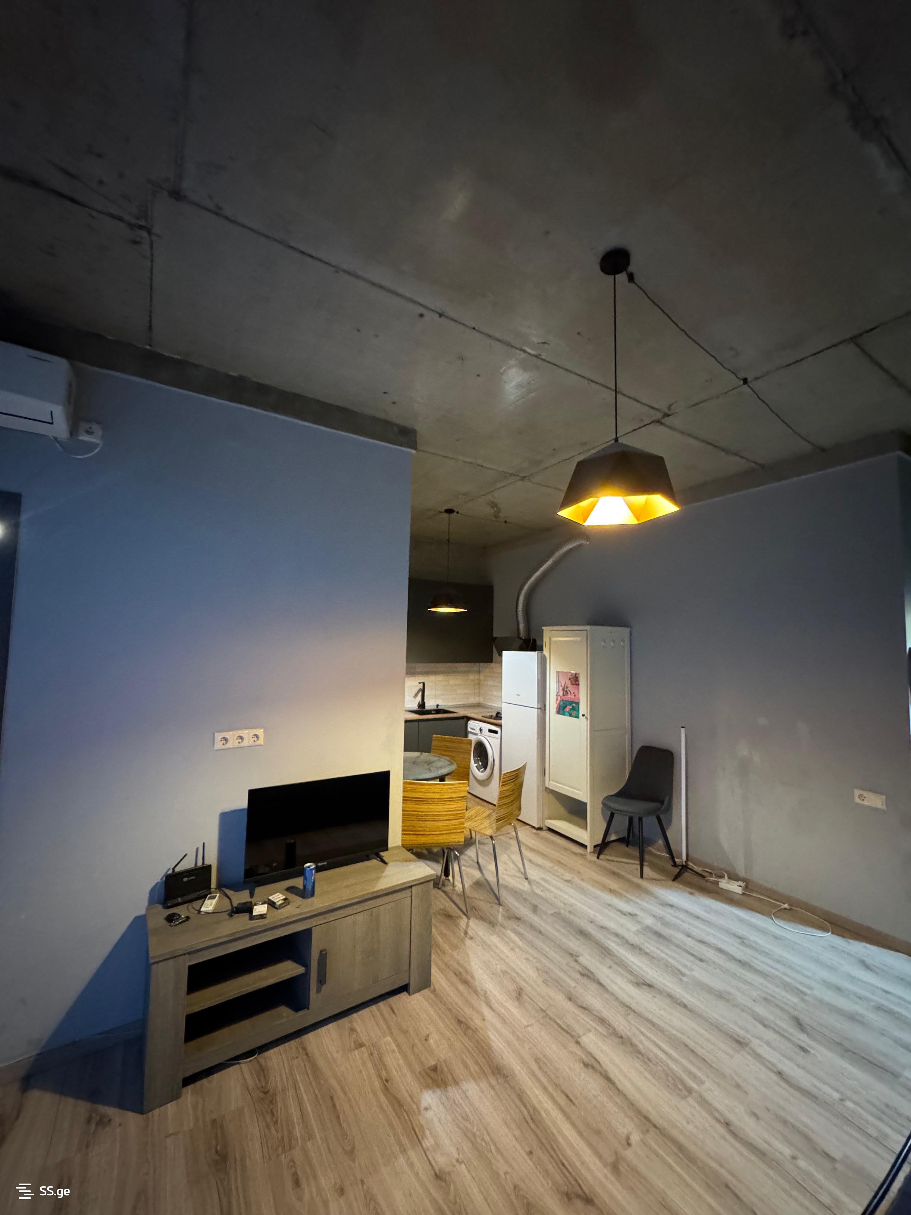 For rent in Didube, on Khosharauli Street, a renovated two-room apartment in a new building with furniture and appliances. With air conditioning. Central heating. Price $500.