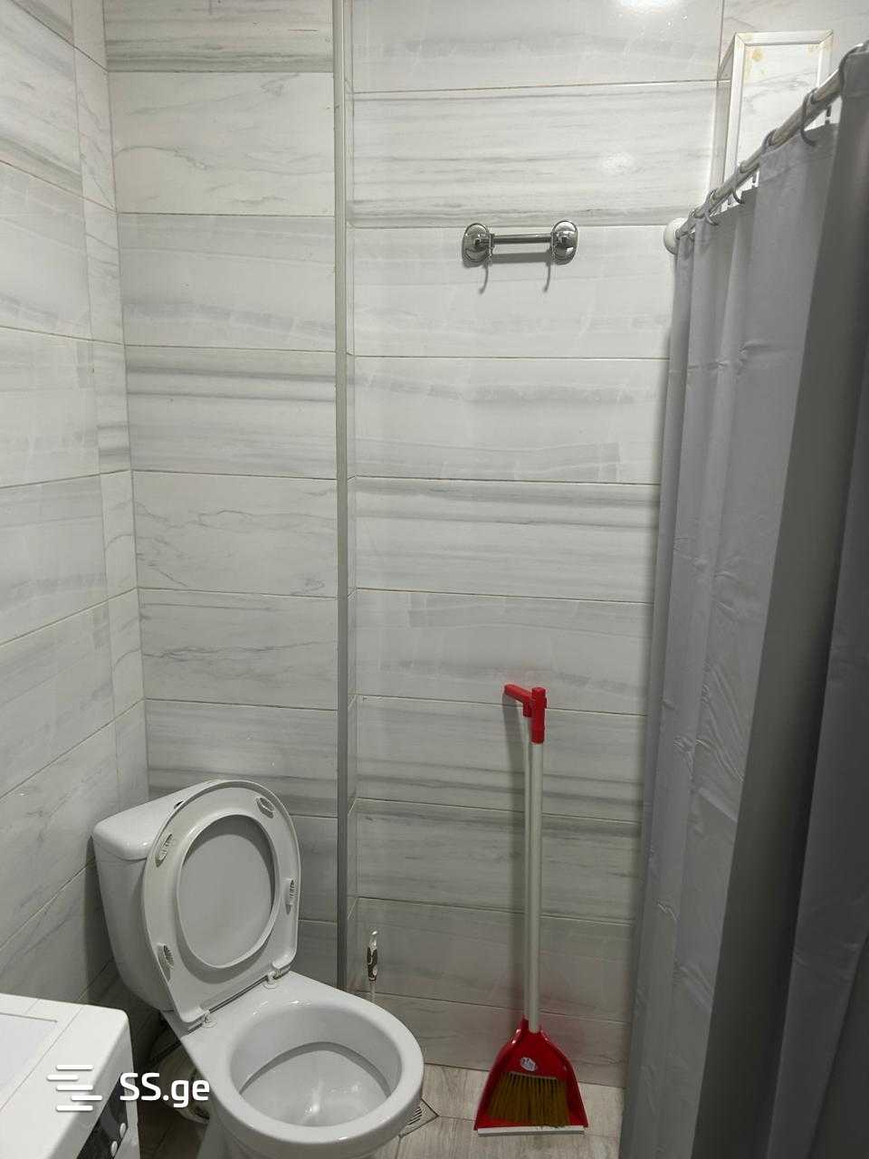 The apartment is cozy, renovated, and well-furnished. The entrance is secure and tidy. It is located near the shopping center 'East Point' and the metro 'Varketili.'