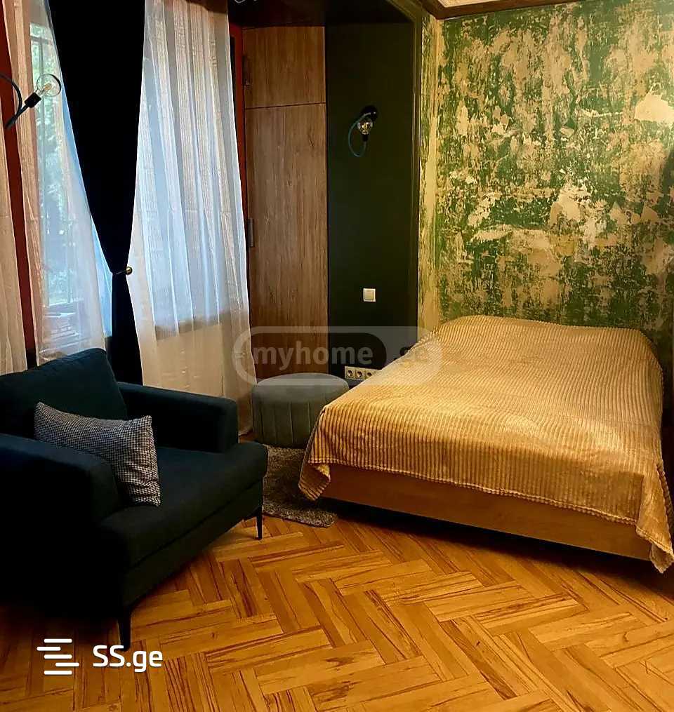 Agents, please do not call me! Urgently for rent, a studio apartment near the Round Garden in Vake, cozy and comfortable, very high first floor, with a view directly onto the Round Garden, perfectly renovated with furniture, appliances, and all kinds of living conditions. Parking, private yard surrounded by greenery, protected by security. Two months' rent in advance!