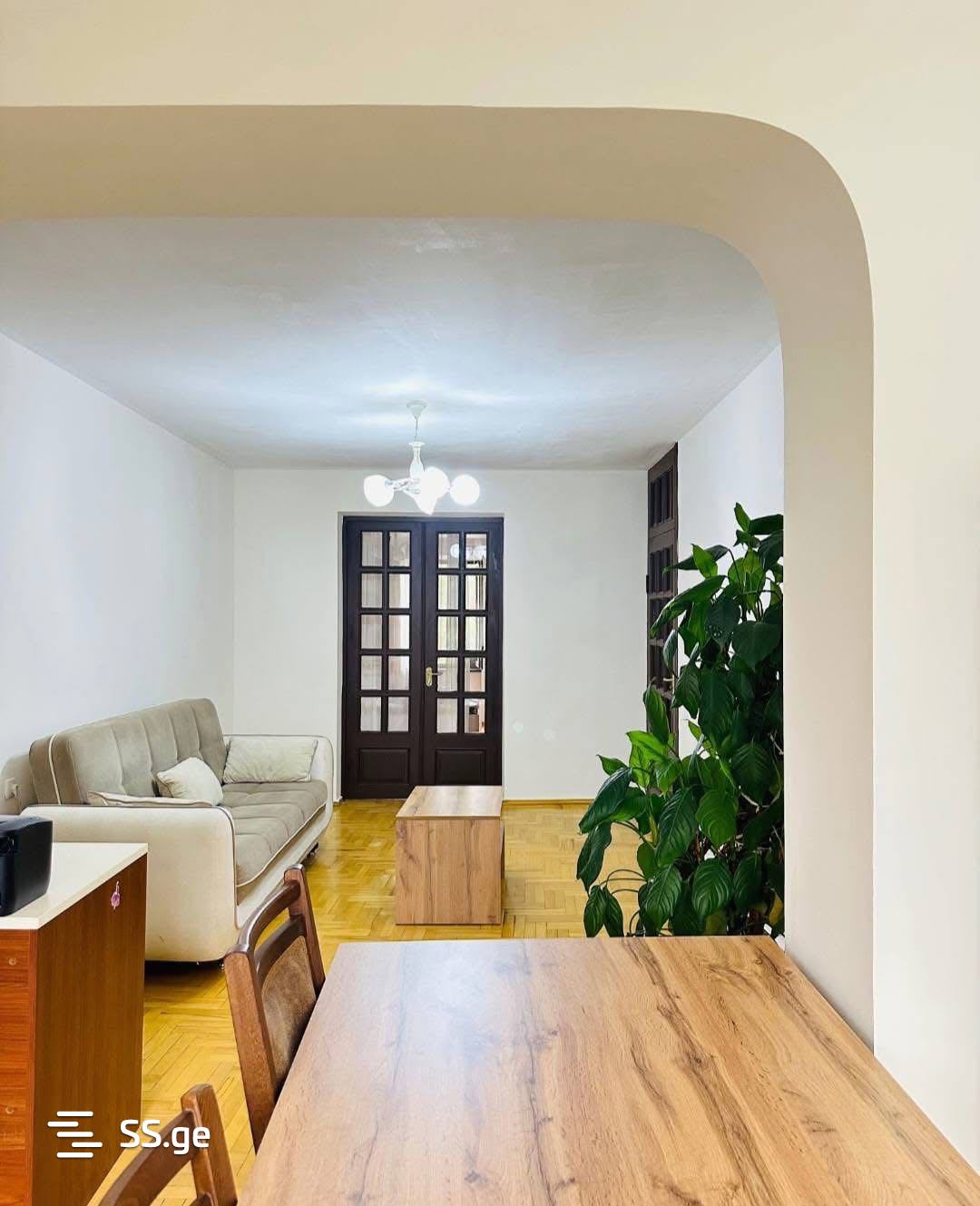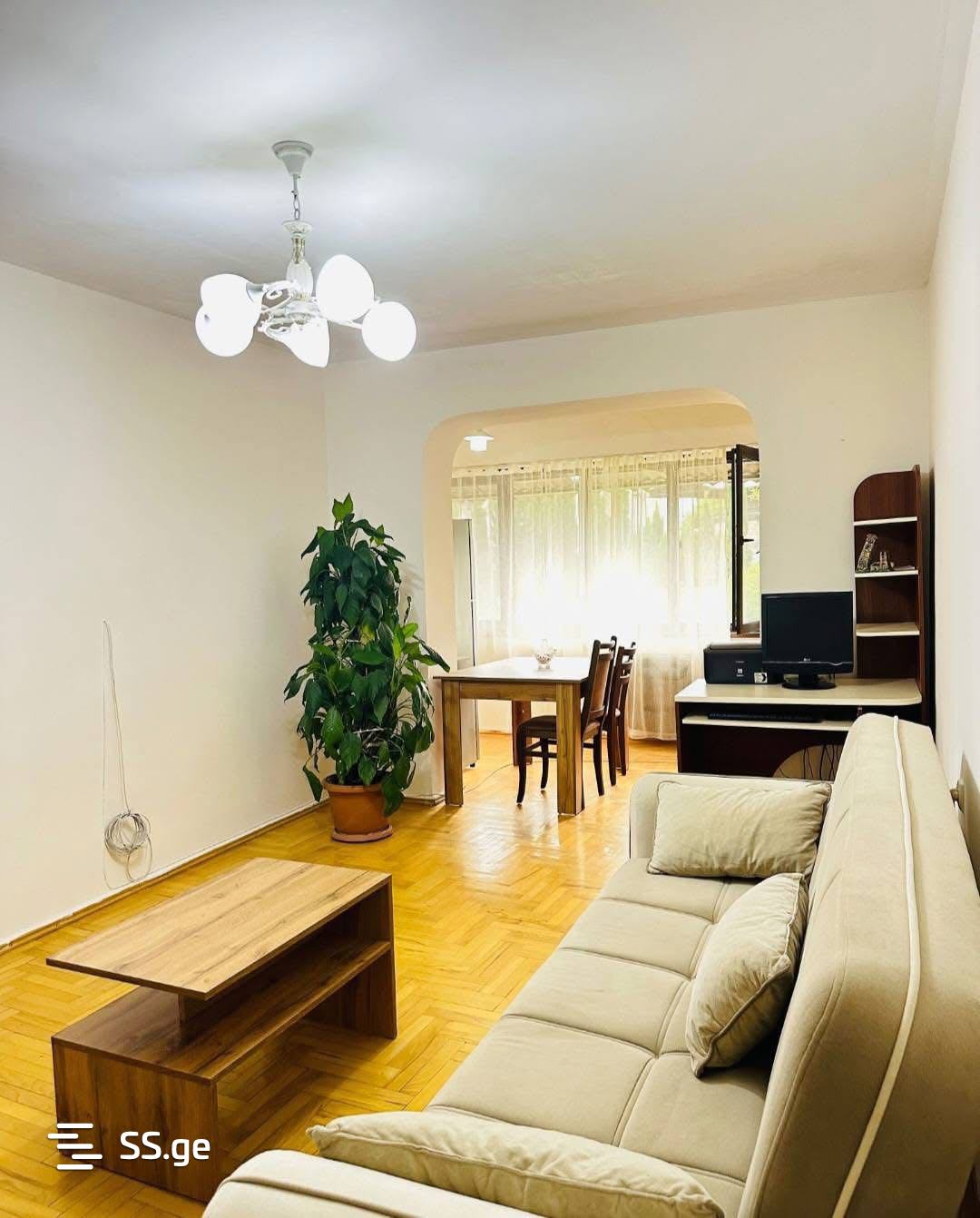 For rent on Melani Street in Isani. Close to the metro. A renovated 60 sq. m. 2-room apartment. It has a loggia. A balcony. A bedroom. Furnished with furniture and appliances. Floor: 5/5. Price: 1150 GEL (paying for two months). 557285445. 599699677.