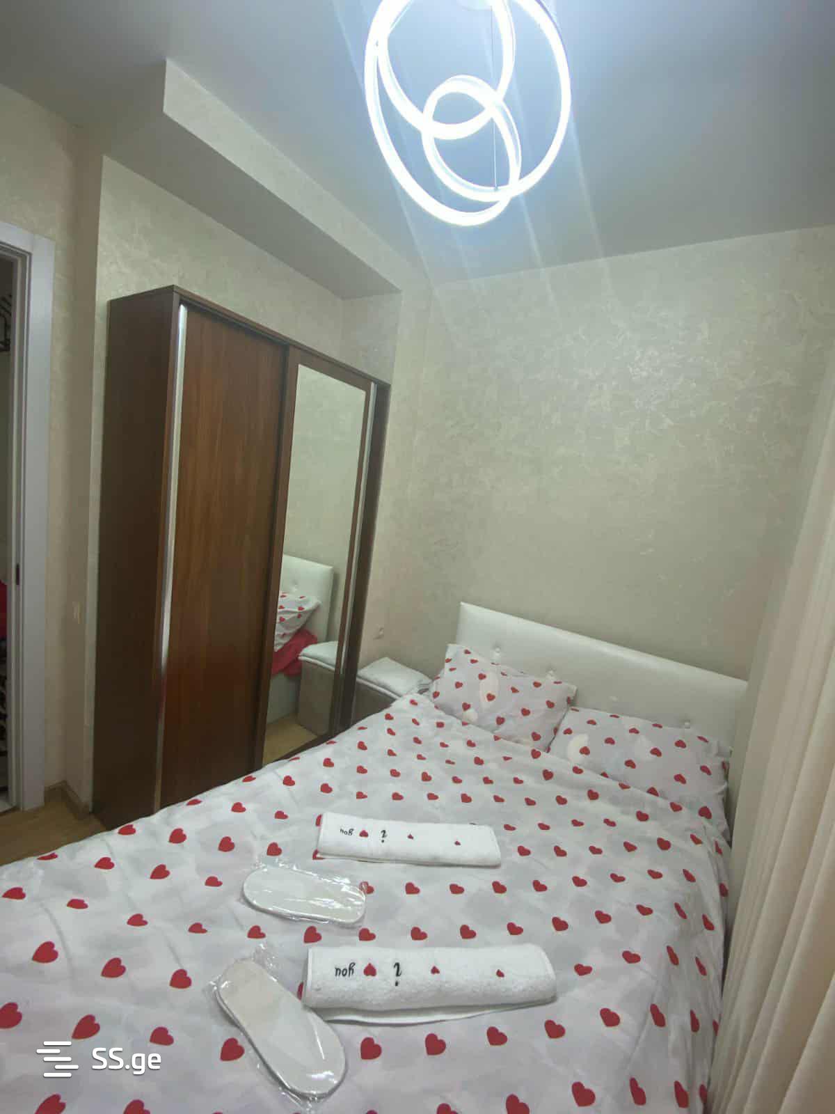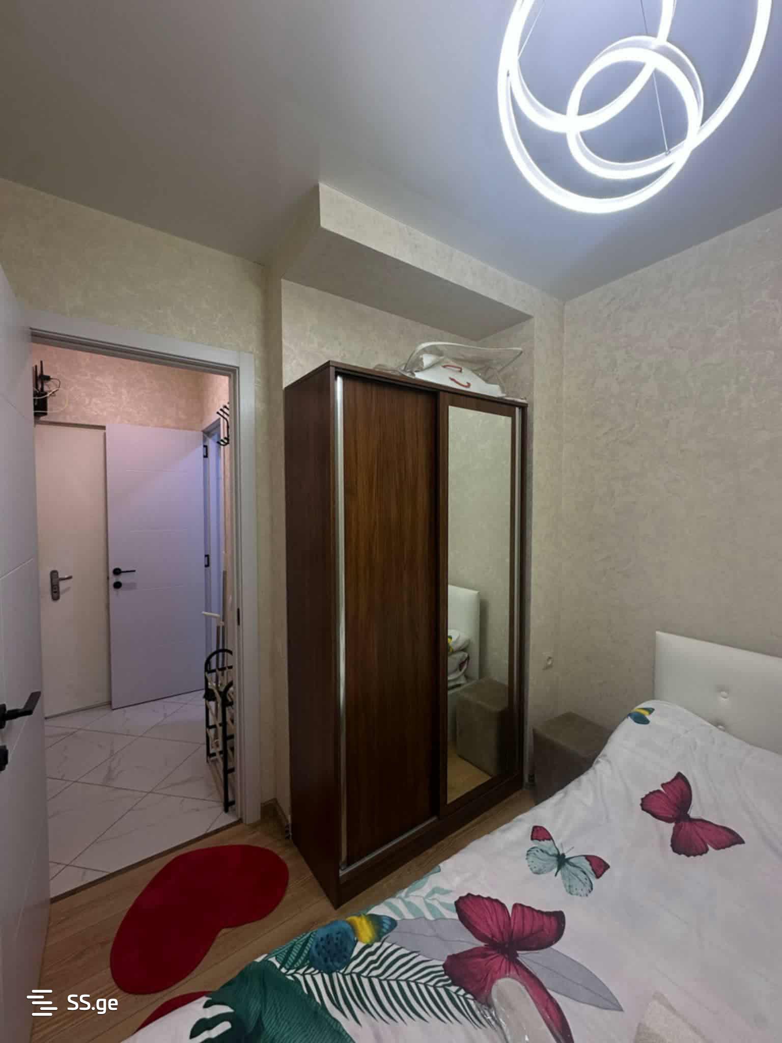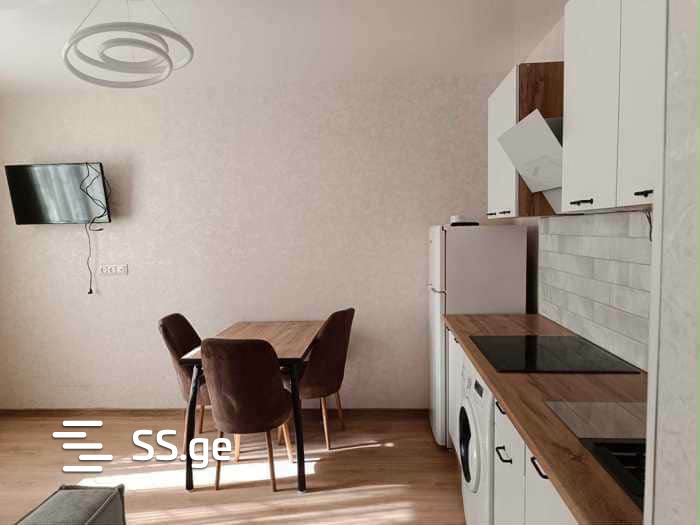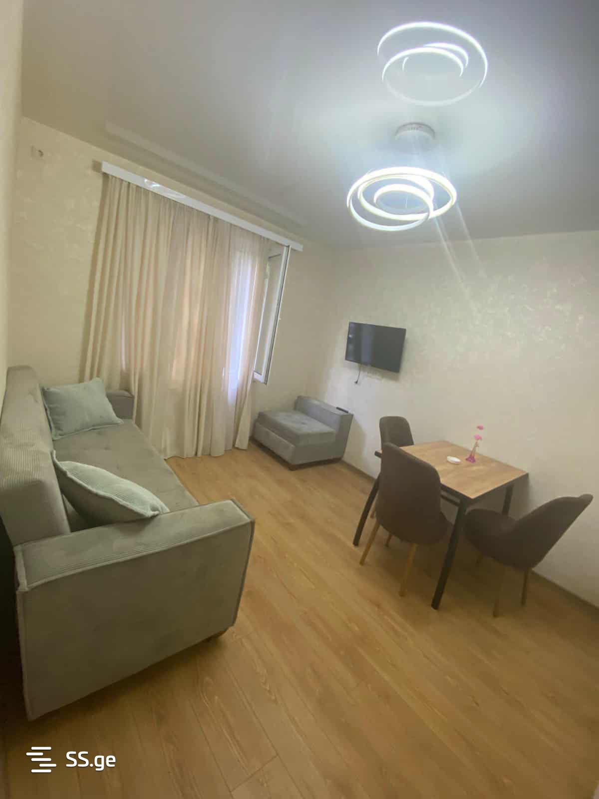 A well-furnished 2-room apartment for rent near Gldani shawarmas, equipped with an isolated bedroom, appliances, and furniture.